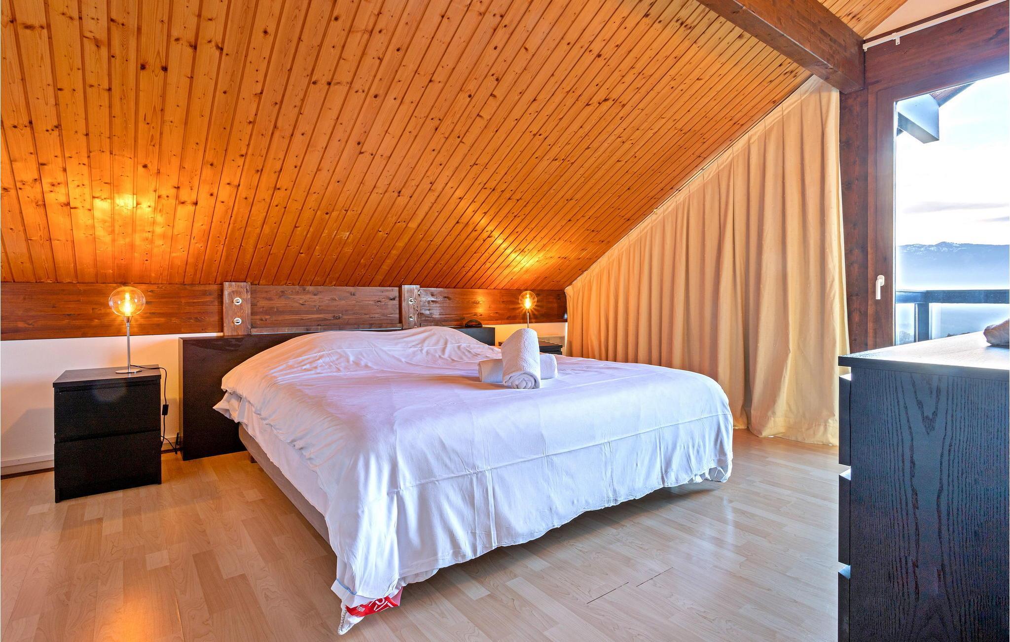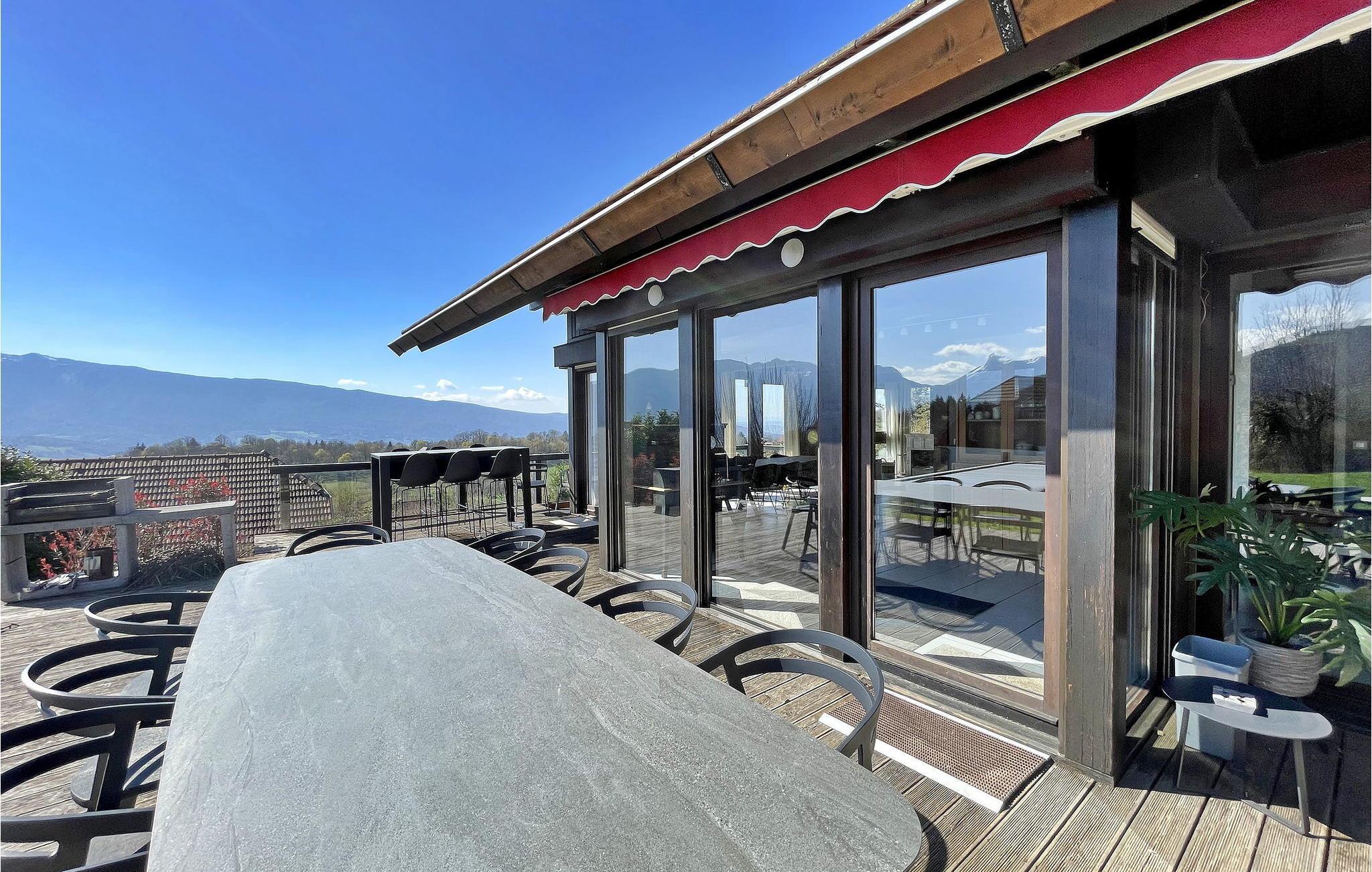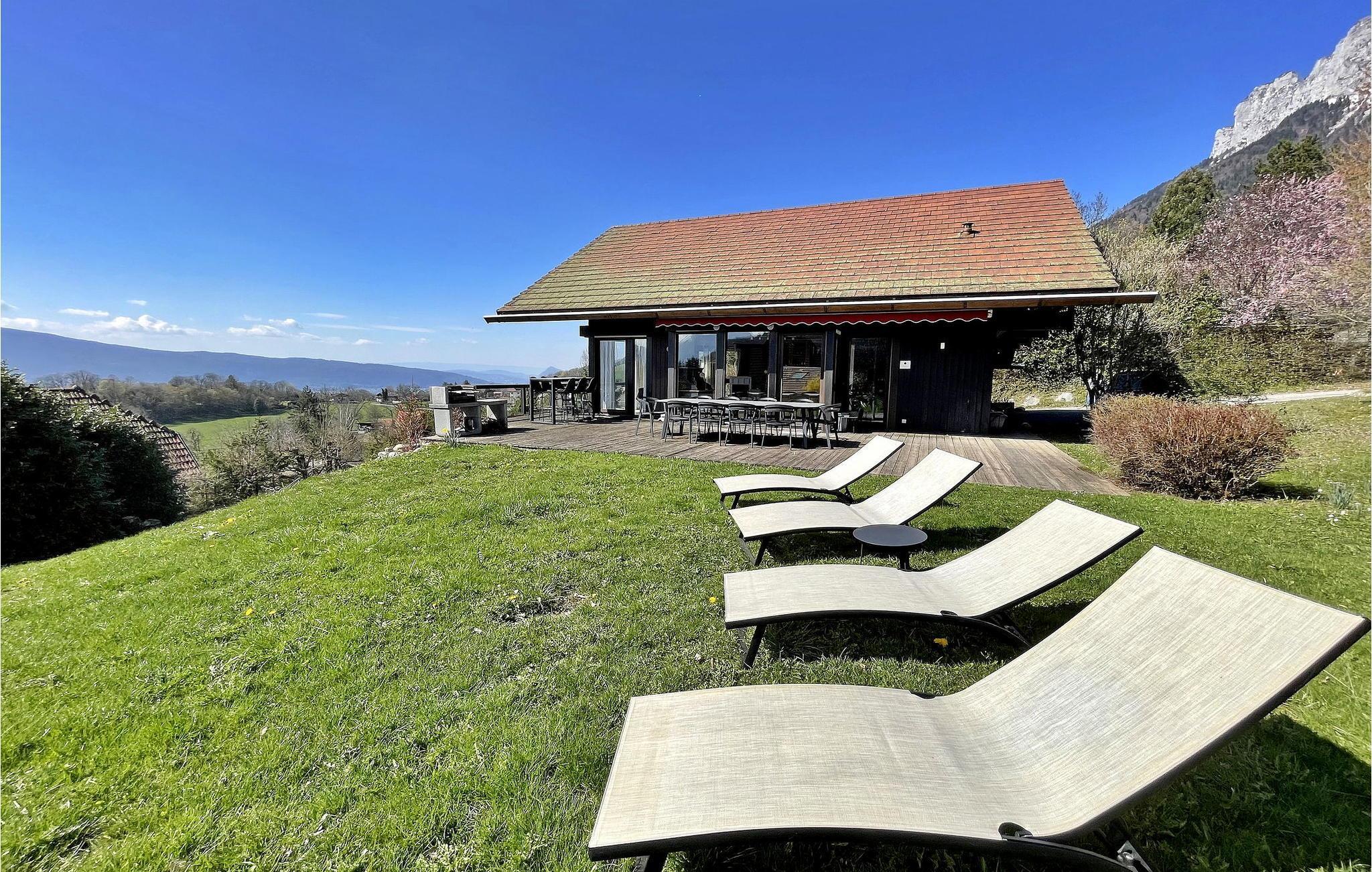 Denna semestervilla i Talloires nära Annecysjön erbjuder bekvämt boende. Den ligger på en stor tomt och är en idealisk plats för naturälskare och skärmflygare. Närheten till vattenfallen i Angon, Col de la Forclaz, Annecysjön och stränderna i Talloires gör den ännu mer tilltalande. På bottenvåningen har villan ett garage för en bil, ett sovrum, ett duschrum och en tvättstuga utrustad med nödvändiga apparater. Ingången till vardagsrummet leder till en mysig sittgrupp med öppen spis, en matplats med tillgång till terrassen och ett fullt utrustat kök. Det finns också ytterligare ett sovrum med tre enkelsängar, ett separat duschrum och en toalett på denna våning. På första våningen finns tre välutrustade sovrum, vart och ett med pittoresk utsikt över bergen från sina respektive balkonger. Det finns också ett delat badrum och separat toalett på denna nivå. Utanför har villan en stor tomt med en rymlig terrass med fantastisk utsikt över dalen och bergen. Privat poolgarage för en bil, en parkeringsplats för två bilar och en privat pool på 12 x 4 meter med säkerhetsöverdrag. Trädgårdsmöbler och en grill kompletterar utomhusområdet. Huset ligger i uppförsbacke mot Col de la Forclaz: perfekt läge som utgångspunkt för många vandringar eller mountainbike-turer. Gratis bussar till stranden går under hela sommaren. Alla lokala butiker finns i Talloires eller Menthon Saint-Bernard, ca 6 km bort. Observera att snöutrustning är nödvändig för vintersemester.