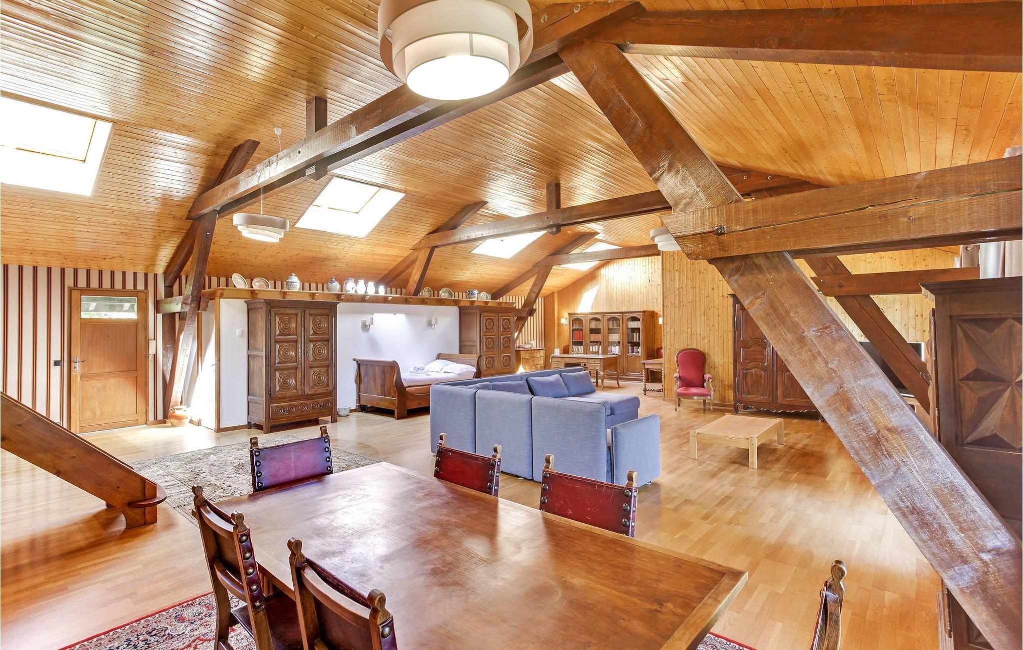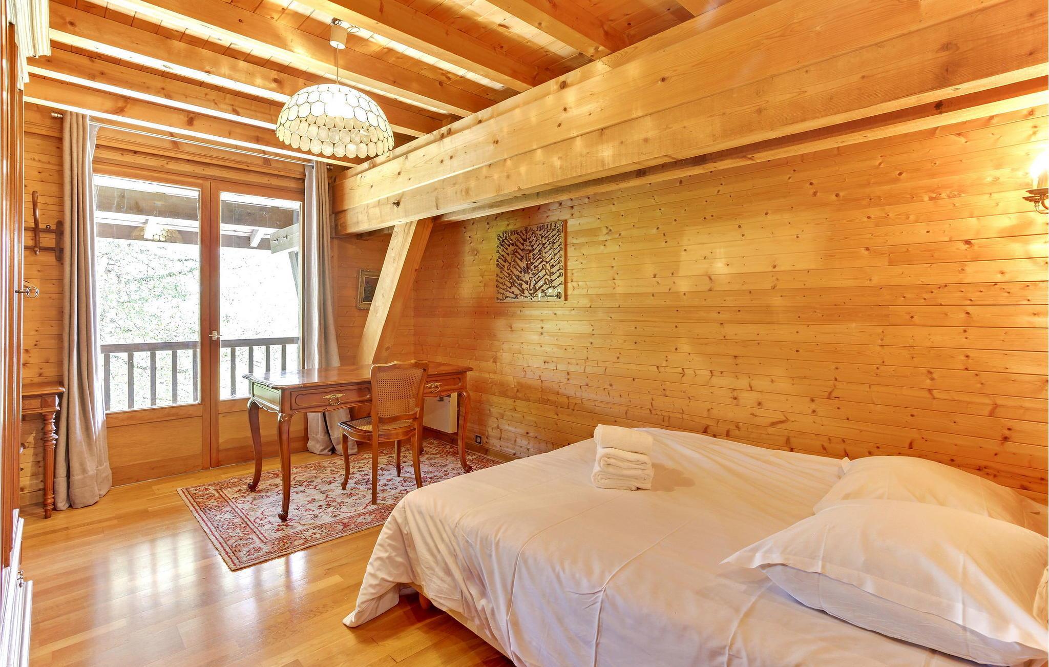 Semesterlägenheten i Talloires ligger i ett charmigt chalet och erbjuder en hisnande panoramautsikt över Annecysjön och de omgivande bergen. Denna rymliga lägenhet i savoyardisk stil är en del av ett chaletkomplex som erbjuder tre andra säsongsuthyrningslägenheter utöver ägarnas bostad på plats. Lägenhetens entré leder direkt in i ett stort och inbjudande vardagsrum, matplats och balkong med pittoresk utsikt över sjön och bergen. Det välutrustade köket har moderna bekvämligheter och direkt tillgång till en terrass, vilket skapar ett perfekt utrymme för uteservering eller avkoppling. Lägenheten har två sovrum, båda med tillgång till en balkong med fantastisk utsikt. Stugan ligger på en stor tomt på 2 hektar som delas av alla boende i stugan. Lägenheten har också en egen terrass och en rymlig balkong. På grund av fastighetens läge är det nödvändigt att ha vinterdäck eller snökedjor på vintern. Stugan ligger på Talloires höjder på vägen upp till Col de la Forclaz. Alla lokala affärer ligger ca 5 km bort i centrum av byn Talloires-Montmin vid sjön eller i centrum av byn Menthon Saint-Bernard. Njut av lugnet och tystnaden på en semester vid sjön.