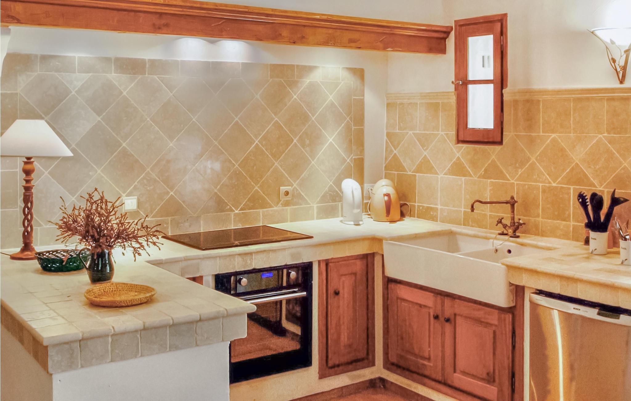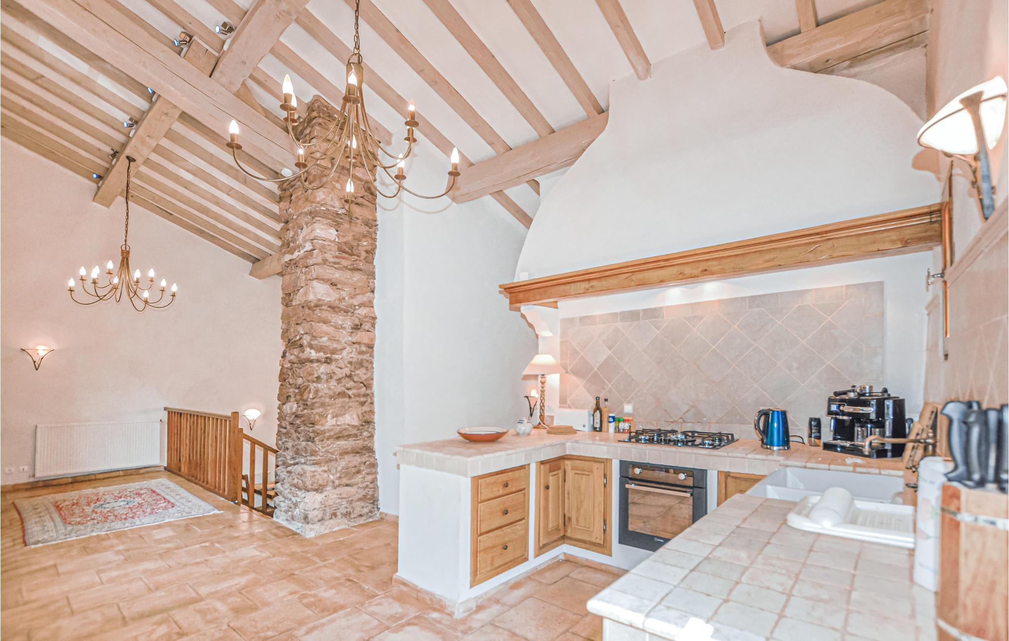 Huset har restaurerats vackert och kombinerar antika möbler med moderna bekvämligheter. Badrummen och köket är färdiga i marmor och golven är av terrakotta. Två av sovrummen har king-size dubbelsängar och ett tredje har två enkelsängar.