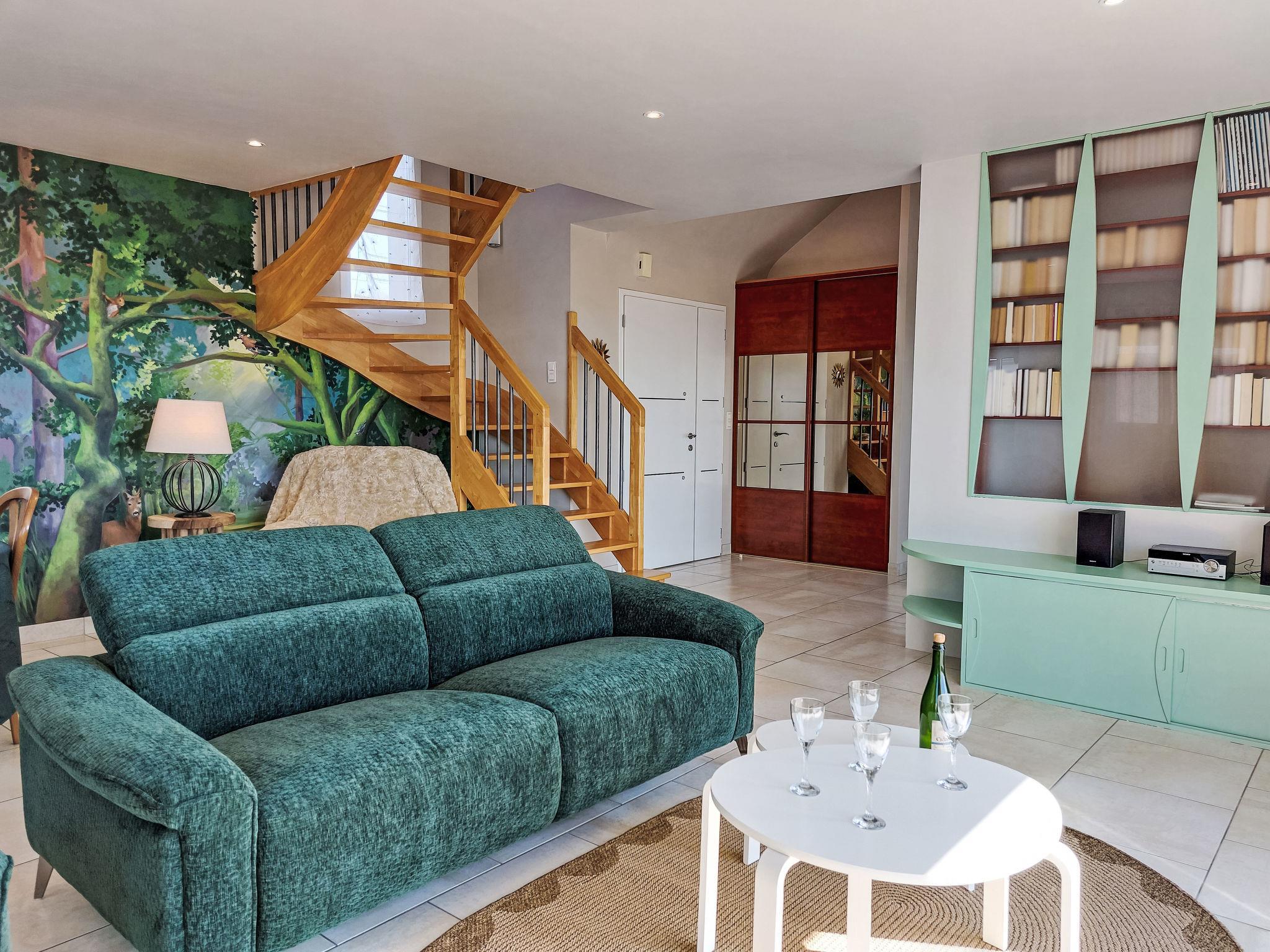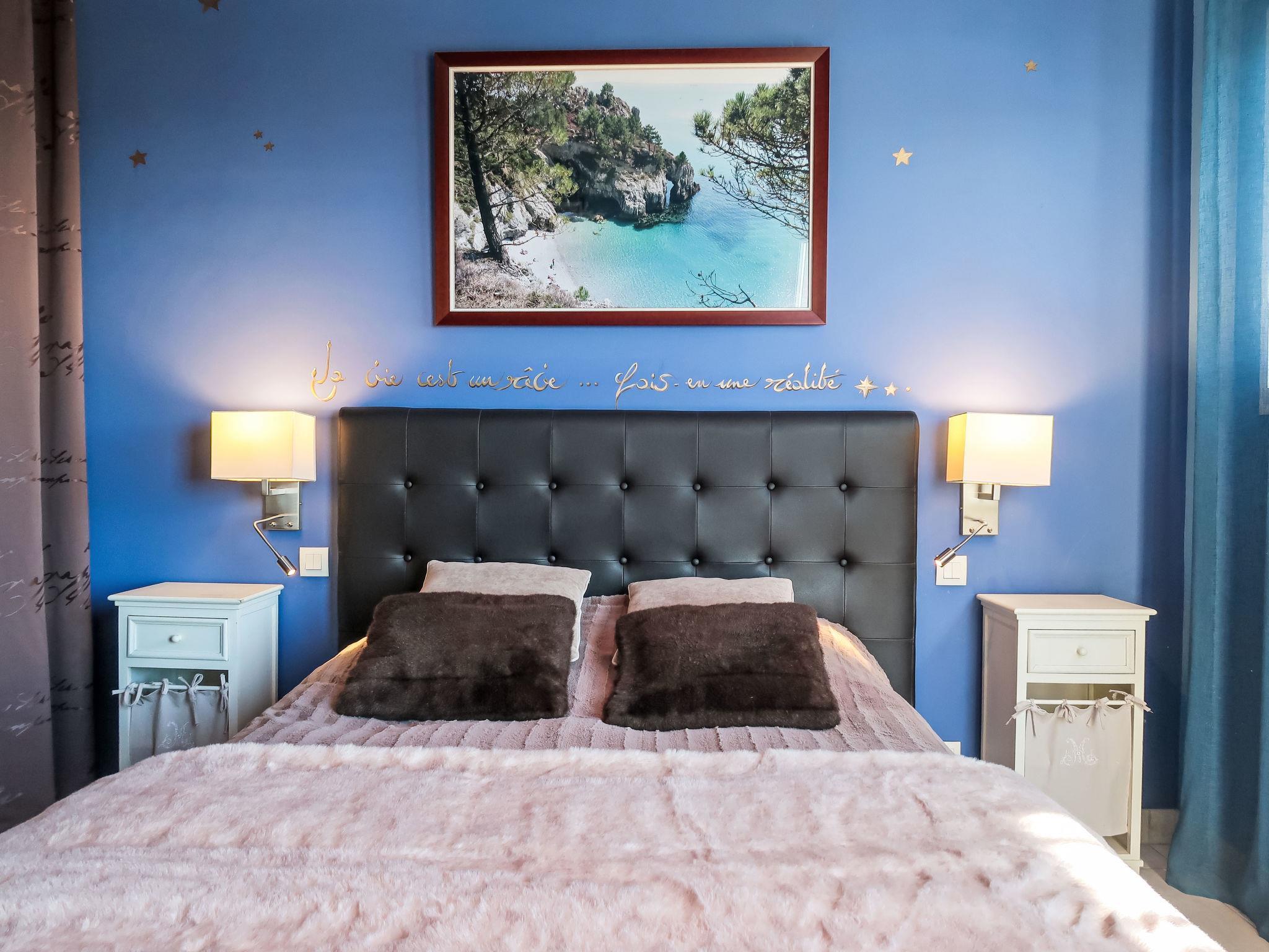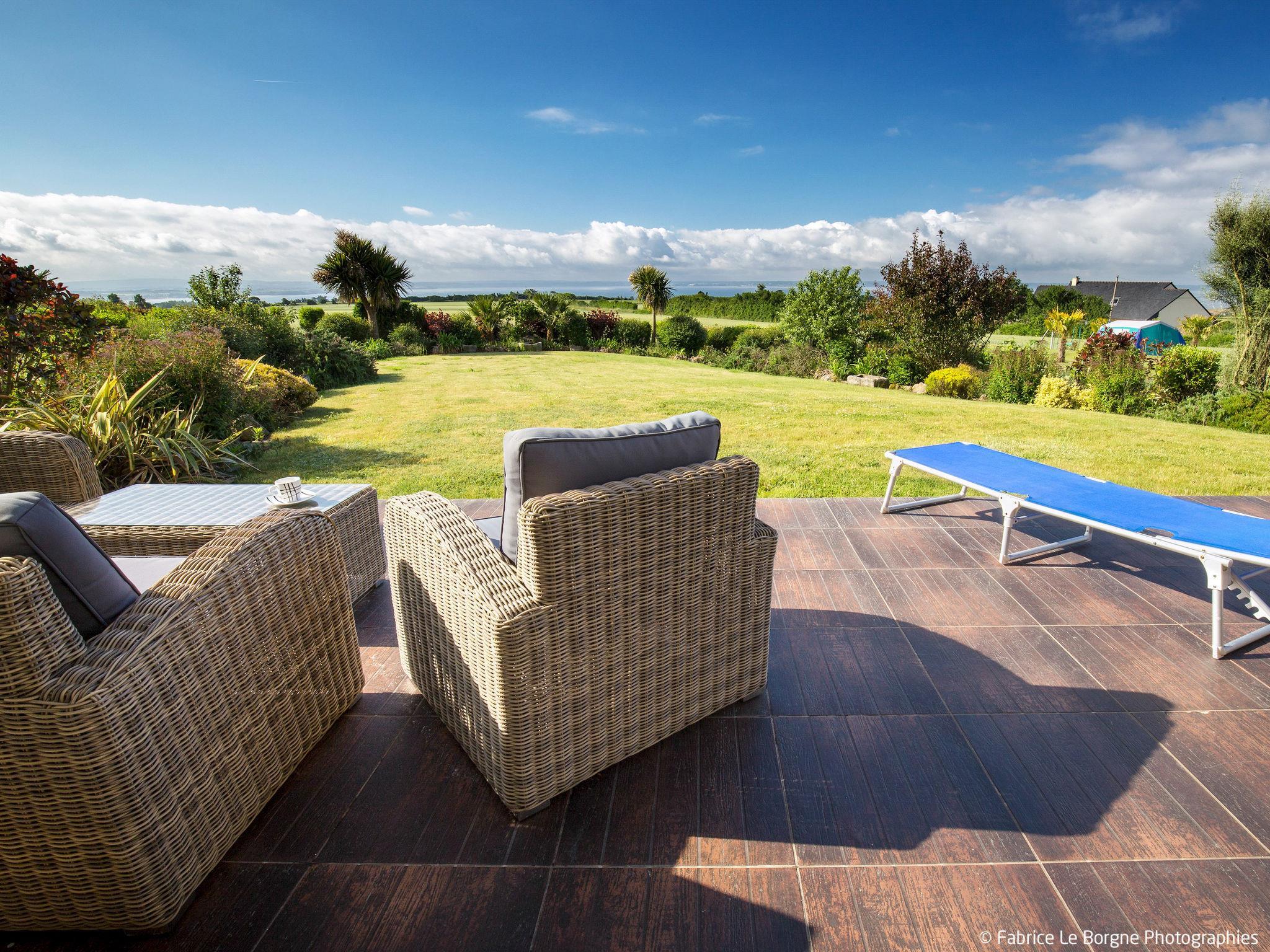 "Cassiopée", 4-room house 135 m2 on 2 levels. Comfortable and beautiful furnishings: living/dining room with dining table, satellite TV, international TV channels, hi-fi system, DVD and electric shutters. Exit to the terrace. 1 room with 1 french bed (140 cm, length 190 cm), electric shutters. Exit to the terrace. Small office with electric shutters. Exit to the terrace. Open kitchen (oven, dishwasher, 3 induction hot plates, toaster, kettle, microwave, freezer, electric coffee machine) with electric shutters. Exit to the terrace. Bath/shower, sep. WC. Heating. Upper floor: 1 room with 1 french bed (160 cm, length 200 cm), electric shutters. 1 room with 2 beds (90 cm, length 190 cm), electric shutters. Shower, sep. WC. Heating. Terrace 70 m2, south-west facing position. Terrace furniture, barbecue (portable). View of the sea and Baie de Douarnenez. Facilities: washing machine, dryer, iron, children's high chair, baby cot. Internet (WiFi, free). Please note: non-smoking house. Maximum 1 pet/ dog allowed. Smoke alarm. When there are less than the maximum number of guests staying at the property, not all of the bedrooms will be available for use.