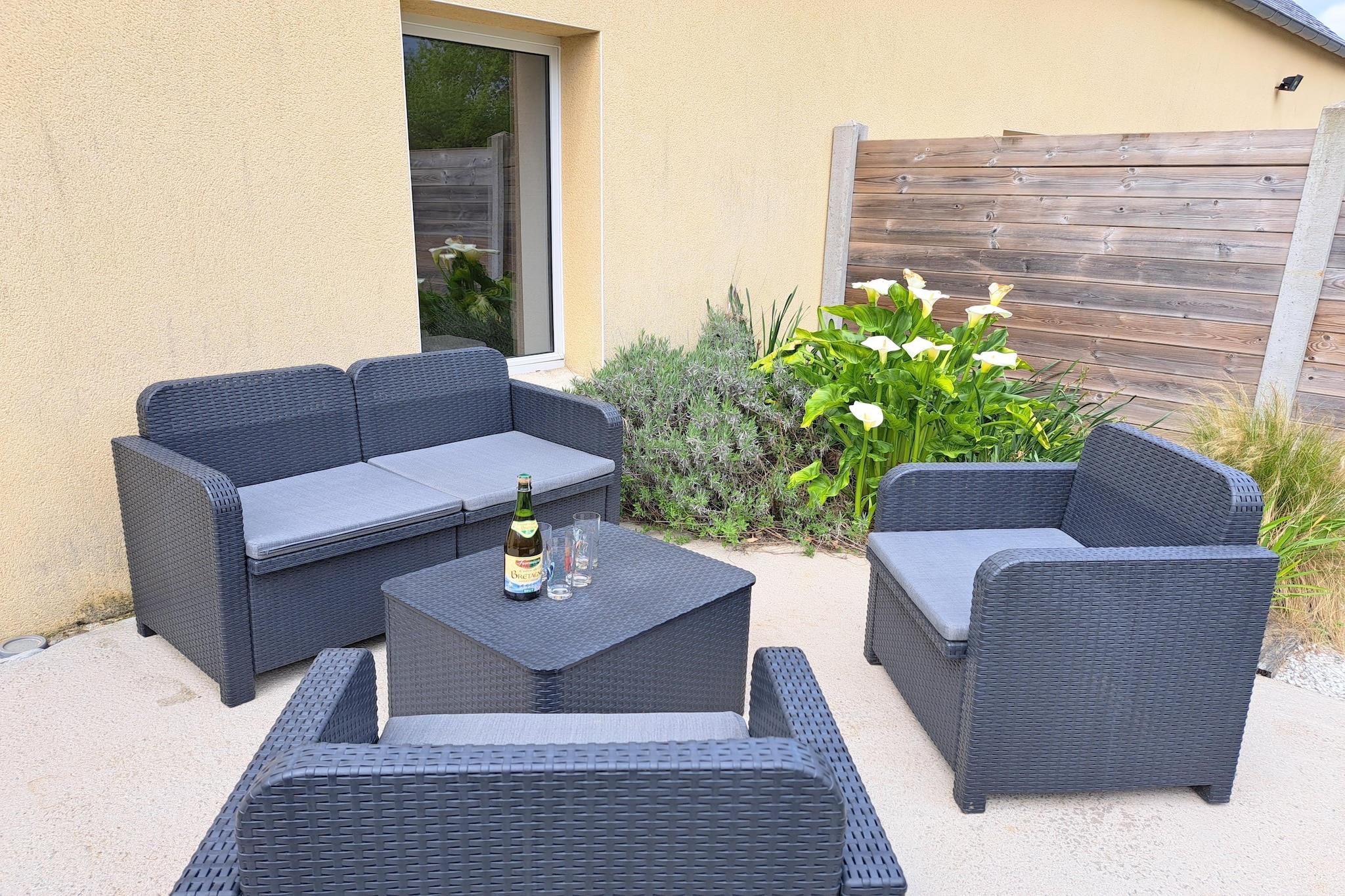 Inbäddat i ett lugnt hörn av Bretagne ligger detta charmiga parhus på en lugn egendom på 9 000 m², som delas av endast fyra hus. Varje hus har sin egen privata, inhägnade trädgård och en mysig terrass som erbjuder avskildhet, utrymme och en plats att njuta av havsbrisen med ditt morgonkaffe eller ett kvällsglas vin. Inuti är huset modernt, ljust och omsorgsfullt möblerat för komfort och bekvämlighet. Efter dagar av utforskande kan du krypa upp vid den sprakande öppna spisen och känna dig som hemma. Oavsett om du lagar lokala skaldjur i det fullt utrustade köket eller njuter av en god bok i trädgården, är huset den perfekta miljön för en avkopplande semester. Bara 3 minuters promenad bort lockar den vidsträckta sandstranden i Telgruc-sur-Mer. Stranden är perfekt för familjer och erbjuder mjuka vågor, en strandbar för snacks och till och med en seglarskola för den äventyrlige. Promenera längs den natursköna kustleden GR34 eller varva ner vid vattnet, detta är en plats där tiden saktar ner. Upptäck den historiska charmen i Douarnenez, en tidigare sardinhamn känd för sina fiskrestauranger och hamnkaféer. Besök Locronan, en av Frankrikes mest pittoreska medeltida byar, ofta använd som filminspelningsplats för sin tidlösa skönhet. Utforska Crozonhalvöns naturliga underverk, med dramatiska klippor, gömda vikar och kuststigar som bjuder på oförglömliga vandringar. Oavsett om du är här för natur, kultur eller ren avkoppling, erbjuder detta semesterhus en perfekt blandning av komfort och bretonsk charm.
