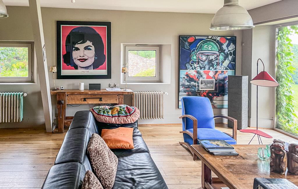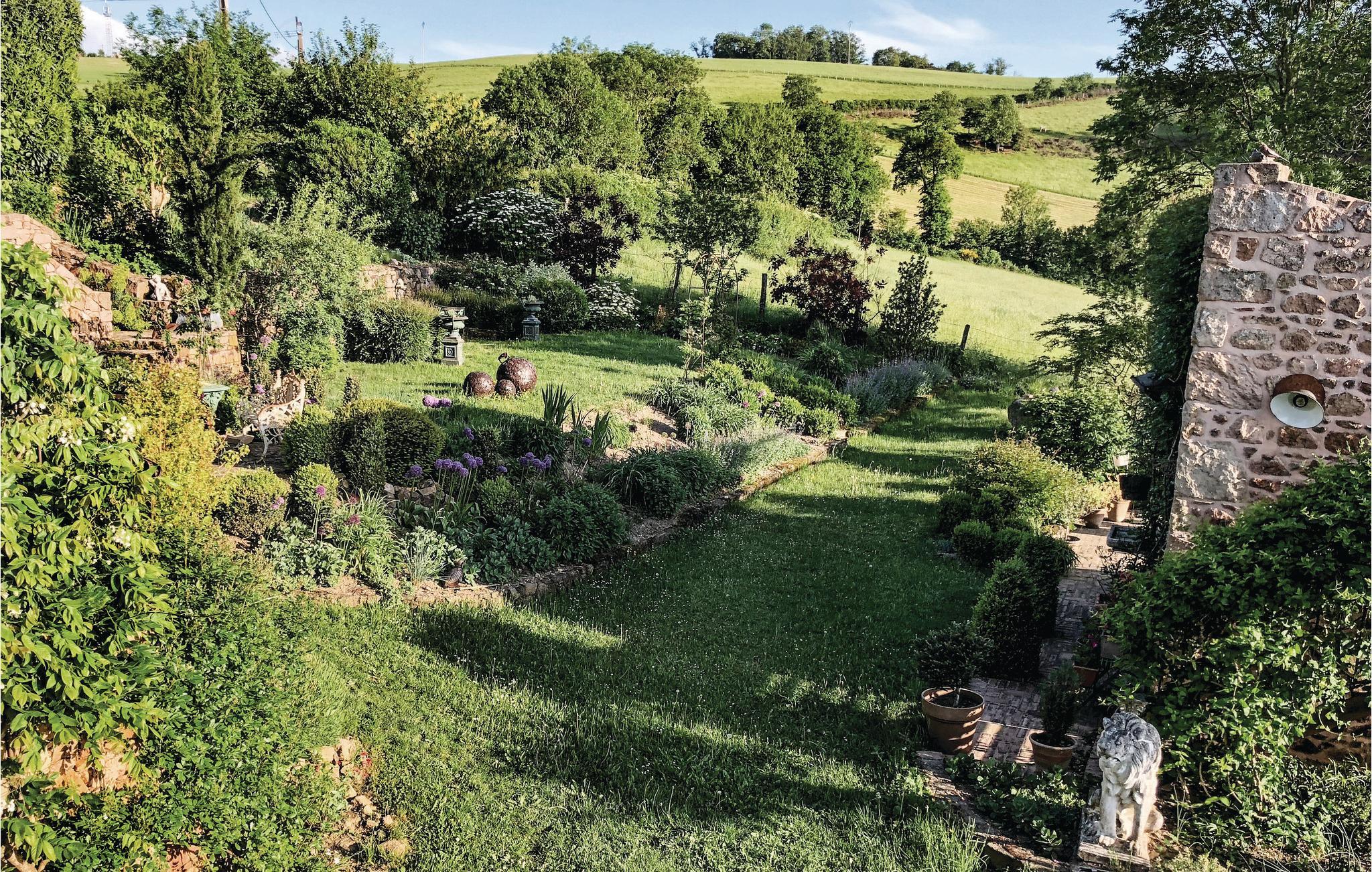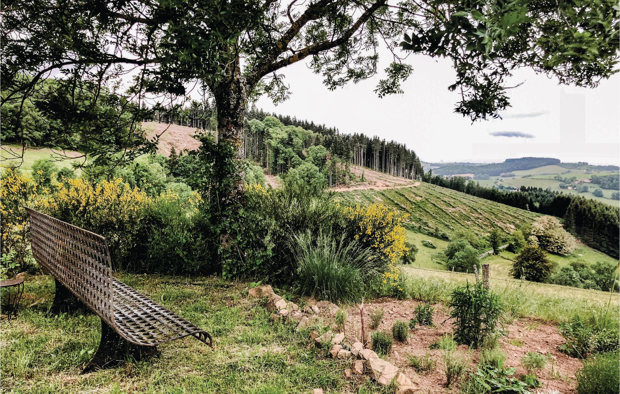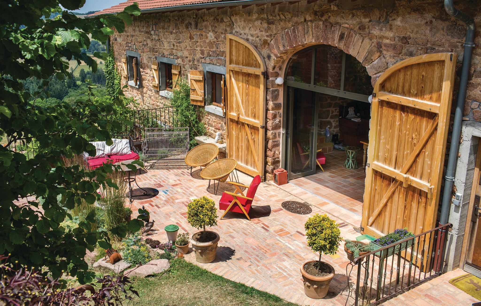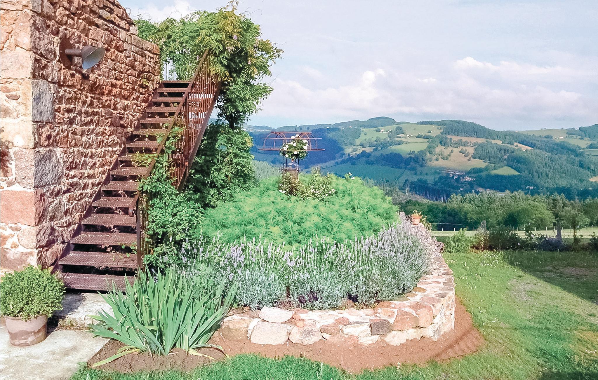 Denna rymliga semesterbostad med mycket charm ligger i den gröna och mycket charmiga regionen Monts du Beaujolais. Tack vare sitt läge mitt i naturen är det helt i sten byggda huset en liten bit av paradiset. Det öppnar sig mot en idyllisk trädgård med gräsmatta på 2 000 m² och har en stor privat pool och tre terrasser. Från den soldränkta takterrassen på ett litet uthus kan gästerna njuta av en hisnande panoramautsikt. Stora glasfronter och förtrollande dekoration ger en behaglig atmosfär inne i huset. Förutom rumsinredningen bidrar en skicklig blandning av moderna, barocka och rustika föremål, bekväma och högkvalitativa möbler naturligtvis till ditt välbefinnande. Du kan spela din egen musik via den Bluetooth-högtalare som ägarna tillhandahåller.