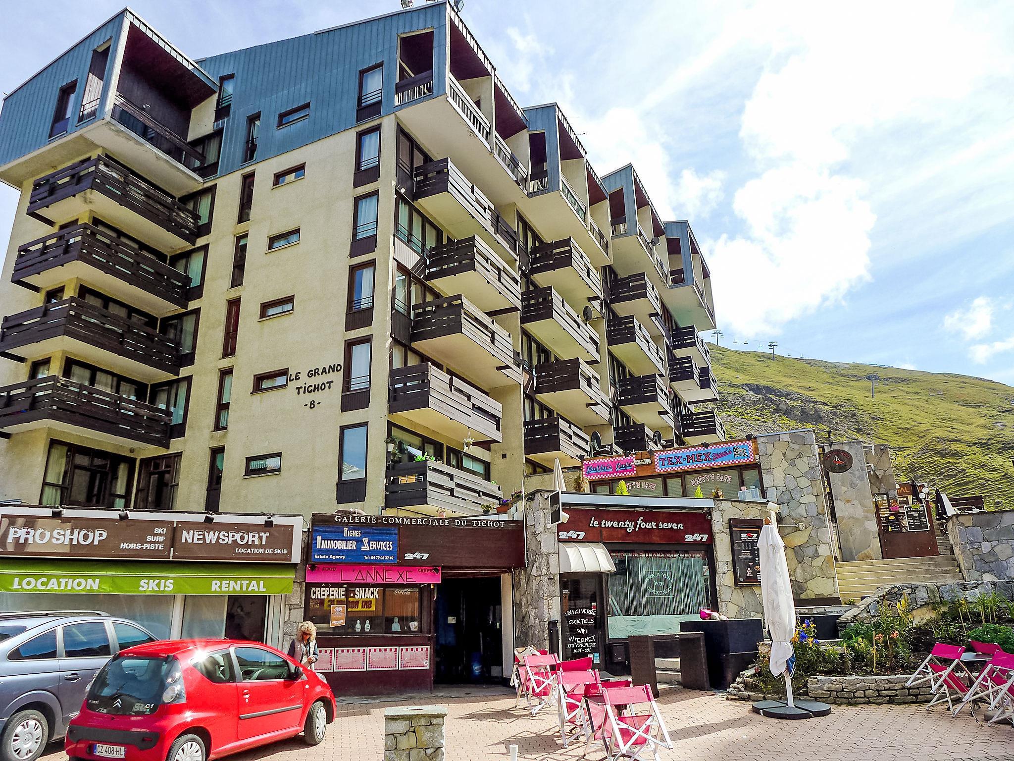 Tignes Val Claret: In the shopping centre. Residence "Le Grand Tichot A et B (Val Claret)". In a central, busy position, 100 m from the skiing area. In the complex: lift, central heating system. Shop, supermarket, shopping centre, restaurant, bakery, café 10 m, bus stop 300 m, indoor swimming pool 2 km. Sports centre 2 km, skisport facilities 100 m, slopes 150 m, ski rental 10 m, ski school, sled run. Well-known ski regions can easily be reached: Tignes & Val d'Isère 100 m. Please note: Additional accommodations can be booked.