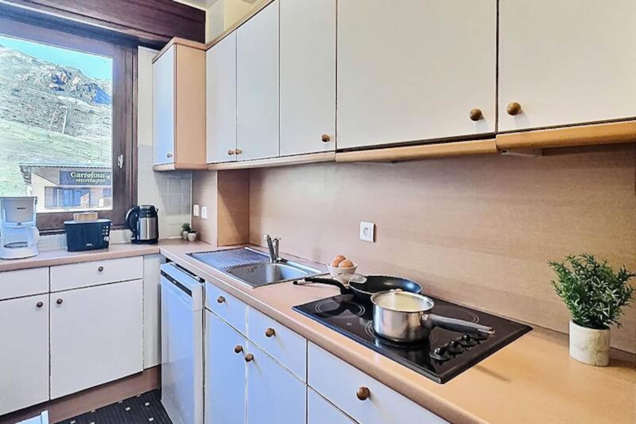 I hjärtat av det pulserande Tignes Le Lac-distriktet inbjuder denna charmiga lägenhet dig att fördjupa dig i den alpina livsstilen. Med sitt utmärkta läge på en livlig gata kantad av butiker och restauranger, och bara några steg från backarna, skidliftarna och skidskolan, lovar varje ögonblick av din vistelse bekvämlighet och äventyr. Balkongen i söderläge erbjuder hisnande utsikt över hela skidområdet och den skimrande sjön Tignes, vilket gör den till den perfekta platsen att börja eller avsluta din dag i bergen. Denna funktionella och rymliga lägenhet med ett sovrum är 55 m² stor och rymmer bekvämt upp till sex gäster. Vardagsrummet har en bäddsoffa för två personer och två enkelsängar, medan sovrummet har en mysig dubbelsäng. Det fullt utrustade köket har keramikhäll, ugn, mikrovågsugn, diskmaskin och kylskåp, vilket säkerställer att du har allt som behövs för att laga rejäla måltider efter en dag med skidåkning eller vandring. Ett badrum med badkar och en separat toalett ökar komforten, medan moderna bekvämligheter som TV, tvättmaskin och skidförvaring förbättrar din vistelse. Lägenheten ligger på andra våningen i en byggnad med hiss och inkluderar även ett privat garage i Tignespace, vilket ger extra bekvämlighet. Utöver fastigheten erbjuder Tignes Le Lac en dynamisk atmosfär med sitt utbud av afterski-alternativ, lokala restauranger och aktiviteter året runt. Oavsett om du ger dig ut i backarna på vintern eller utforskar de natursköna lederna på sommaren, placerar denna bostad dig i hjärtat av allt. Perfekt för familjer eller grupper av vänner, kombinerar denna lägenhet komfort, praktisk funktionalitet och ett oslagbart läge. Låt de fantastiska alpina vyerna och den livliga atmosfären i Tignes skapa oförglömliga minnen för din nästa bergssemester.