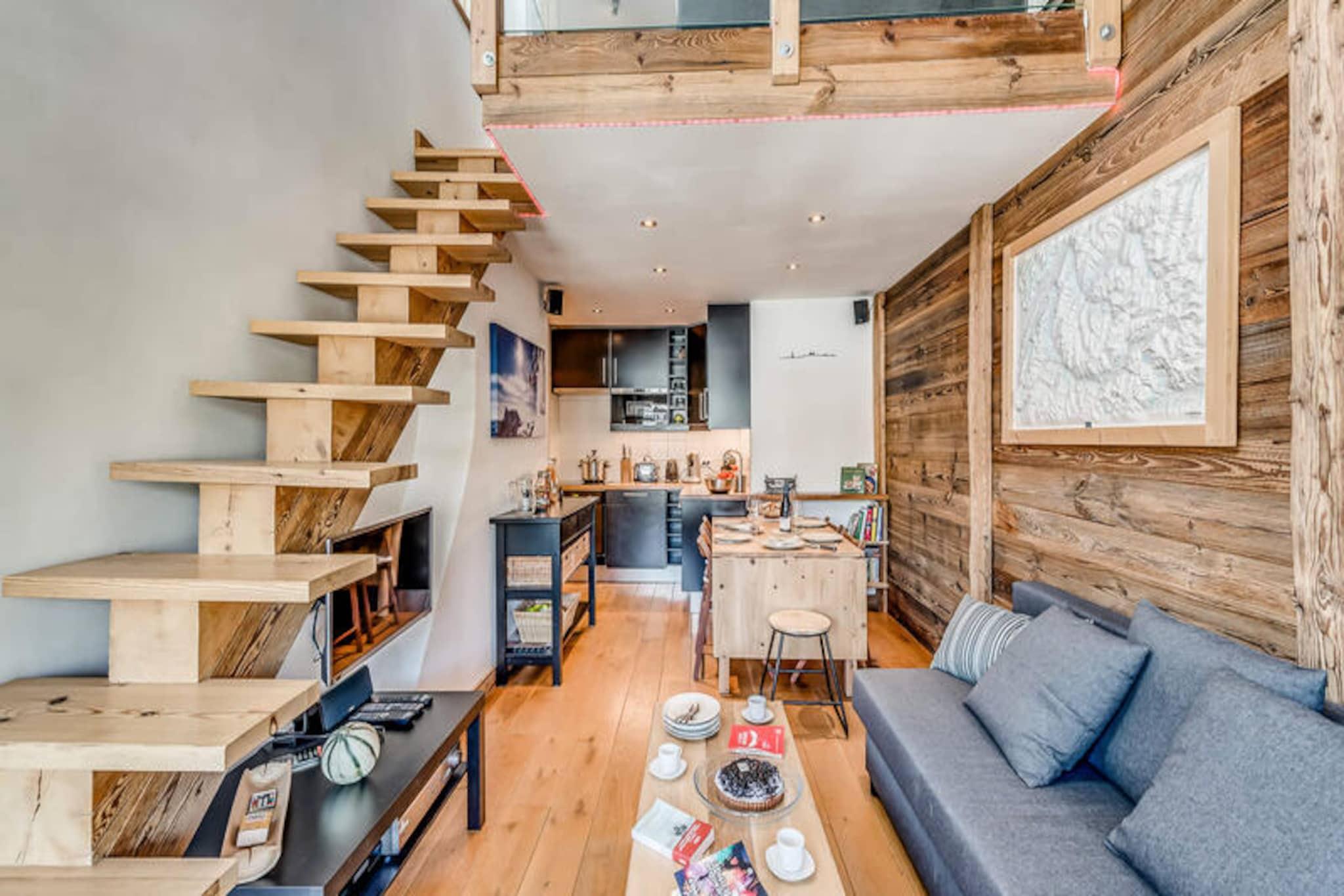 Högt ovanför den fridfulla alpdalen, i det soliga området Tignes-le-Lavachet, erbjuder denna charmiga triplexlägenhet en varm och välkomnande tillflyktsort för både familjer och vänner. Belägen på en höjd av 2 100 meter, är residenset perfekt beläget bara 50 meter från backarna, vilket ger enkel tillgång till stolliftarna Chaudannes och Pâquis. Med butiker, bagerier och restauranger mindre än 20 meter bort, finns allt du behöver för en bekväm vistelse precis utanför dörren. Anläggningens kostnadsfria transferservice garanterar snabb och bekväm tillgång till Tignes-le-Lac och Tignes-val Claret, vilket gör utforskningen enkel. \n\nDenna 55 m² stora lägenhet, fördelad på tre våningar, kombinerar rustik charm med moderna bekvämligheter. Bottenvåningen har en praktisk entré med pjäxställ, ett förråd med tvättmaskin och frys samt ett elegant badrum med duschkabin. Köket i öppen planlösning är fullt utrustat med keramikhäll, ugn, mikrovågsugn, kylskåp och diskmaskin, medan matplatsen och det mysiga vardagsrummet med en bäddsoffa leder till en balkong i söderläge. På övervåningen erbjuder mezzaninen en lugn läshörna med ytterligare en bäddsoffa, och den översta våningen har ett privat sovrum med dubbelsäng, förvaringsskåp och ett skrivbord med takfönster.\n\nHameaux de Toviere Residence är utformad för avkoppling och bekvämlighet, med privata skidförvaringsskåp och inkluderade hotelltjänster som sängkläder, handdukar och slutstädning. Mot en extra avgift kan gästerna njuta av Wi-Fi, babyutrustning och närliggande inomhusparkering. Oavsett om du är här för att åka skidor, snowboard eller bara njuta av den hisnande utsikten över bergen, erbjuder denna fastighet den perfekta basen för ditt alpina äventyr.\n\nFly till Tignes-le-Lavachet och skapa oförglömliga minnen i denna idylliska bergsresort, där den friska luften och de majestätiska topparna inspirerar till stunder av ren lugn och glädje.