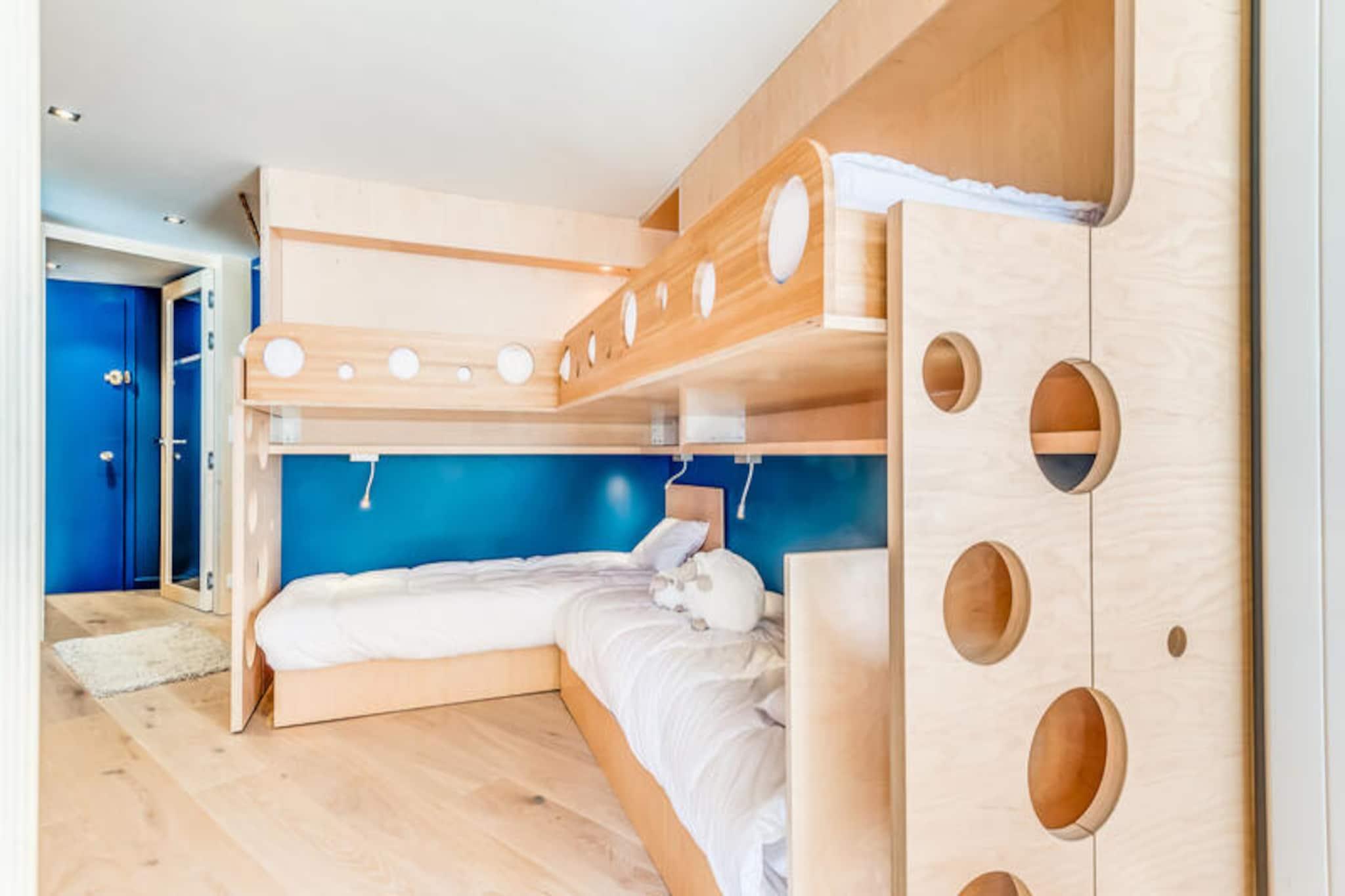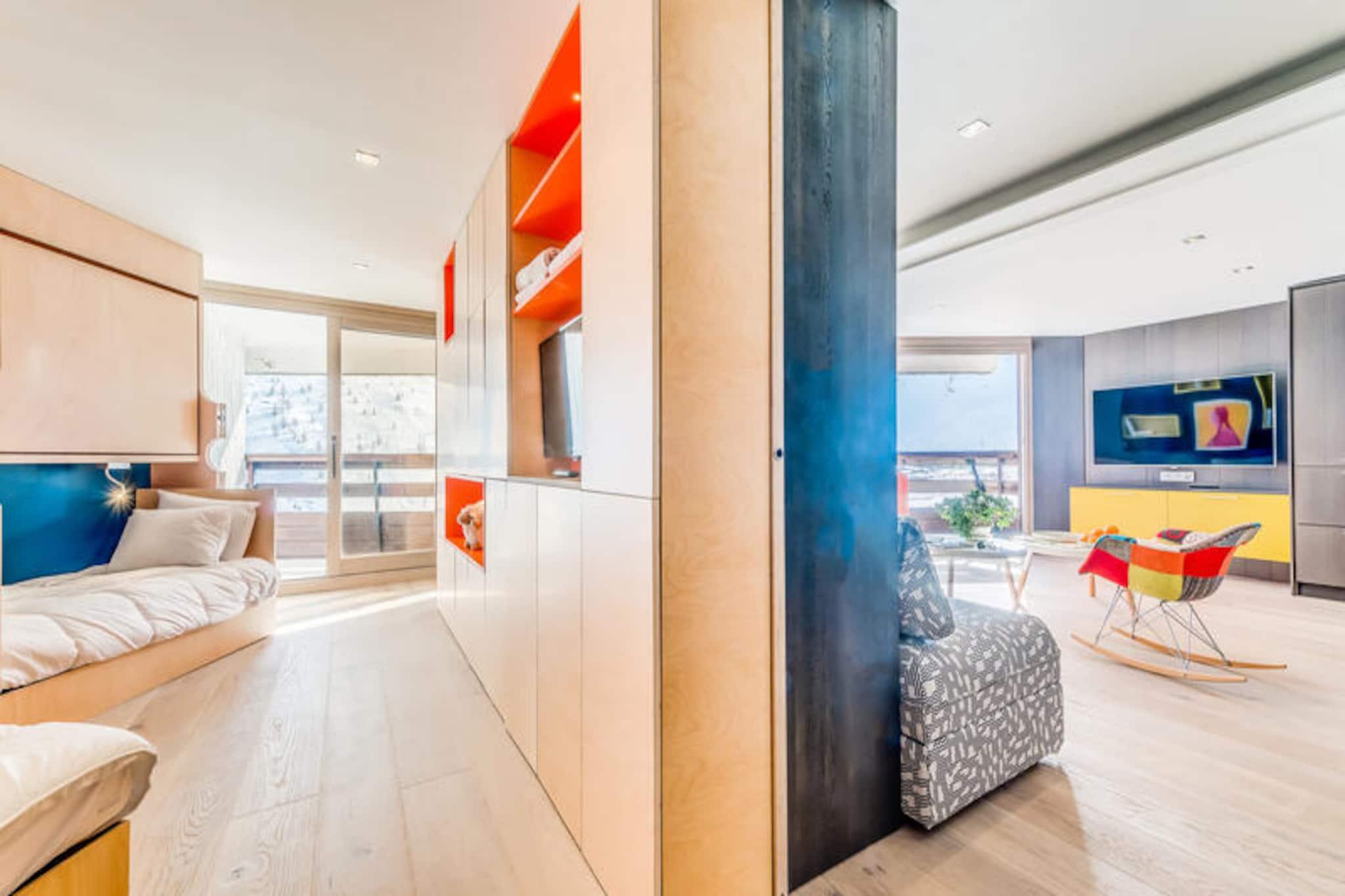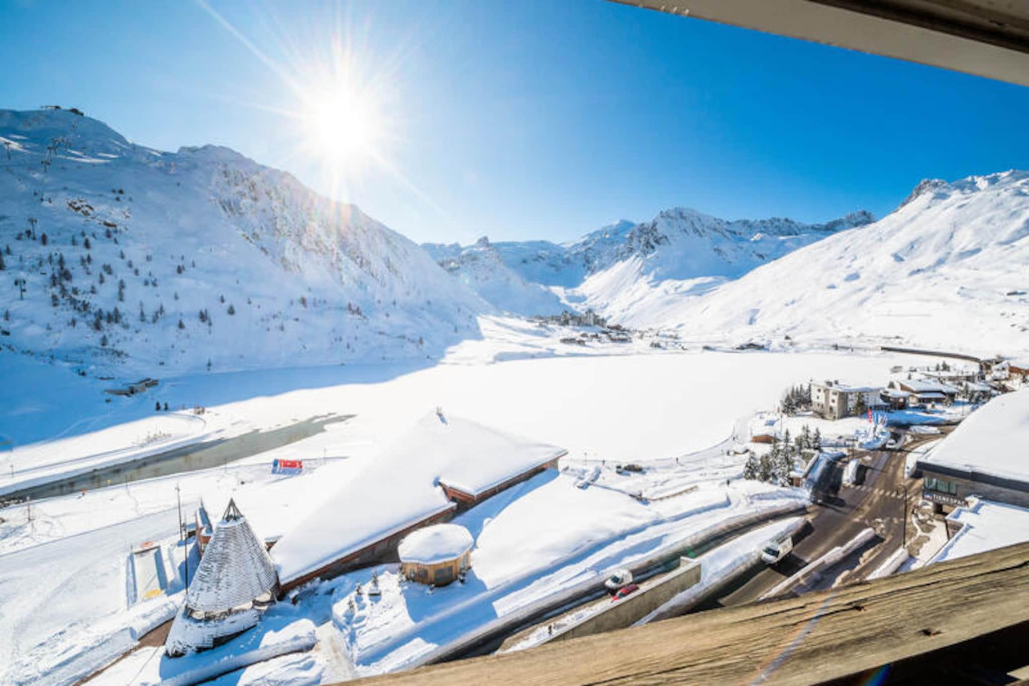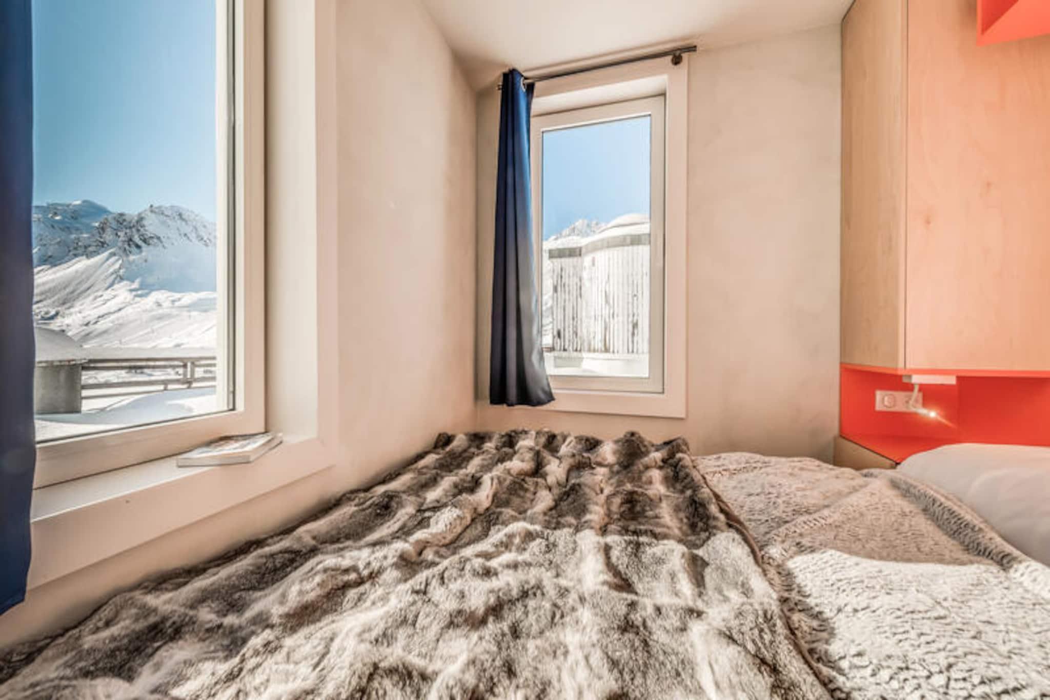 Högt ovanför den pulserande alpbyn Tignes Le Lac erbjuder denna exklusiva duplexlägenhet en oöverträffad tillflyktsort i bergen. Belägen på 11:e våningen i den ikoniska Residence LE PALAFOUR, kombinerar den hisnande panoramautsikt med direkt ski-in/ski-out-tillgång till de världsberömda sluttningarna i Tignes och Val d'Isère. Tänk dig att vakna upp till solen som går upp över de snöklädda topparna, kliva ut på din privata takterrass och känna den friska bergsluften medan du planerar din äventyrsdag. \n\nDenna vackert renoverade lägenhet på 80 m² blandar sömlöst modern komfort med alpin charm. Det rymliga vardagsrummet, prydt med varma ockra- och röda trädetaljer, inbjuder dig att koppla av i den mjuka soffan medan du njuter av platt-TV:n. Det fullt utrustade öppna köket, komplett med diskmaskin, ugn och keramikhäll, säkerställer enkel matlagning för upp till åtta gäster. Sovrummen är noggrant utformade, med ett mångsidigt sovrum med skjutdörrar, våningssängar och en mysig dubbelsäng på övervåningen med eget badrum och tillgång till solarium. Varje detalj, från duschkabinerna till det kostnadsfria Wi-Fi-et, har utformats för att ge en lyxig vistelse.\n\nBeläget på 2 100 meters höjd placerar Residence LE PALAFOUR dig i hjärtat av Tignes Le Lacs livliga atmosfär. Bara några steg bort hittar du vattenparken LE LAGON och sport- och kulturkomplexet TIGNESPACE, som erbjuder aktiviteter för alla åldrar. Själva residenset ståtar med ett köpcentrum med skidskolor, sportbutiker, en stormarknad och en mängd olika matställen. Oavsett om du är här för att åka i de orörda backarna, varva ner i spaet eller utforska den pulserande afterski-scenen, har detta läge allt.\n\nMed sitt oslagbara läge, förstklassiga bekvämligheter och fantastiska utsikter är denna duplexlägenhet mer än bara ett ställe att bo på – det är en inbjudan att skapa oförglömliga alpina minnen. Upplev magin i Tignes från bekvämligheten i denna exceptionella bergsresort.