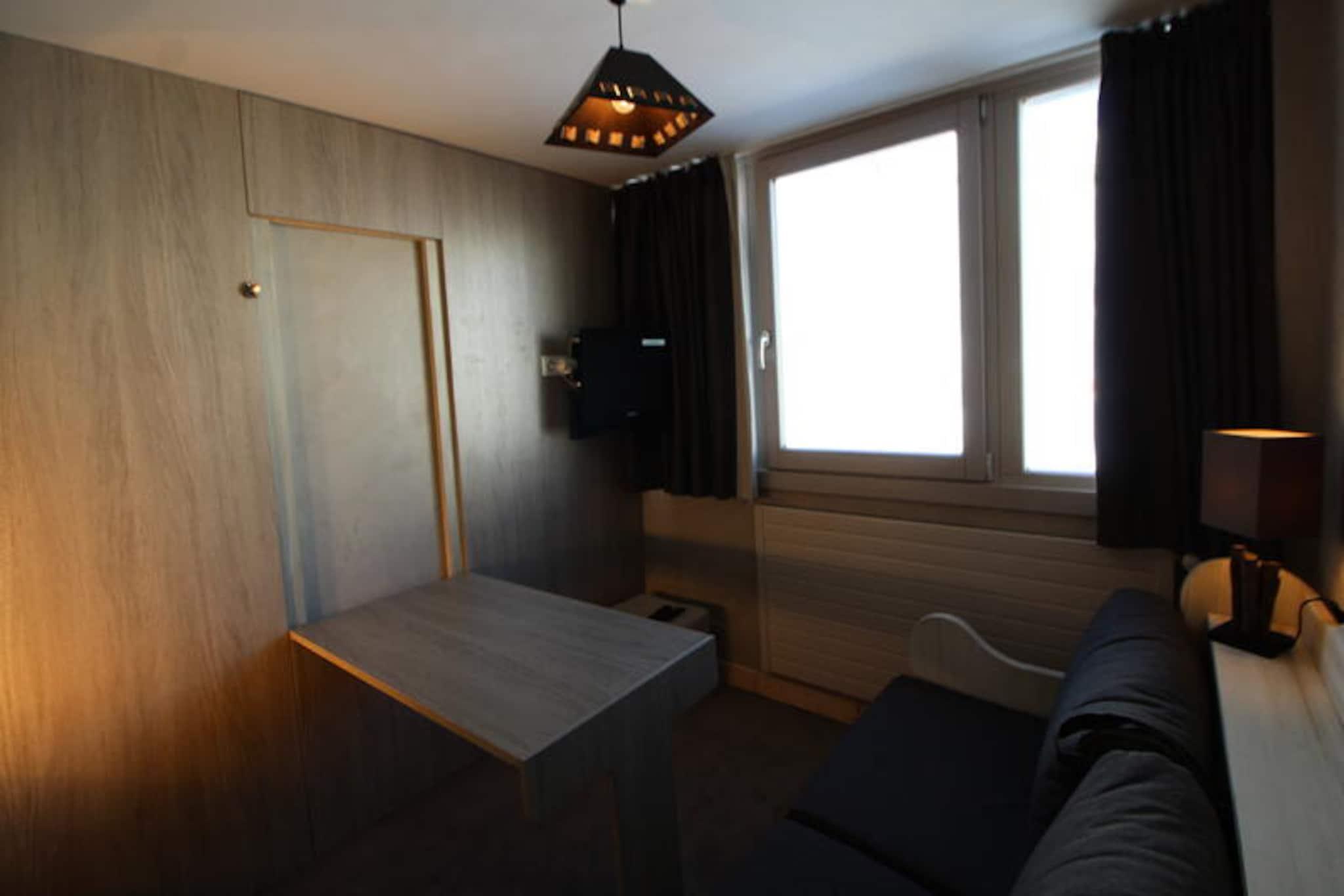 Högt ovanför Tignes Le Lacs skimrande vatten erbjuder denna charmiga studio en mysig tillflyktsort för par som söker en blandning av alpint äventyr och modern bekvämlighet. Från sin nionde våning i Residence LE PALAFOUR bjuds gästerna på vidsträckt utsikt över de omgivande topparna och den livliga byn nedanför. Oavsett om du är här för spänningen med skidåkning eller lugnet i bergsluften, placerar detta läge dig i hjärtat av allt, med direkt tillgång till skidbacken som säkerställer att varje dag börjar med lätthet och spänning. \n\nStudioen har totalrenoverats för att erbjuda komfort och funktionalitet i sin kompakta yta på 16 m². Vardagsrummet har en bekväm bäddsoffa och en TV för avkopplande kvällar efter en dag i backarna. Pentryt är utrustat med viktiga apparater, inklusive elektriska kokplattor, ugn, mikrovågsugn och kylskåp, så att du enkelt kan laga mat. Badrummet har en modern dusch, handfat och toalett, vilket kompletterar de bekvämligheter som behövs för en bekväm vistelse. Med täcken till sängen har varje detalj noggrant beaktats för att garantera en god natts sömn. \n\nNär du går ut befinner du dig bara 50 meter från vattenparken LE LAGON och 100 meter från sport- och kulturkomplexet TIGNESPACE. Residenset ståtar också med ett köpcentrum med skidskolor, sportbutiker, en stormarknad, bageri, barer och restauranger, vilket gör det enkelt att komma åt allt du behöver under din vistelse. För extra bekvämlighet finns privata skidförvaring tillgängliga, och personlig service tillhandahålls av Tignes Agence. \n\nOavsett om du dras till backarna, den pulserande byatmosfären eller den fridfulla skönheten i de franska Alperna, är denna studio den perfekta basen för en oförglömlig bergsflykt. Låt charmen i Tignes Le Lac och komforten i Residence LE PALAFOUR skapa bestående minnen från ditt alpina äventyr.