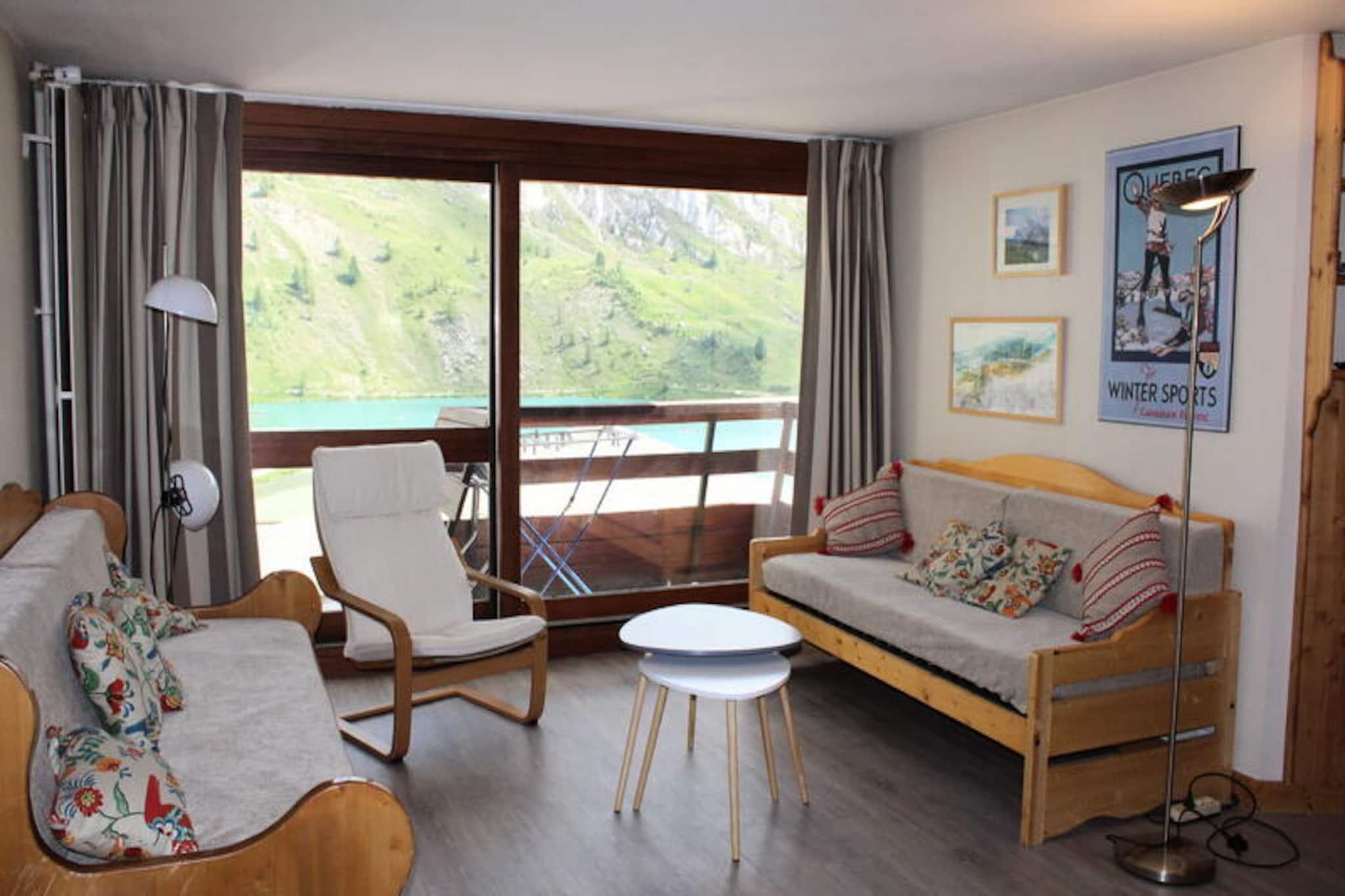 Högt ovanför Tignes Le Lacs skimrande vatten erbjuder denna rymliga lägenhet i den ikoniska Residence LE PALAFOUR en perfekt alpin tillflyktsort på 2 100 meters höjd. Med direkt tillgång till ski-in/ski-out och hisnande utsikt över Grande Motte-glaciären och Toviere-topparna, genomsyras varje ögonblick här av magin i de franska Alperna. Oavsett om du blickar ut från balkongen i söderläge eller kliver direkt ut i backarna, är det här äventyr möter avkoppling. \n\nInuti rymmer den 63 m² stora lägenheten bekvämt upp till sju gäster. Den omsorgsfullt utformade planlösningen inkluderar ett mysigt vardagsrum med en enkelsäng, platt-TV och matplats, samt ett fullt utrustat kök med moderna apparater som ugn, mikrovågsugn och diskmaskin. Två inbjudande sovrum erbjuder vilsamma tillflyktsorter: ett med en dubbelsäng och ett annat med två enkelsängar. Ytterligare sovplats finns i entréhallen med våningssängar. Med ett badrum, ett duschrum och en separat toalett garanterar lägenheten bekvämlighet för grupper eller familjer. \n\nResidence LE PALAFOUR i sig är ett nav av bekvämlighet och aktivitet. Beläget bara 50 meter från vattenparken LE LAGON och 100 meter från sport- och kulturkomplexet TIGNESPACE, är det omgivet av ett pulserande köpcentrum med skidskolor, sportbutiker, en stormarknad och charmiga bagerier. Efter en dag i backarna kan du varva ner på en av de närliggande barerna eller restaurangerna, eller utforska de många bekvämligheterna som ligger bara några steg bort. \n\nOavsett om du är här för skidåkning i världsklass, den orörda bergsluften eller den livliga afterski-atmosfären, erbjuder denna lägenhet den perfekta basen för en oförglömlig alpin flykt.