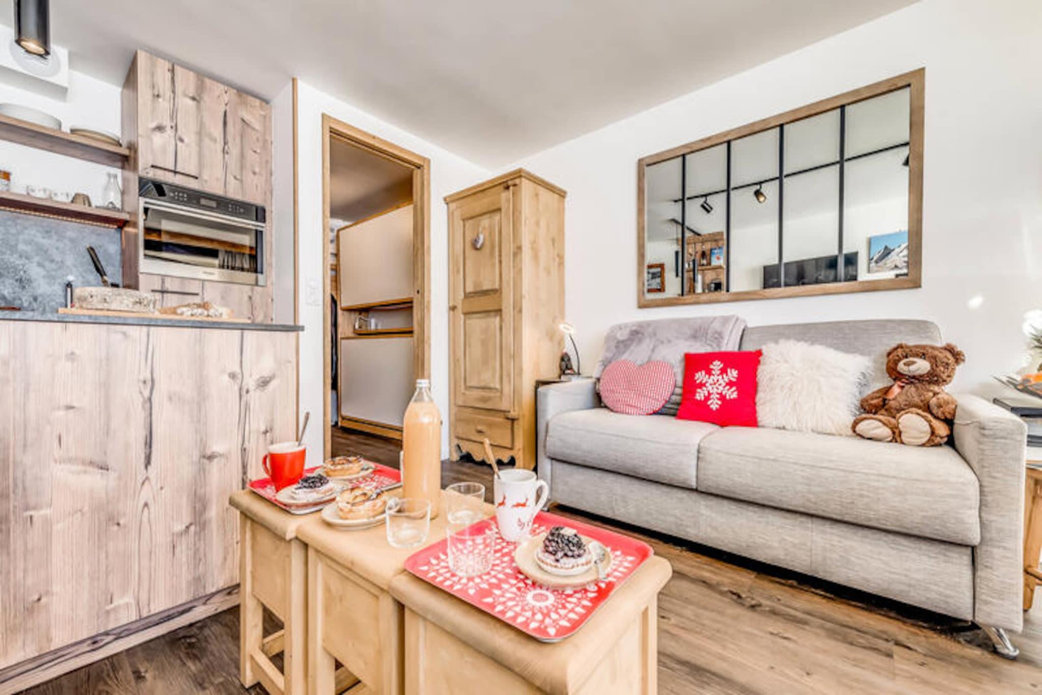 Högt ovanför Tignes Le Lacs skimrande vatten erbjuder denna premiumstudio en plats på första parkett till den alpina magin på en av Frankrikes mest ikoniska skiddestinationer. Tänk dig att vakna upp till solen som går upp över sjön, kliva ut på din balkong i söderläge och andas in den friska bergsluften medan backarna lockar precis utanför dörren. Med direkt tillgång till ski-in/ski-out är du perfekt positionerad för att utforska Tignes och Val d'Isères pister i världsklass, vilket gör varje dag till ett äventyr i det snötäckta paradiset i de franska Alperna. \n\nDenna omsorgsfullt designade studio, belägen på 8:e våningen i Residence LE PALAFOUR, rymmer bekvämt upp till fyra gäster. Utrymmet är smart arrangerat med utfällbara våningssängar i entrén och ett mysigt vardagsrum med en bäddsoffa och en icke-bäddsoffa. Pentryt är utrustat med moderna bekvämligheter, inklusive keramikhäll, kylskåp med frysfack, multifunktionsugn och diskmaskin, vilket säkerställer att du har allt du behöver för att laga mat efter en dag i backarna. Badrummet har dusch, handfat och separat toalett, komplett med tvättmaskin för extra bekvämlighet. Premiumhotelltjänster som sängkläder, handdukar och slutstädning (exklusive köket) ingår, vilket garanterar en problemfri vistelse. \n\nStig ut och upptäck det pulserande hjärtat av Tignes Le Lac. Residenset ligger bara 50 meter från vattenparken LE LAGON och 100 meter från sport- och kulturkomplexet TIGNESPACE, som erbjuder en mängd aktiviteter för både avkoppling och äventyr. I köpcentret på plats finns skidskolor, sportbutiker, en stormarknad, ett bageri, barer och restauranger, och allt du behöver finns inom räckhåll. Oavsett om du är här för att åka skidor, vandra eller bara njuta av det fantastiska alpina landskapet, är denna studio din port till oförglömliga bergsminnen. \n\nVälj denna charmiga tillflyktsort för dess oslagbara läge, moderna bekvämligheter och hisnande utsikt, och låt magin i Tignes Le Lac bli bakgrunden till din nästa alpina flykt.