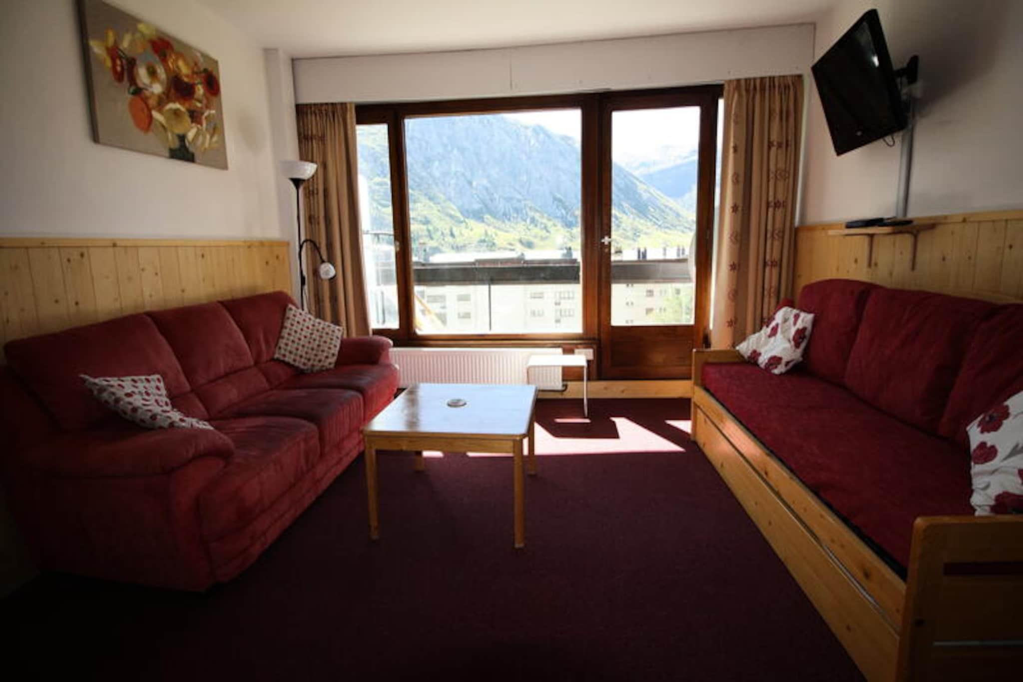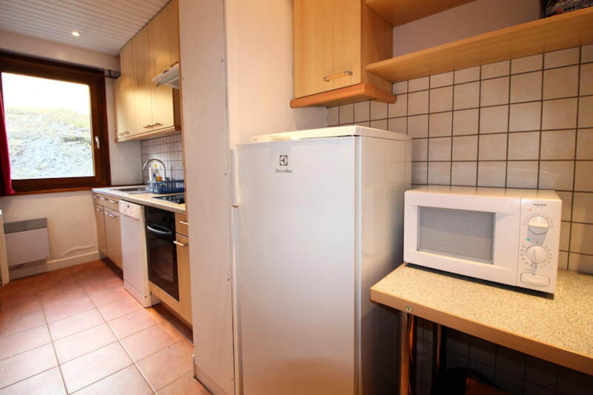 Högt ovanför det glittrande vattnet i Tignes-Le-Lac erbjuder denna inbjudande lägenhet i LE BEC ROUGE-residenset en plats på första parkett till den franska Alpernas hisnande skönhet. Med sin söderläge balkong med utsikt över sjön och den majestätiska Grande Motte-glaciären känns varje ögonblick här som ett vykort som har kommit till liv. Oavsett om du smuttar på ditt morgonkaffe eller kopplar av efter en dag full av äventyr, lovar den panoramautsikten att inspirera och ge ny energi. Inuti är den 53 m² stora lägenheten genomtänkt utformad för att rymma upp till sex gäster. Vardagsrummet, som badar i naturligt ljus, har en utdragbar säng, en mysig soffa och en TV med DVD-spelare för avslappnade kvällar. Det separata sovrummet, med sin bekväma dubbelsäng och gott om förvaringsutrymme, garanterar vilsamma nätter, medan entrén med våningssängar ger en lekfull touch för yngre resenärer. Det fullt utrustade köket, komplett med keramikhäll, ugn, mikrovågsugn, diskmaskin och till och med en tvättmaskin, gör matlagningen till en barnlek. Ett badrum med badkar och separat toalett bidrar till bekvämligheten och gör detta utrymme lika funktionellt som charmigt. Residenset ligger direkt vid backarna och erbjuder oöverträffad tillgång till skidåkning, så att du enkelt kan ta dig ut på Tignes pudersnöiga backar. I närheten finns en mängd olika butiker, inklusive skiduthyrning, stormarknader och mysiga restauranger, så att allt du behöver finns bara några steg bort. Efter en dag i backen kan du förvara din utrustning i de privata skidskåpen och utforska det livliga afterski-livet eller helt enkelt koppla av i din bekväma alpina tillflyktsort. Oavsett om du är här för skidåkning i världsklass, den fridfulla alpina atmosfären eller det livliga bylivet, är denna lägenhet i LE BEC ROUGE din perfekta bas för en oförglömlig semester i bergen. Låt dig förtrollas av Tignes-Le-Lac och skapa minnen som varar hela livet.