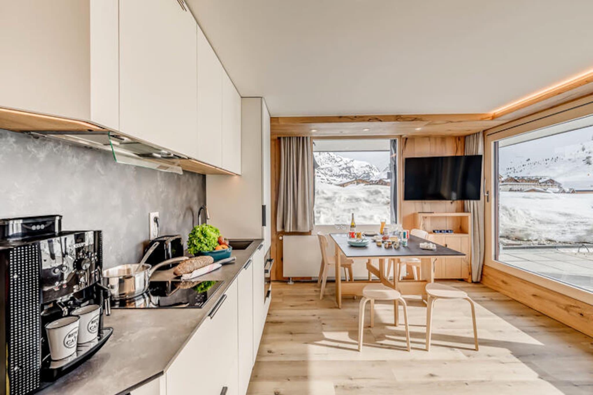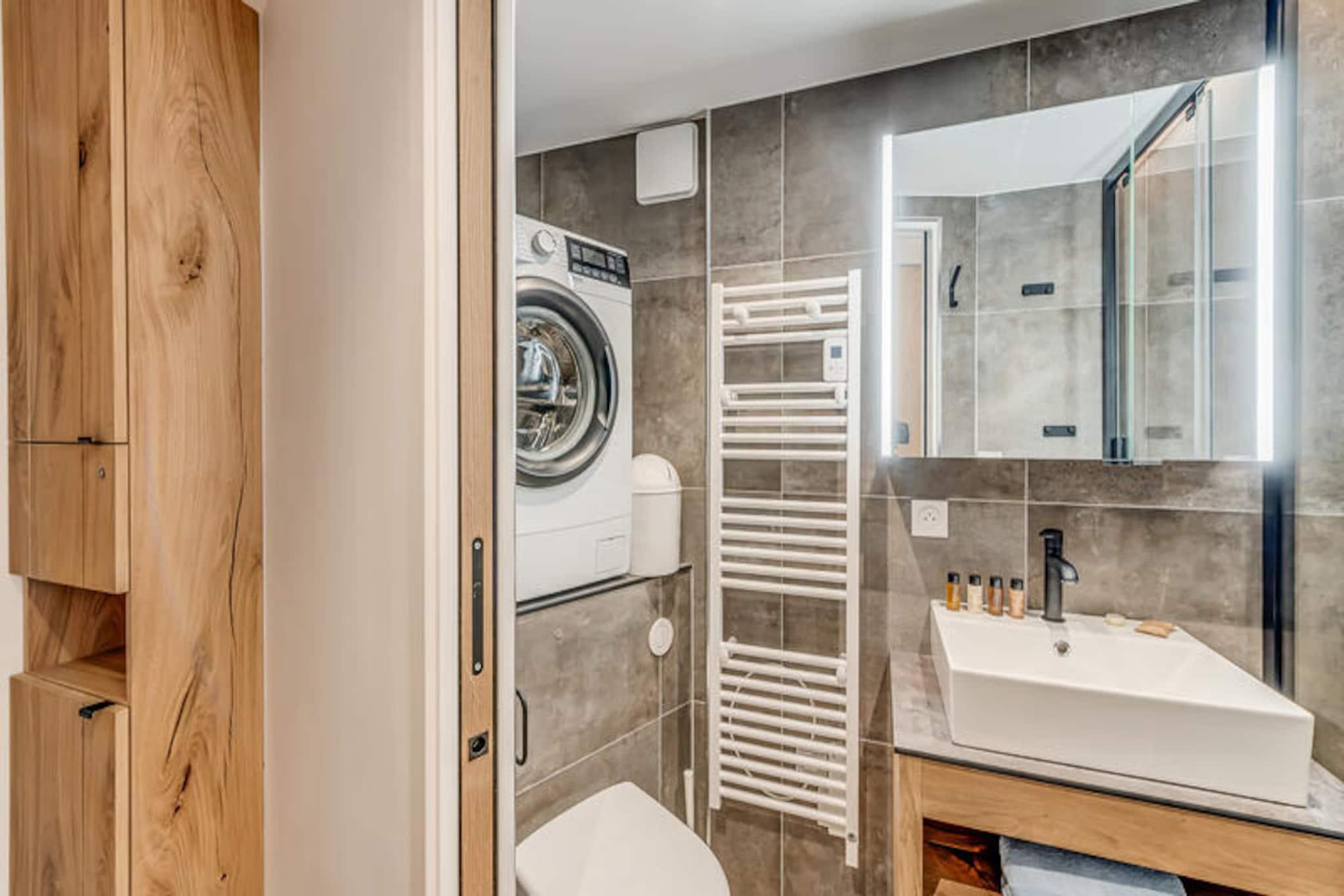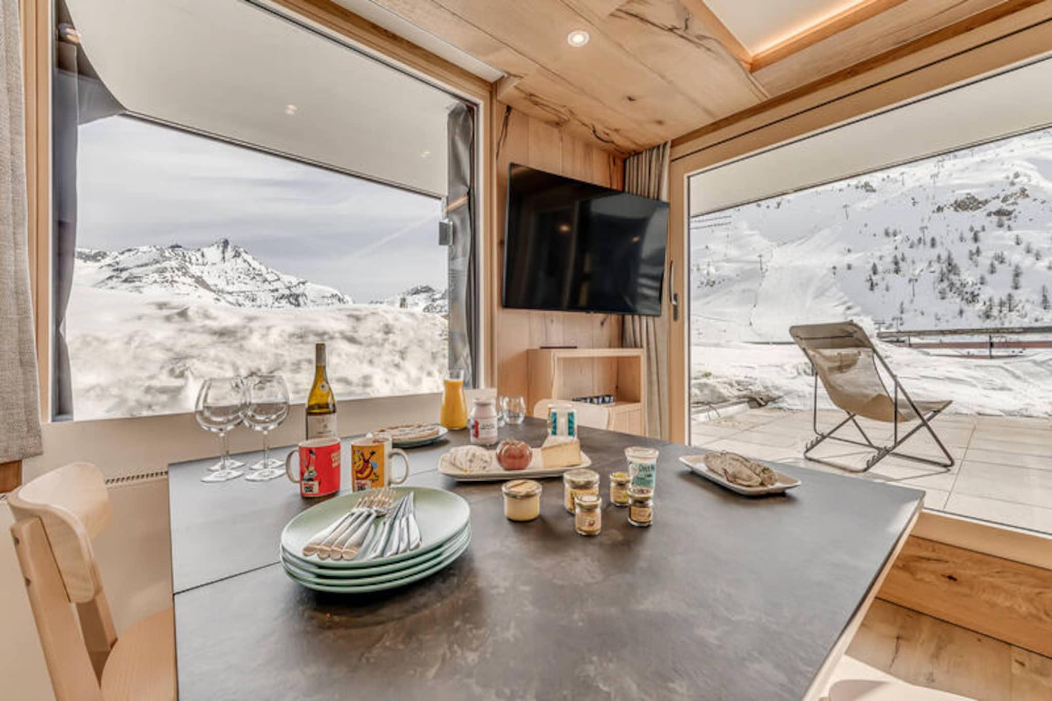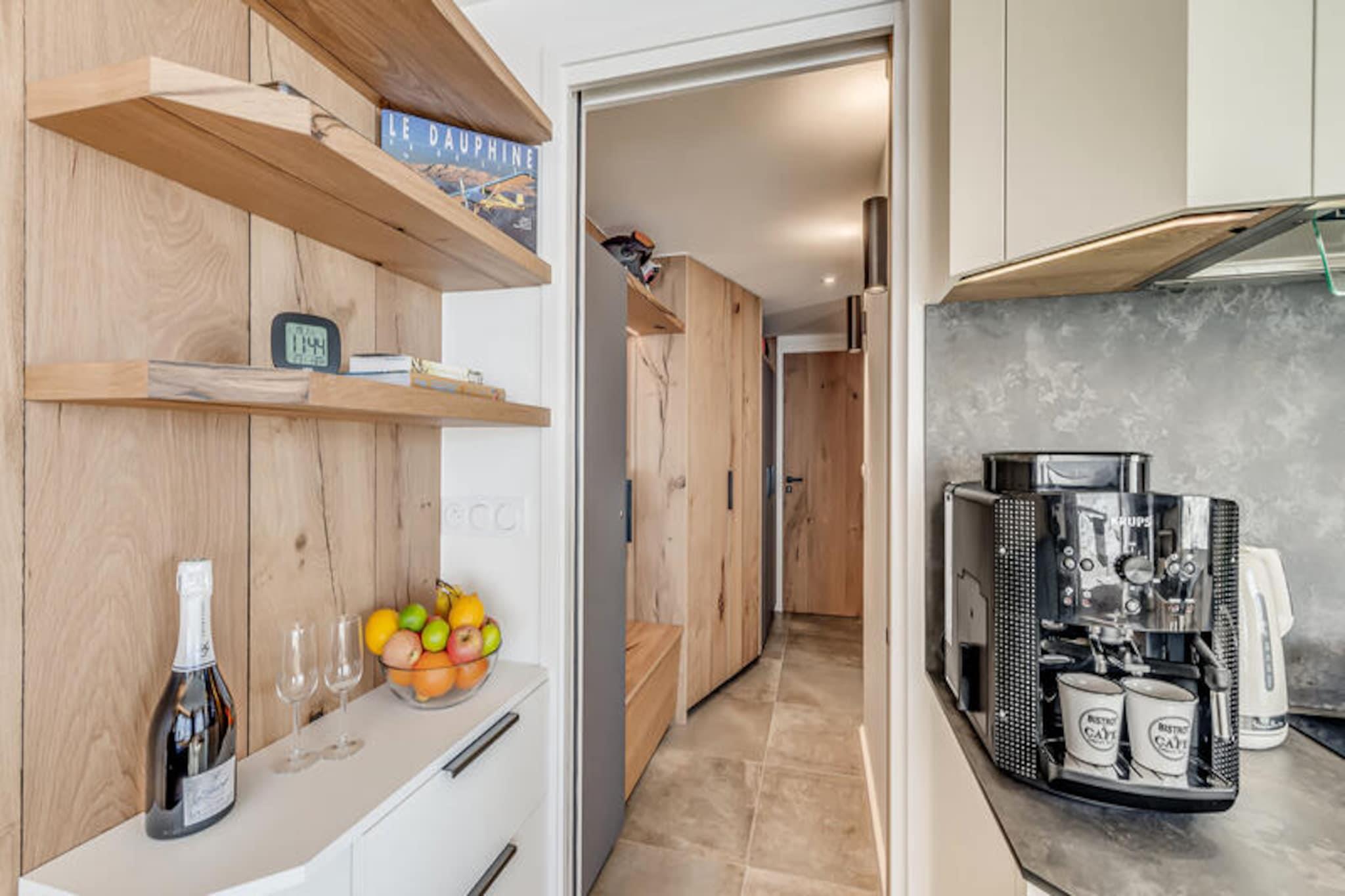 Högt ovanför Tignes Le Lacs skimrande vatten erbjuder denna vackert renoverade studiolägenhet en förstklassig alpin tillflyktsort med ski-in/ski-out-bekvämlighet. Belägen i den ikoniska Residence LE PALAFOUR, har gästerna ett perfekt läge för att utforska Tignes och Val d'Isères backar i världsklass, samtidigt som de njuter av det pulserande hjärtat av orten på 2 100 meters höjd. Oavsett om du blickar ut över den fridfulla sjön eller den majestätiska Grande Sassière från din soliga terrass, är detta en plats där bergsdrömmar kommer till liv. Studion, som totalrenoverades 2023, kombinerar modern elegans med genomtänkt funktionalitet. Vardagsrummet i söderläge är en mysig oas med en bekväm bäddsoffa, en elegant matplats och ett fullt utrustat kök med toppmoderna apparater, inklusive en kaffemaskin för dina morgonritualer. En separat dubbelhytt med våningssängar garanterar vilsamma nätter, medan det eleganta badrummet, komplett med handdukstork och tvättmaskin, ger en touch av lyx. Ytterligare bekvämligheter som ett privat skidskåp, elektrisk pjäxtork och höghastighets-Wi-Fi gör denna studio lika praktisk som den är inbjudande. Kliv ut, och du är bara 50 meter från vattenparken LE LAGON och 100 meter från sport- och kulturkomplexet TIGNESPACE. Själva residenset ståtar med ett köpcentrum med skidbutiker, ett bageri, restauranger och barer, vilket säkerställer att allt du behöver finns inom räckhåll. På vintern är backarna din lekplats, medan sommaren förvandlar regionen till ett paradis för vandrare, cyklister och naturentusiaster. Oavsett om du söker adrenalinfyllda äventyr eller fridfulla alpina stunder, är denna studio din port till oförglömliga minnen i de franska Alperna.