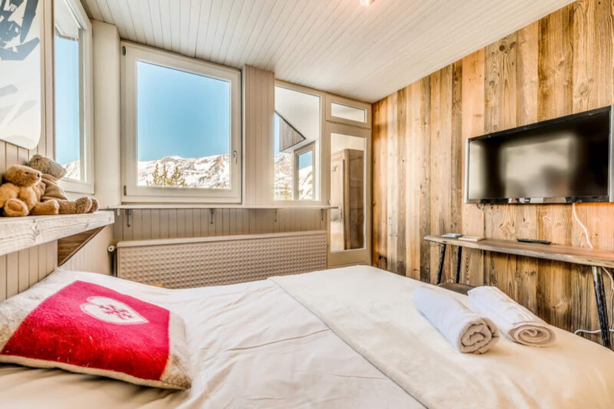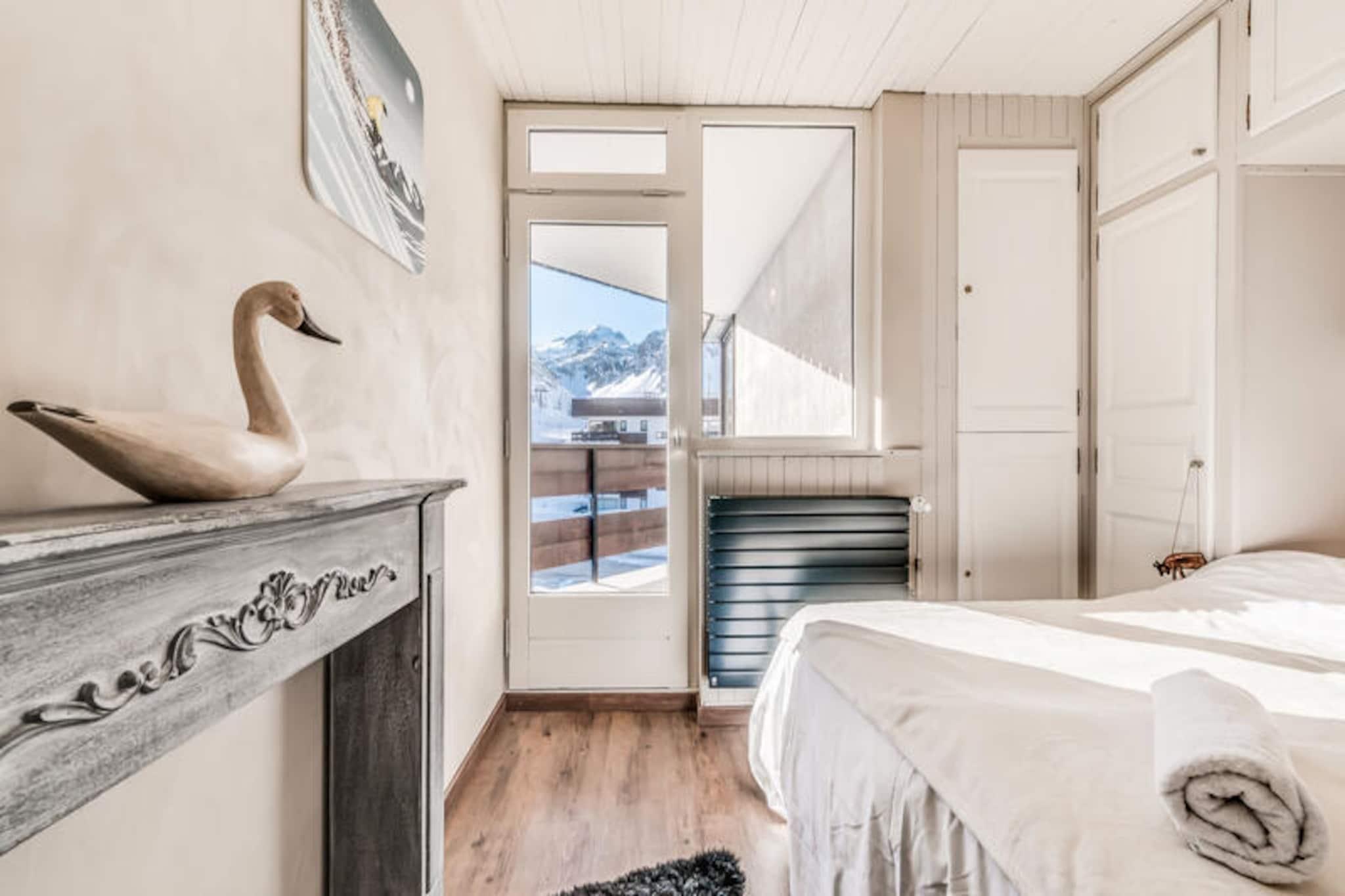 Högt ovanför de fridfulla sluttningarna av Tignes Le Lavachet inbjuder denna eleganta residens dig att uppleva charmen av ett alpint liv på 2 100 meters höjd. Badande i solljus från sina söder- och östervända burspråk erbjuder lägenheterna på Les Roches Rouges en hisnande utsikt över La Grande-Motte och La Grande Sassière, vilket skapar en lugn tillflyktsort som blandar elegans med naturens storslagenhet. Oavsett om du smuttar på kaffe på din privata balkong eller värmer dig vid vedspisen, känns varje ögonblick som en hyllning till bergen. \n\nDenna premiumlägenhet med 3 rum är 55 m² stor och är omsorgsfullt utformad för att rymma upp till sex gäster. Vardagsrummet har en bäddsoffa för två personer, platt-TV och en mysig matplats, medan köket med öppen planlösning är utrustat med moderna apparater inklusive keramikhäll, kylskåp, ugn, diskmaskin och mikrovågsugn. Två inbjudande sovrum – ett med dubbelsäng och det andra med två enkelsängar – garanterar vilsamma nätter, kompletterade av ett elegant badrum med badkar och ett extra duschrum. Med hotelltjänster som rena sängkläder, handdukar och slutstädning inkluderade blir din vistelse lika enkel som den är bekväm.\n\nResidenset ligger bara 20 meter från backarna och erbjuder oöverträffad tillgång till stolliftarna Chaudannes och Pâquis, vilket gör det till en drömdestination för skidentuella. En kort promenad på 150 meter leder till lokala butiker, inklusive en stormarknad, bageri och restauranger, medan anläggningens kostnadsfria transferservice förbinder dig med de pulserande naven Tignes-le-Lac och Tignes-Val Claret på några minuter. Oavsett om du utforskar pisterna eller njuter av den alpina atmosfären, är Les Roches Rouges din port till oförglömliga bergsäventyr.\n\nVälj denna exceptionella anläggning för dess blandning av komfort, bekvämlighet och fängslande utsikt, och låt Tignes magi skapa minnen som varar livet ut.