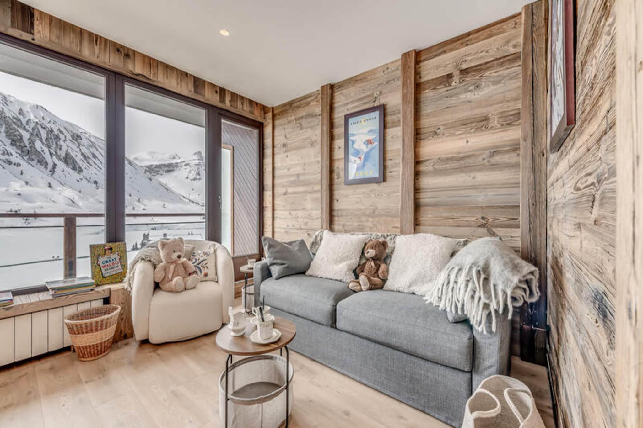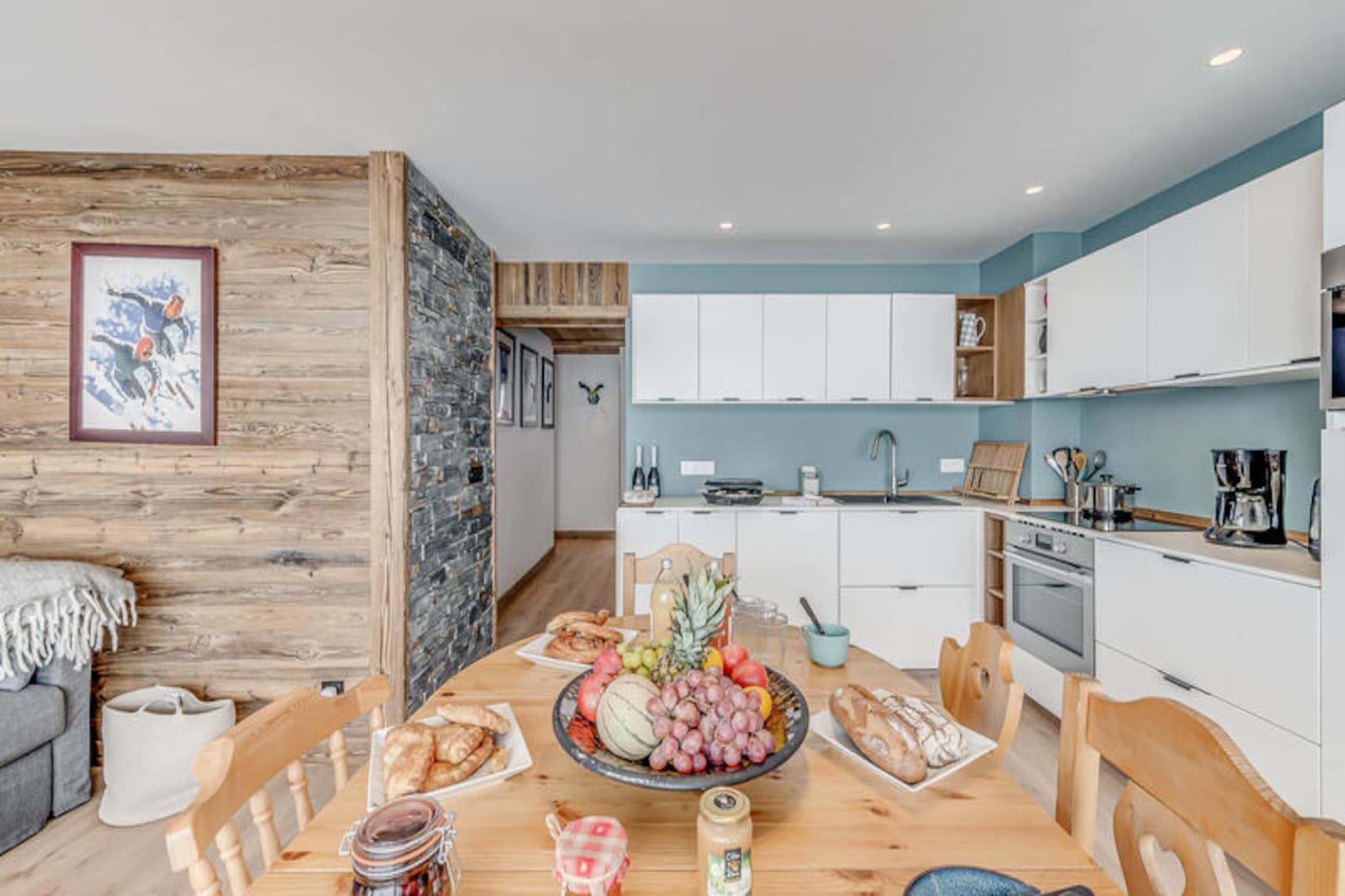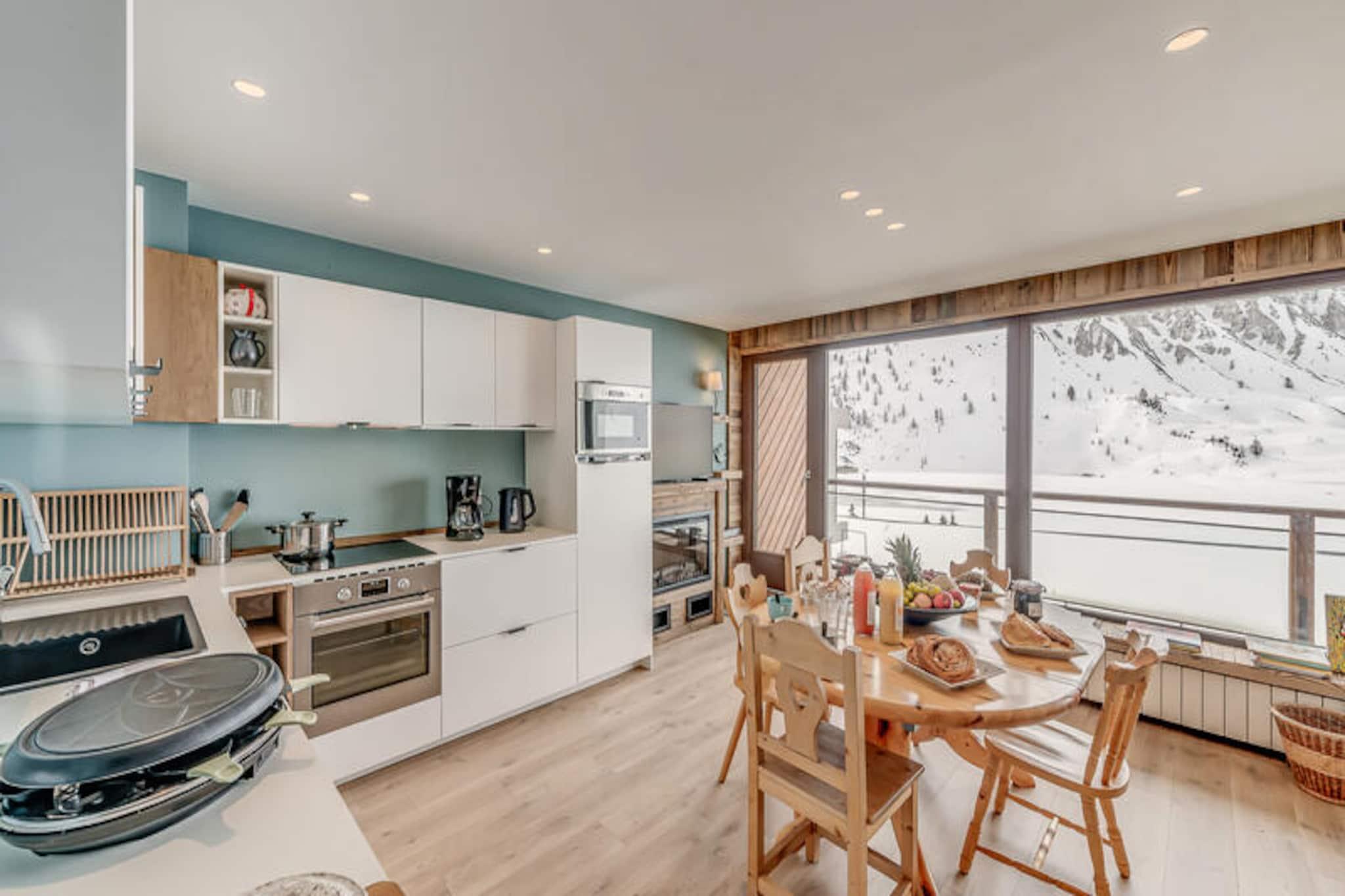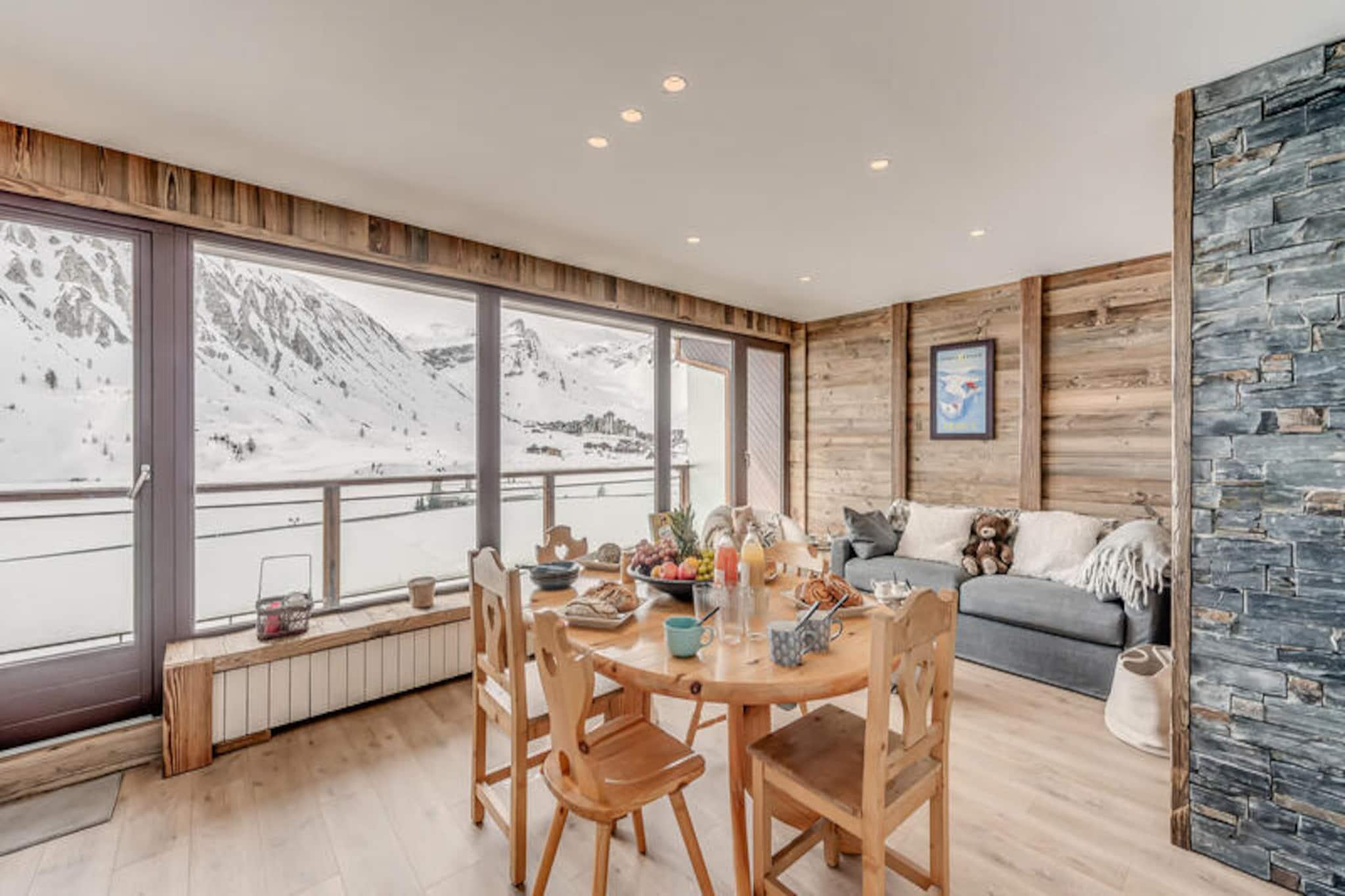 Högt ovanför Tignesjöns skimrande vatten erbjuder denna exceptionella lägenhet i LES CIMES-residenset en förstklassig alpin flykt på 2 100 meters höjd. Med hisnande utsikt över Grande Motte-glaciären och Toviere-massivet, inramas varje ögonblick här av de franska Alpernas majestät. Oavsett om du smuttar på kaffe på den söderläge balkongen eller förbereder dig för en dag i backarna, lovar denna residens en oförglömlig bergsupplevelse. Beläget på Rue de la Poste, bara några steg från skidskolor, sportbutiker, bagerier och livliga afterski-anläggningar, vilket garanterar bekvämlighet och charm i lika stor utsträckning. \n\nDen renoverade lägenheten på 60 m² rymmer upp till sex gäster med genomtänkt design och premiumbekvämligheter. Den norrläge master-sviten har en dubbelsäng, eget duschrum och egen toalett, medan det andra sovrummet erbjuder flexibla sovarrangemang med våningssängar, en nedfällbar väggsäng och gott om förvaring. Ett rymligt badrum med badkar och handfat ökar komforten, medan hallen erbjuder ytterligare förvaring. Vardagsrummet i söderläge är en mysig tillflyktsort med soffa, TV och fantastisk sjöutsikt. Det fullt utrustade köket, komplett med diskmaskin, tvättmaskin, ugn och matplats, inbjuder dig att laga rejäla måltider efter en dag av äventyr. \n\nStig ut och finn dig själv omgiven av den pulserande atmosfären i Tignes-Le-Lac. Från backarna till butikerna ligger allt inom gångavstånd, vilket gör det enkelt att utforska områdets berömda skid- och snowboardmöjligheter. På sommaren förvandlas regionen till en fristad för vandring, mountainbike och glaciärutforskning. Oavsett om du jagar puder eller njuter av alpint solsken, är detta boende din port till äventyr året runt. \n\nMed hotelltjänster inkluderade – såsom sängkläder, handdukar, toalettartiklar och slutstädning – kan du koppla av och fokusera på att skapa bestående minnen. Välj LES CIMES för en perfekt blandning av komfort, bekvämlighet och imponerande landskap.