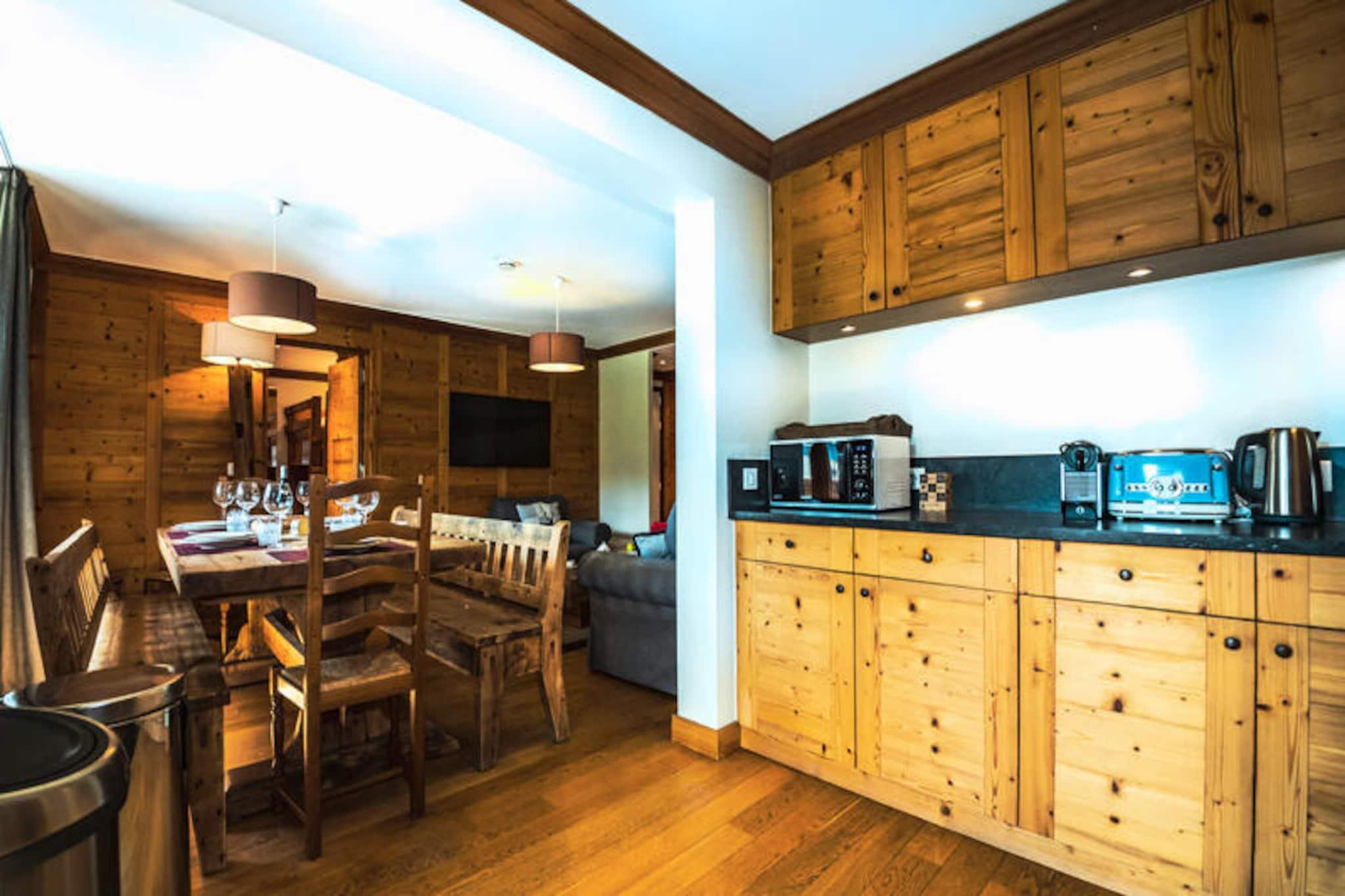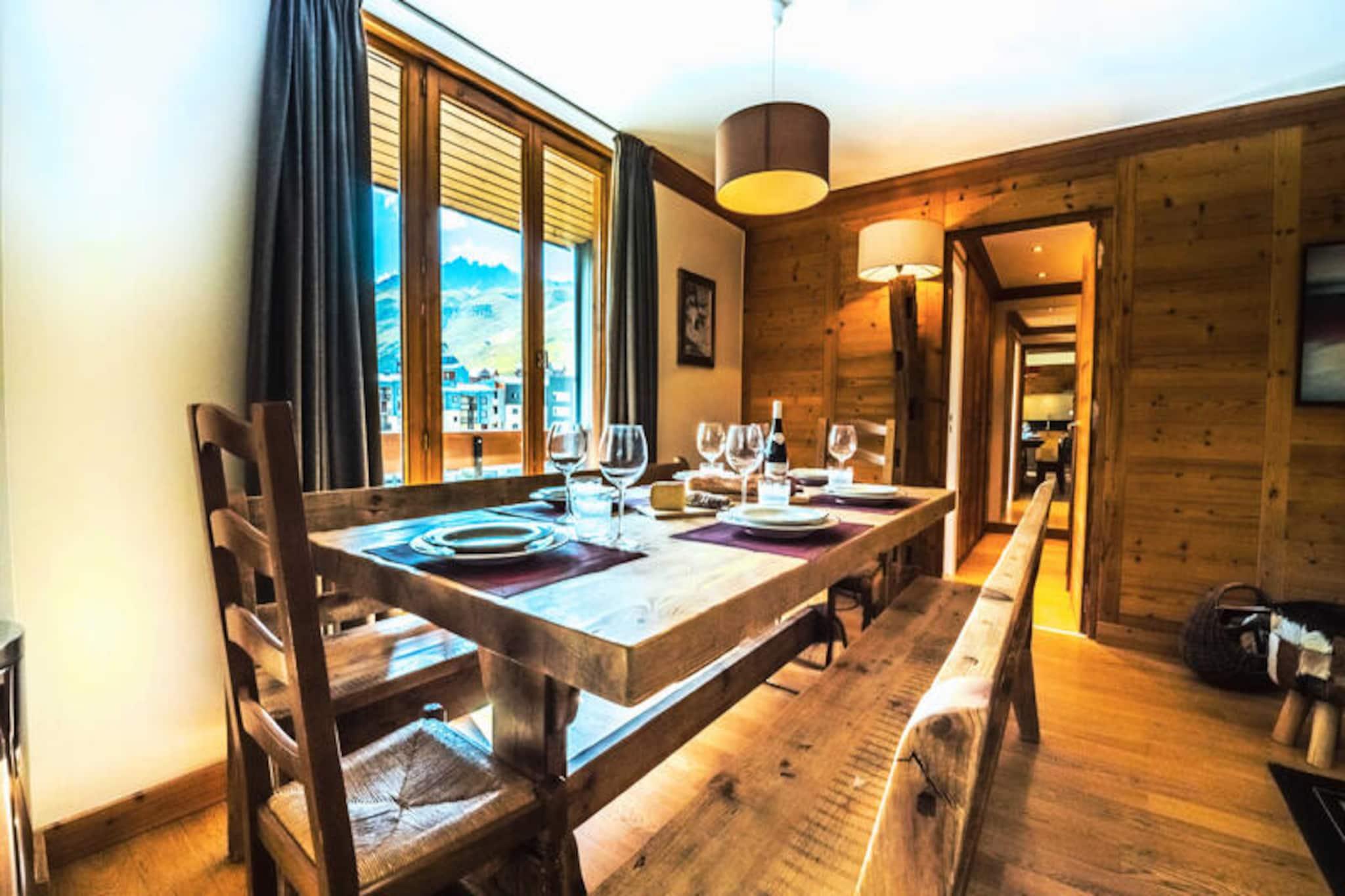 Högt ovanför den livliga alpbyn Tignes Le Lavachet, på en imponerande höjd av 2 100 meter, erbjuder denna fantastiska lägenhet en perfekt blandning av modern komfort och bergscharm. Tänk dig att vakna upp till den fridfulla skönheten hos snötäckta toppar, kliva ut på din balkong i söderläge för att njuta av den hisnande utsikten över backarna och känna den friska bergsluften väcka dina sinnen. Med direkt tillgång till ski-in/ski-out och bekvämligheten med den kostnadsfria Tignes-bussen som förbinder de tre distrikten, är detta en fristad för både vintersportentusiaster och naturälskare. \n\nDenna 4-rumslägenhet, som sträcker sig över en generös yta på 83 m², är omsorgsfullt utformad för att rymma upp till åtta gäster. Det öppna köket, fullt utrustat med moderna apparater, inbjuder dig att laga rejäla måltider efter en dag i backarna, medan det mysiga vardagsrummet med en mjuk soffa och TV ger det perfekta utrymmet att varva ner. Sovrummen är utformade för ultimat komfort, med en blandning av enkel-, dubbel- och våningssängar som passar familjer eller grupper av vänner. Två badrum, inklusive en duschkabin, garanterar bekvämlighet för alla, och den extra bonusen med en tvättmaskin och gott om förvaringsutrymme gör längre vistelser enkla. \n\nStig ut och befinn dig direkt vid backarna, med skidliftar som avgår från byggnaden och ansluter till stolliftarna Chaudanne och Paquis. På vintern kan du njuta av lyxen av bäddade sängar, handdukar och slutstädning som ingår för vistelser på sex nätter eller mer. Under sommaren låser My Tignes-kortet upp en värld av aktiviteter, från vandring och mountainbike till vattensporter och paragliding, vilket garanterar äventyr året runt. \n\nOavsett om du är här för att karva genom orörd snö, utforska det livliga alpina landskapet eller bara koppla av i en lugn bergsresort, erbjuder denna lägenhet en oförglömlig flykt. Med sitt utmärkta läge, lyxiga bekvämligheter och fantastiska utsikt är det den perfekta basen för ditt Tignes-äventyr.