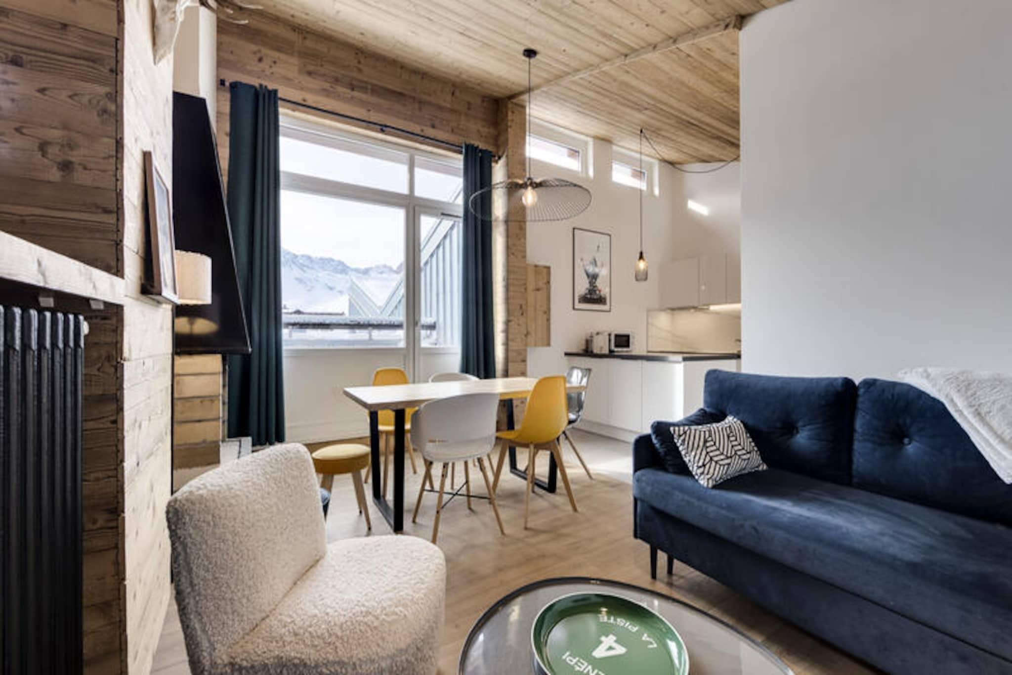 Högt ovanför de skimrande topparna i de franska Alperna erbjuder denna charmiga lägenhet i Tignes le Lavachet en perfekt blandning av komfort och bekvämlighet för din alpina resa. Tänk dig att vakna upp till den friska bergsluften och kliva ut på din balkong i söderläge för att njuta av den hisnande utsikten. Oavsett om du är här för att vandra genom orörda backar eller utforska de livliga sommarlederna, placerar denna residens dig i hjärtat av allt. Med direkt tillgång till ski-in/ski-out bara 20 meter bort börjar dina äventyr i det ögonblick du kliver ut. Den kostnadsfria transferservicen till Tignes säkerställer sömlösa förbindelser till de tre distrikten, vilket gör det enkelt att utforska områdets många attraktioner. \n\nDenna helrenoverade lägenhet på 50 m² är omsorgsfullt utformad för att rymma upp till sex gäster. Det moderna köket, komplett med induktionshäll, ugn, mikrovågsugn, kylskåp och diskmaskin, inbjuder dig att laga rejäla måltider efter en dag av utforskande. Koppla av i det mysiga vardagsrummet med en smart-TV, en bekväm soffa och direkt tillgång till balkongen. Två inbjudande sovrum erbjuder vilsamma avkopplingar, inklusive ett med dubbelsäng och garderob, och ett annat med dubbelsäng, våningssängar och gott om förvaring. Lägenheten har också ett elegant duschrum med handdukstork och en separat toalett för extra bekvämlighet. Wi-Fi ingår, och ett skidförvaringsskåp på bottenvåningen säkerställer att din utrustning alltid är redo för nästa äventyr. \n\nBeläget nära butiker och backar, är detta boende perfekt för både vinter- och sommarvistelser. På vintern kan du njuta av förmånliga priser på liftkort för Tignes och Val d'Isère, medan sommaren ger dig My Tignes-kortet, vilket ger tillgång till en mängd aktiviteter från mountainbike till paddleboarding. Med reglerad parkering tillgänglig och möjlighet att reservera din plats blir din vistelse problemfri. Oavsett om du söker spännande nedfarter eller fridfulla alpina stunder, är denna lägenhet din port till oförglömliga minnen i hjärtat av Tignes.