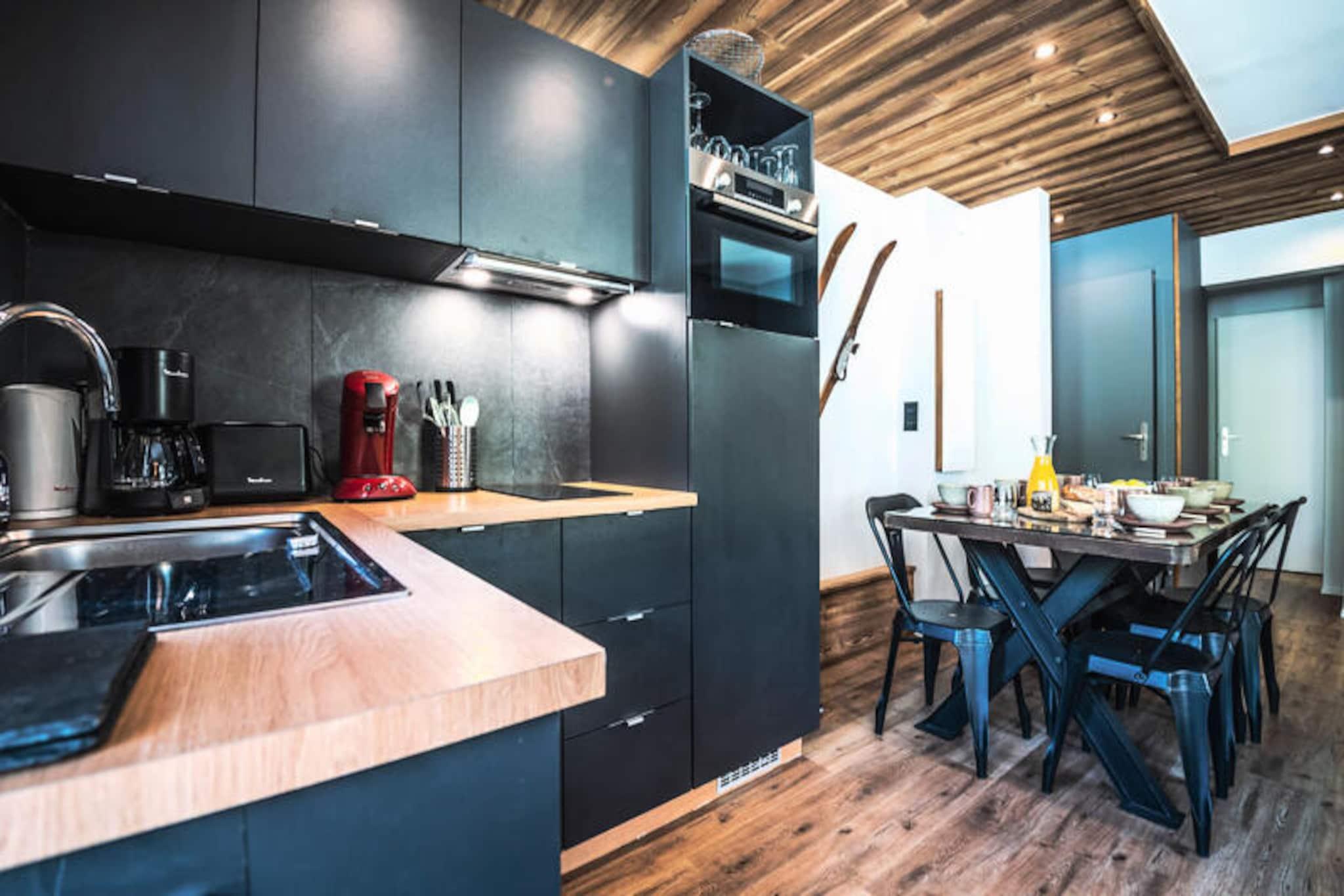 Högt ovanför den pulserande byn Tignes Val Claret erbjuder denna charmiga alpina oas en oöverträffad ski-in/ski-out-upplevelse, mitt i de franska Alperna. Med bergbanan till Grande-Motte-glaciären bara några steg bort väntar äventyret på en höjd av 3 050 meter, där hisnande vyer och orörda backar utlovar oförglömliga stunder. Oavsett om du är här för att åka genom färskt pudersnö eller njuta av den livliga afterski-atmosfären, är denna bostad din port till allt. Inuti är den 46 m² stora lägenheten noggrant utformad för att rymma upp till sex gäster. Den öppna planlösningen, komplett med en mysig soffa och TV, inbjuder dig att varva ner efter en dag i backarna. Ett fullt utrustat kök med keramikhäll, ugn, mikrovågsugn och diskmaskin säkerställer att du har allt som behövs för att laga rejäla alpina måltider. Två bekväma dubbelrum och en stuga med våningssängar ger vilsamma avkopplingar, medan moderna bekvämligheter som tvättmaskin/torktumlare och pjäxtork gör din vistelse ännu bekvämare. Balkongen i sydostläge erbjuder en lugn plats att njuta av ditt morgonkaffe medan du njuter av utsikten över bergen. Rond Point des Pistes B har ett perfekt läge med butiker, skiduthyrning och restauranger precis utanför dörren. På vintern kan du njuta av bekvämligheten av att ha skidskolor och afterski-anläggningar inom gångavstånd. Under sommaren låser My Tignes-kortet upp en värld av aktiviteter, från vandring och mountainbike till vattensporter på sjön. Oavsett om du söker spännande vintersporter eller sommaräventyr kombinerar denna lägenhet komfort, bekvämlighet och tillgång till det bästa av Tignes. Skapa bestående minnen i denna fantastiska alpina oas.