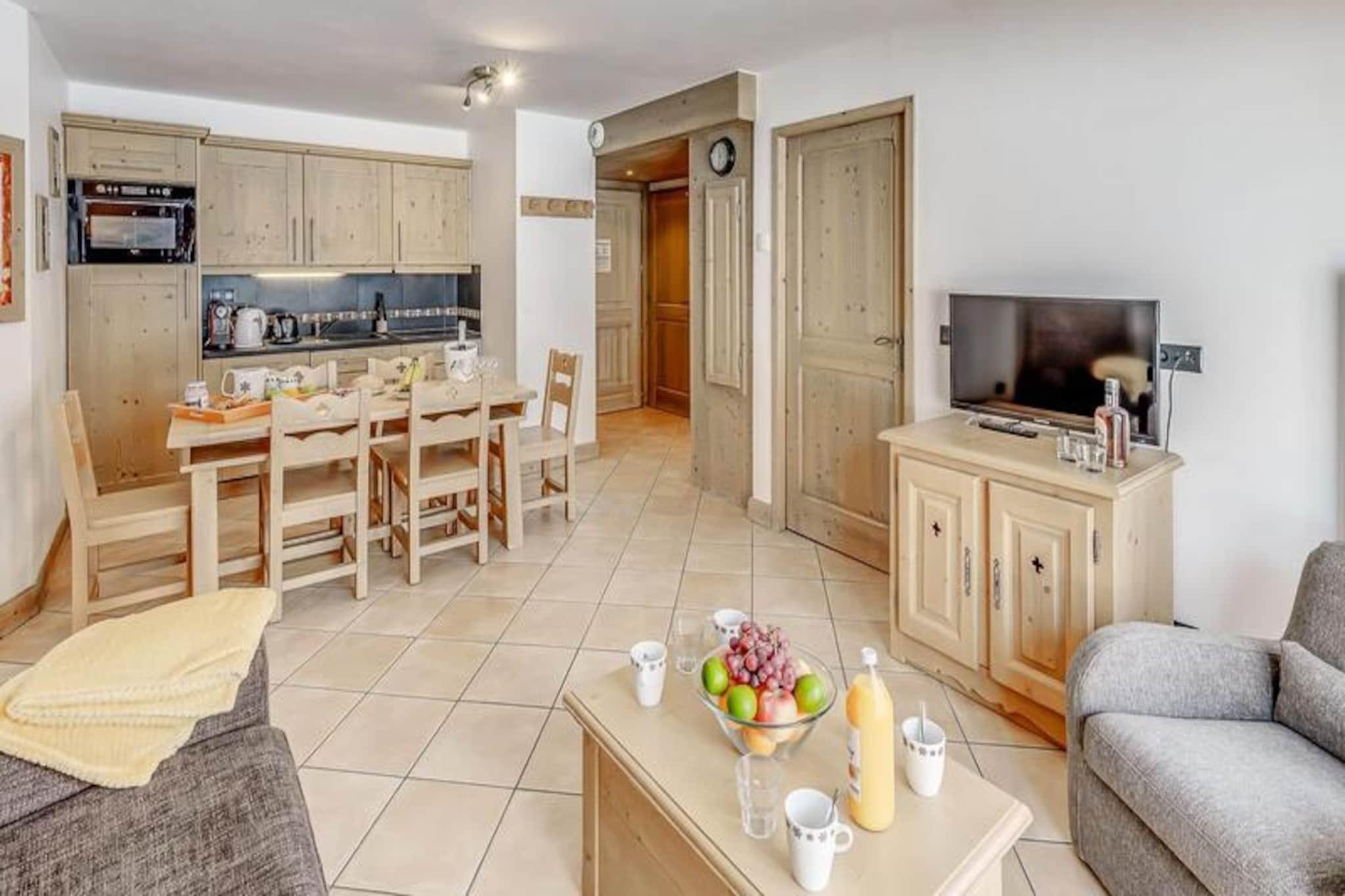 Belägen mitt i det lugna Almes-distriktet i Tignes, erbjuder denna premiumlägenhet en harmonisk blandning av alpin charm och modern bekvämlighet. Bara 50 meter från skidliftarnas avgångspunkt och inom gångavstånd från Chaudannes och Pèquis sittliftar, är det en drömläge för vintersportsentusiaster. Det pulserande Tignes Le Lacs centrum, med sin franska skidskola, Maison de Tignes, butiker och allmän parkering, ligger bara 300 meter bort, vilket garanterar enkel tillgång till allt du behöver för en minnesvärd semester. Från din balkong i söderläge kan du njuta av den friska bergsluften och fantastisk utsikt över de omgivande topparna. Inuti är lägenheten noggrant utformad för att rymma upp till sex gäster på sin 50 m² stora planlösning. Master-sviten har en bekväm dubbelsäng, eget duschrum och handdukstork, medan det andra sovrummet har två enkelsängar och inbyggda garderober. Vardagsrummet, badande i naturligt ljus, har en mysig bäddsoffa för två, en TV och direkt tillgång till balkongen. Ett fullt utrustat kök med diskmaskin, ugn, spis och matplats gör att du enkelt kan laga och njuta av måltider. Ytterligare bekvämligheter inkluderar skidförvaring och parkeringsplats under jord, vilket gör din vistelse lika bekväm som den är bekväm. Även om lägenheten inte inkluderar tillgång till Spa at the Peaks eller andra hälsofaciliteter, placerar dess utmärkta läge dig bara några steg från backarna och den livliga atmosfären i Tignes Le Lac. Oavsett om du åker skidor nerför orörda spår eller utforskar den charmiga byn, lovar varje ögonblick äventyr och avkoppling. Med inkluderade hotelltjänster som sängkläder, handdukar och slutstädning är denna residens den perfekta basen för din alpina resa. Boka nu och skapa oförglömliga minnen i hjärtat av de franska Alperna.
