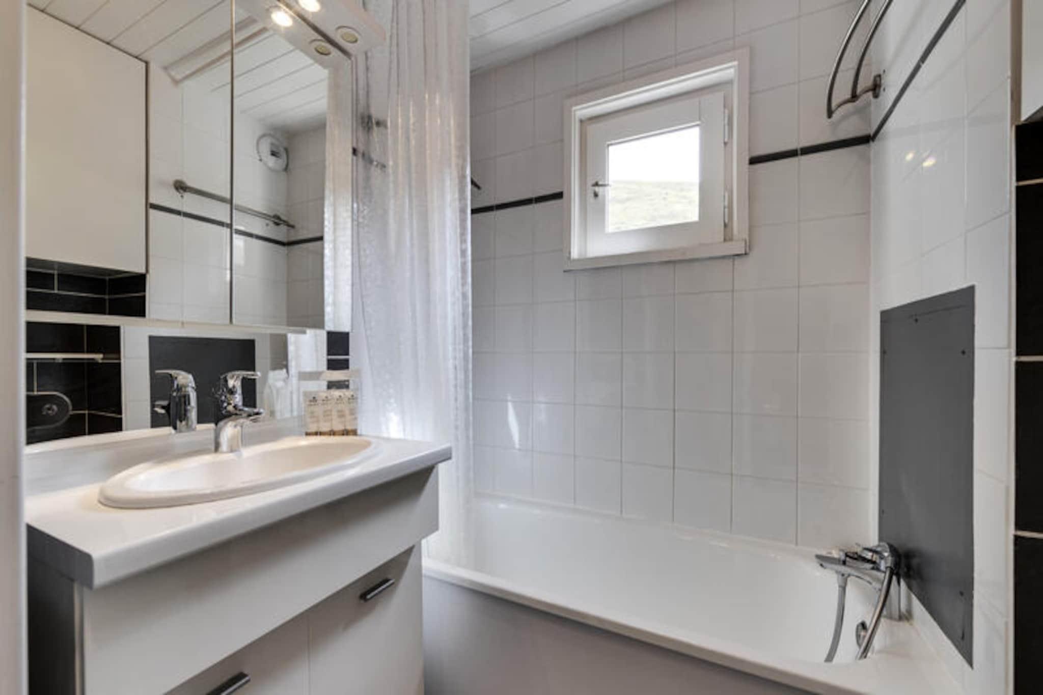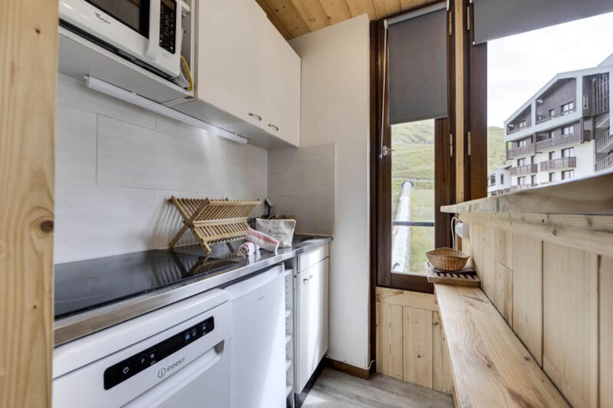 I det pulserande hjärtat av Tignes Val Claret erbjuder denna charmiga alpina oas en oslagbar ski-in/ski-out-upplevelse direkt till Tufs-liften. Tänk dig att kliva ut genom dörren och ut på de orörda backarna, omgivna av de majestätiska topparna i de franska Alperna. Den mysiga atmosfären i denna lägenhet på bottenvåningen, i kombination med dess utmärkta läge, gör den till ett idealiskt val för familjer eller små grupper som söker både äventyr och avkoppling i en av Europas främsta skiddestinationer. \n\nInuti är den 37 m² stora lägenheten noggrant utformad för att rymma upp till fyra gäster. Vardagsrummet med öppen planlösning har ett fullt utrustat kök och ett bekvämt vardagsrum med TV, vilket leder till en privat balkong där du kan varva ner och njuta av den friska bergsluften. Sovrummet har en dubbelsäng och en våningssäng, perfekt för familjer med barn eller nära vänner. Moderna bekvämligheter, inklusive Wi-Fi, rena sängkläder och bäddade sängar vid ankomst, garanterar en problemfri vistelse. Badrummet är utrustat med allt du behöver, och slutstädning ingår för din bekvämlighet.\n\nNär du går ut befinner du dig mitt i Val Clarets livliga atmosfär, med butiker, restauranger, skidskolor och barnskidområden bara en kort promenad bort. Återvinningsanläggningar finns bekvämt belägna vid foten av byggnaden, och parkering för avlastning av bagage finns i närheten. För längre parkering rekommenderar vi Golf-parkeringen. Oavsett om du är här för att åka genom puderiga backar eller utforska den pulserande afterski-scenen, placerar denna bostad dig i centrum av allt.\n\nMed sitt oslagbara läge, mysiga bekvämligheter och smidiga tillgång till backarna är denna lägenhet din port till en oförglömlig alpin flykt. Oavsett om det är ditt första besök i Tignes eller en återkomst till din favoritvinterparadis, lovar denna fastighet minnen att vårda i många år framöver.