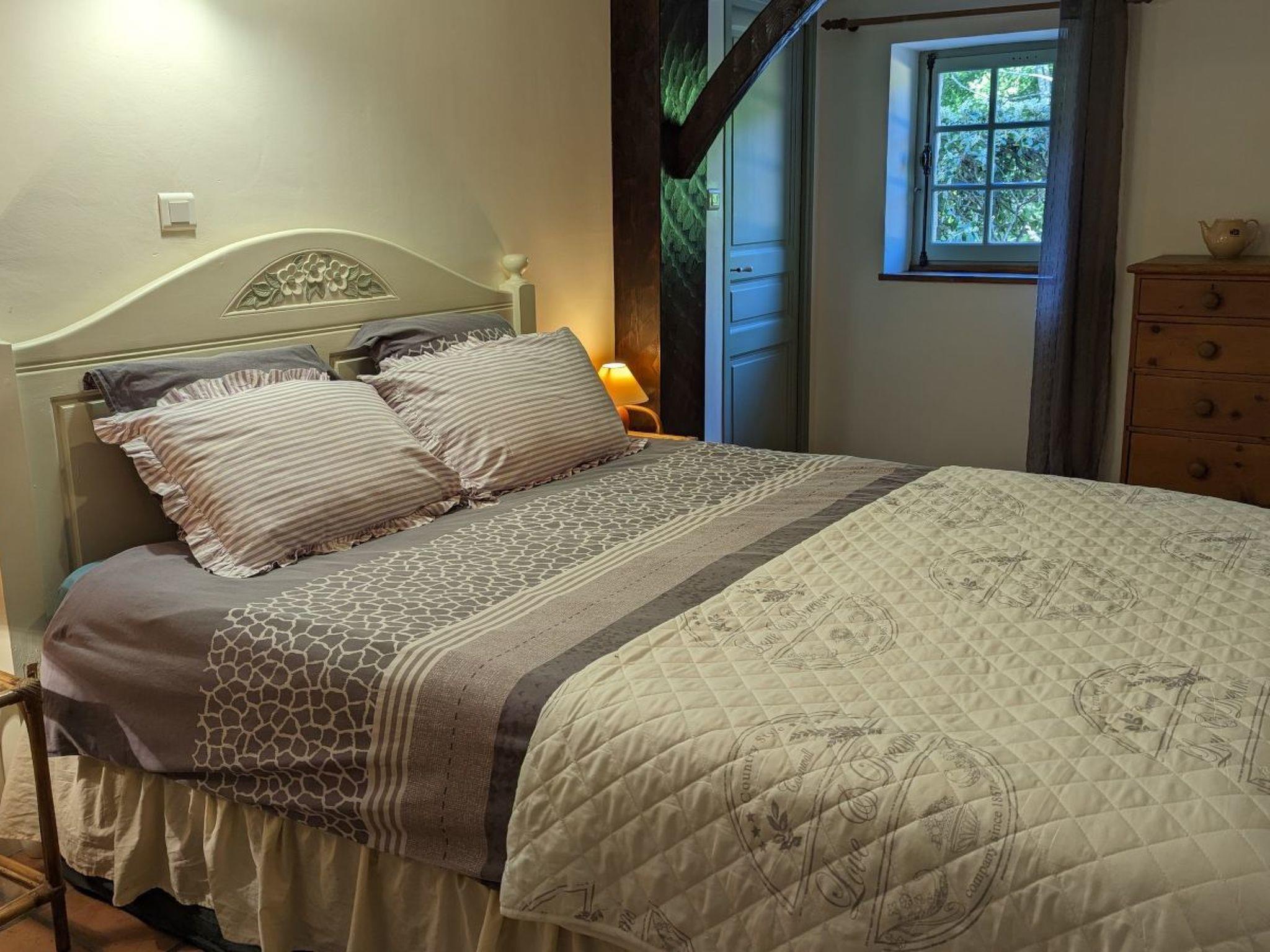 Bedroom 1: Double bed (160-200 cm), view of the private pond, adjoining bathroom with bathtub, double sink and WC.Bedroom 2: Twin beds (2x 90-190 cm), view of the private pond.Bed linen and towels provided (1 set per person), beds made on arrival.Baby bed (umbrella) and high chair available