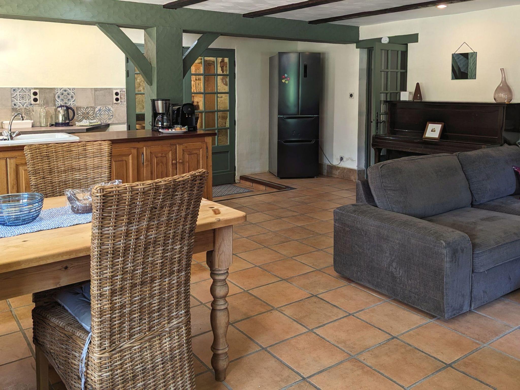 The Cottage Bungalow, built as an extension of the main house (the oldest parts of which date back to 1653), offers private access and a terrace with a view of the pond. This rental, designed later, respects the old style with its exposed stones and was restyled in 2023.