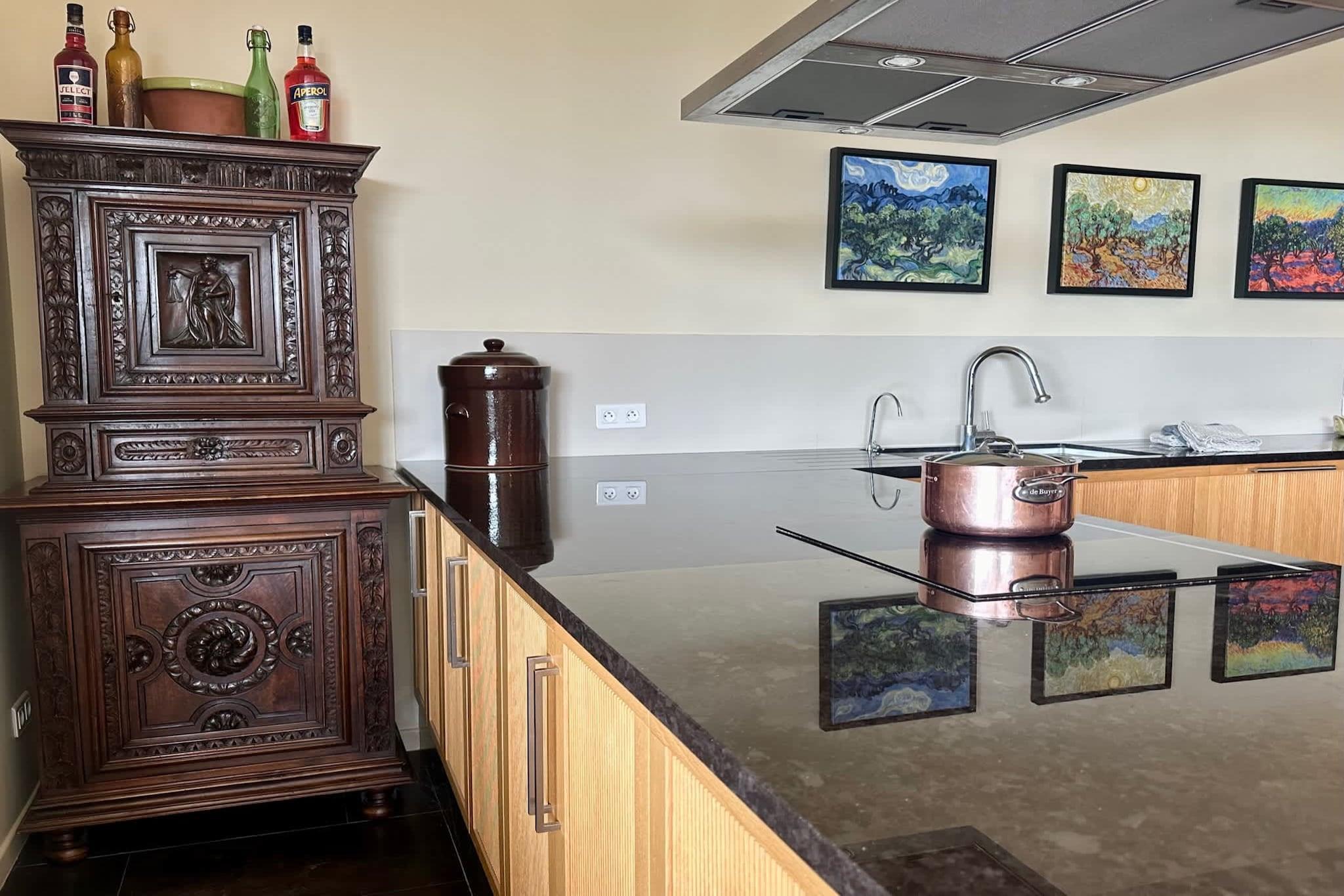 L’Olivette ligger undangömt bara 1,5 km från hjärtat av Uzès och är en raffinerad landsbygdsflykt där Provences charm möter diskret lyx. Belägen på nästan 2 700 m² anlagd tomt, är denna villa med fem sovrum uppdelad i ett huvudhus och ett separat gästhus – perfekt för storfamiljer eller grupper som söker både komfort och avskildhet. Huset är designat med naturlig kalksten, moderna interiörer och hantverksmässiga detaljer, och öppnar sig sömlöst mot en rymlig terrass och en frodig trädgård. Ett elegant vardagsrum med öppen spis, ett fullt utrustat öppet kök och eleganta sovrum med eget badrum och specialdesignade italienska sängkläder skapar en lugn och välkomnande atmosfär. I mitten av fastigheten ligger en lugn 10x4 meter stor salt- och klorpool, flankerad av solstolar och skuggiga hörn för avkopplande eftermiddagar. Utomhus sommarköket inbjuder gästerna att samlas och laga mat inspirerad av regionens berömda marknader. När kvällen faller glöder olivlunden under mjuka ljus och erbjuder den perfekta miljön för middagar utomhus eller ett lugnt glas vin. Med luftkonditionering i hela villan, omsorgsfullt utvalda möbler och en privat planlösning passar villan lika bra för lata dagar som för festliga sommarkvällar. Den historiska staden Uzès, känd för sina livliga marknader, hantverksbutiker och prisbelönta bagerier, ligger bara några minuter bort, medan ikoniska platser som Pont du Gard, Avignon och Nîmes ligger inom räckhåll. Oavsett om du utforskar vingårdsstigar, njuter av fin lokal mat eller bara njuter av komforten i din egen provensalska oas, erbjuder L'Olivette en tidlös tillflyktsort skapad för ett lugnt liv och meningsfulla stunder.