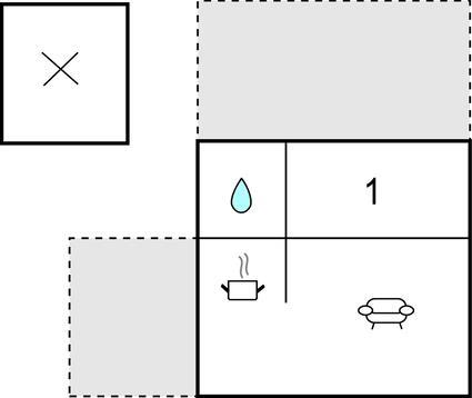 Badrum 5m2 (nr. 1) - WC: Varmt och kallt vatten. Dusch
