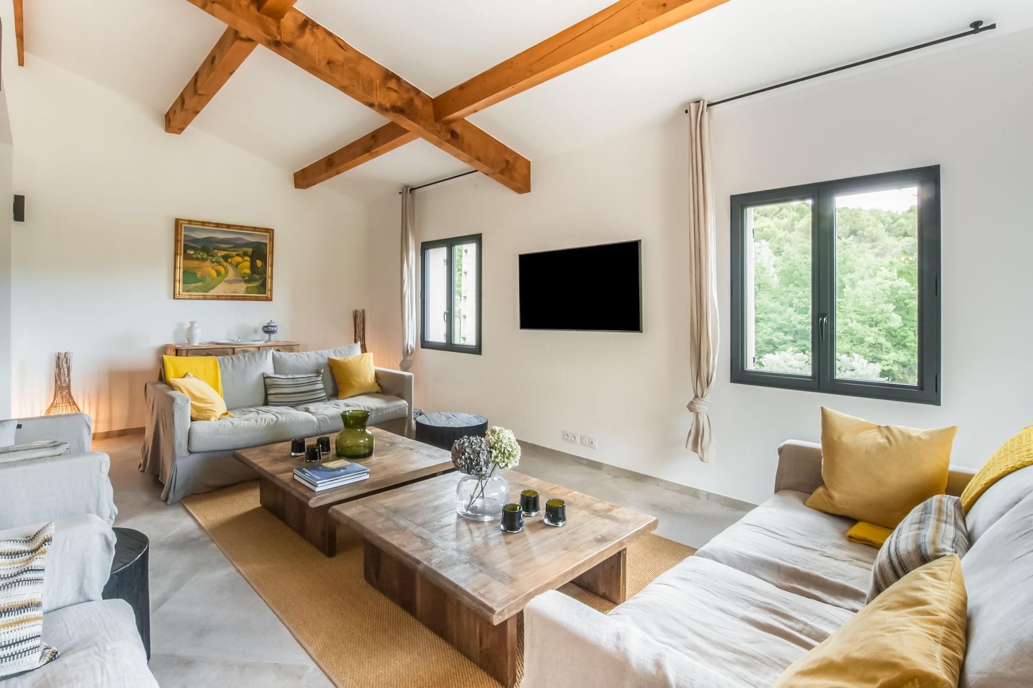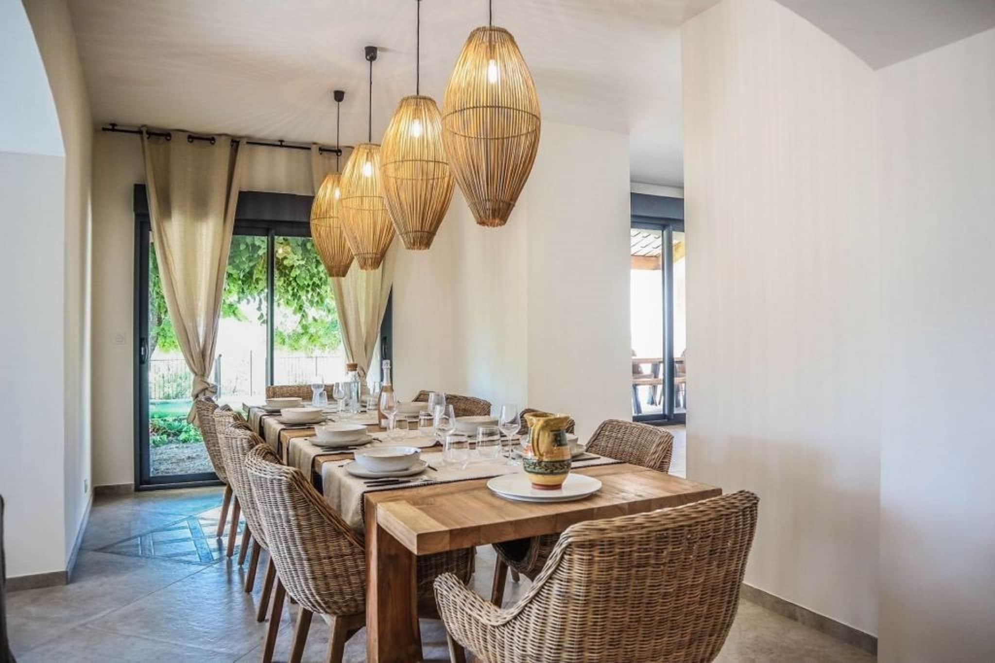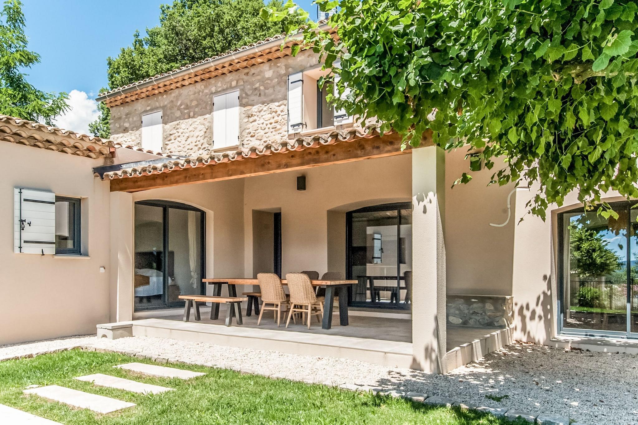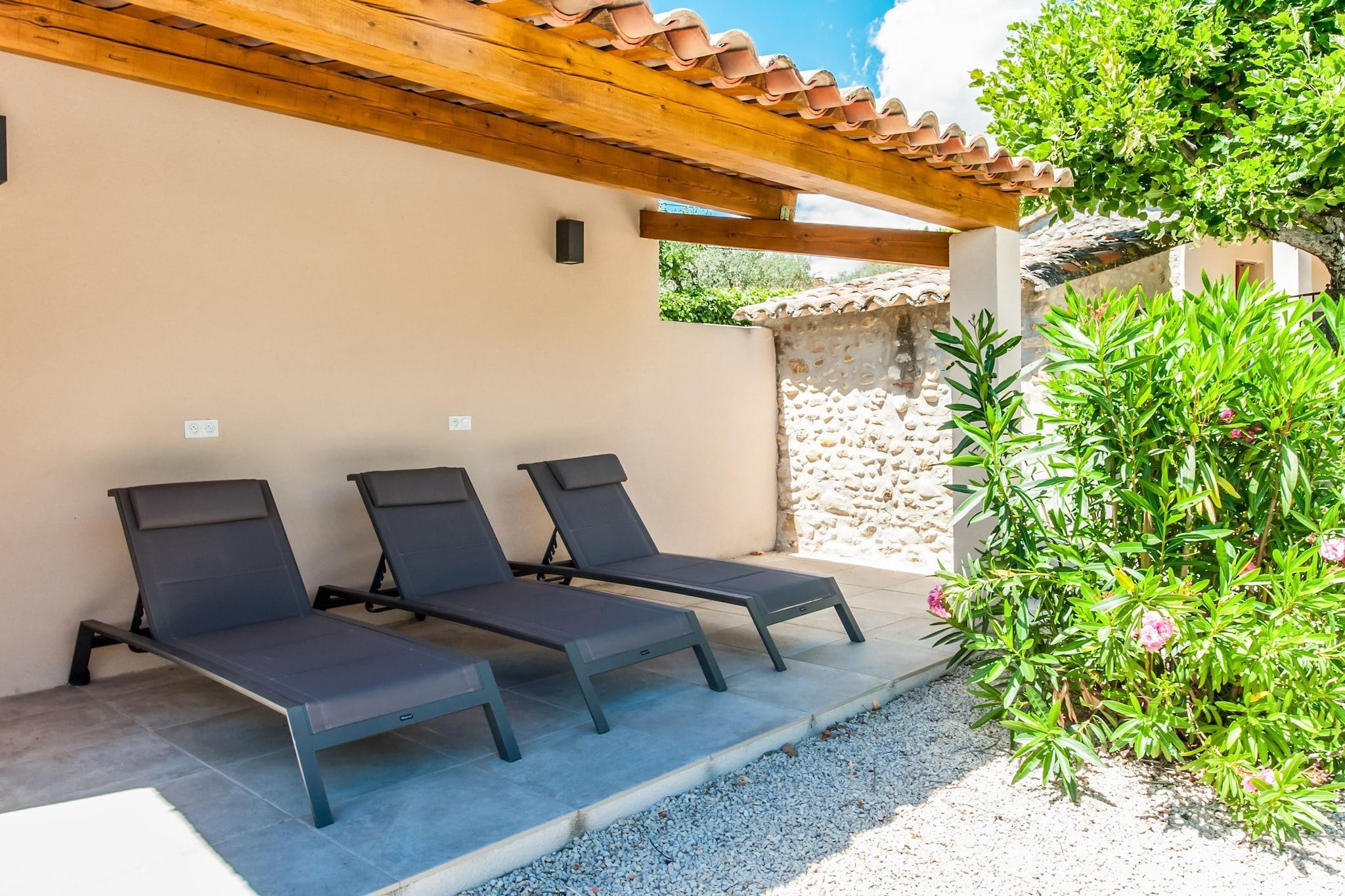 Detta vackert renoverade semesterhus ligger bara några minuter från den charmiga byn Vaison-la-Romaine. Designad för upp till 8 gäster och erbjuder 4 bekväma sovrum, inklusive en mastersvit på bottenvåningen med eget badrum. Det rymliga vardagsrummet, matsalen och det moderna köket öppnar alla direkt mot trädgården och terrassen. På övervåningen hittar du ytterligare 3 sovrum och 2 badrum, som erbjuder gott om plats för familjer eller grupper. Utanför kan du njuta av en uppvärmd infinitypool (öppen mitten av april till mitten av oktober), poolhus och stor terrass - perfekt för att koppla av i den provensalska solen. Hemmet blandar traditionell charm med modern komfort, och erbjuder en fridfull och elegant tillflyktsort. Lokala restauranger och stormarknader finns i närheten för din bekvämlighet. Oavsett om du slappar vid poolen, utforskar de närliggande romerska ruinerna eller njuter av ett glas vin under stjärnorna, är denna villa idealisk för en avkopplande semester i södra Frankrike.