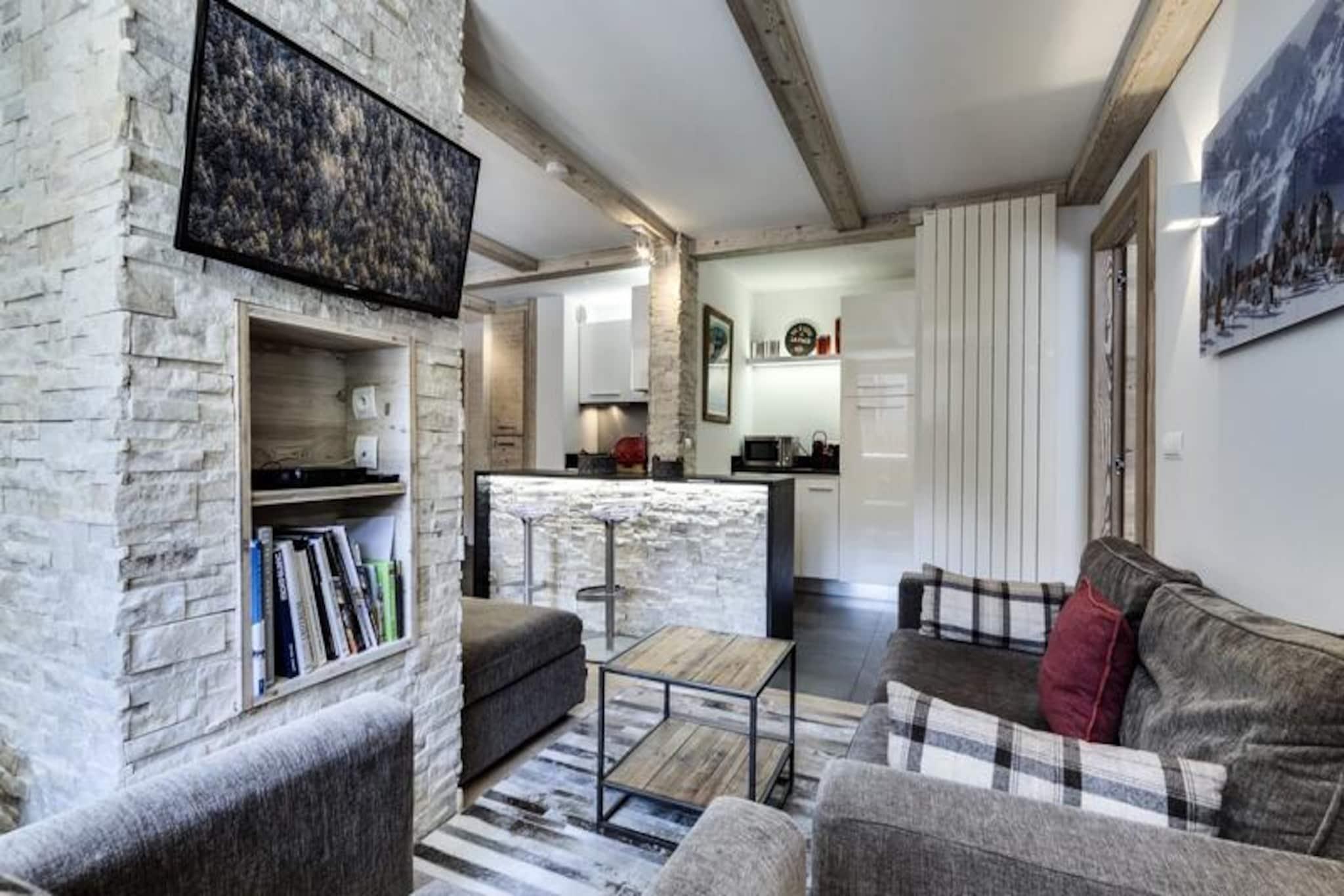 Mitt bland de hisnande topparna i Val d'Isère erbjuder denna lyxiga lägenhet en harmonisk blandning av alpin charm och modern sofistikering. Med sitt utmärkta läge i den prestigefyllda Val Village vaknar du upp till den friska bergsluften och fantastisk utsikt från din balkong i söderläge, redo att ge dig ut på en dag av äventyr eller avkoppling. Bostaden, utformad i traditionell savoyardstil med sten och trä, utstrålar värme och autenticitet, vilket gör den till den perfekta tillflyktsorten för din semester i de franska Alperna. \n\nInuti är lägenheten ett mästerverk av design och komfort. Nyligen renoverad med exklusiva material som italiensk marmor och designmöbler, har den två rymliga sovrum, två eleganta badrum och ett fullt utrustat kök med toppmoderna apparater, inklusive ugn, induktionshäll, diskmaskin, tvättmaskin/torktumlare och ett amerikanskt kylskåp. Vardagsrummet inbjuder dig att varva ner med sina mysiga sittplatser och platt-TV, medan skidförvaring och täckt parkering garanterar bekvämlighet för dina alpina äventyr. \n\nStig ut så befinner du dig bara några meter från skidbackarna, den franska skidskolan och en mängd olika butiker och restauranger. Oavsett om du hyr utrustning på INTERSPORT Front de Neige eller njuter av en livlig kväll på Le Doudoune Club, finns allt du behöver inom räckhåll. För middagar erbjuder La Corniche en smak av lokala smaker, vilket fulländar upplevelsen av Val d'Isères pulserande byliv. \n\nDenna lägenhet är inte bara ett ställe att bo på – det är en port till oförglömliga minnen. Med sin ski-in/ski-out-åtkomst, lyxiga bekvämligheter och oslagbara läge lovar den en semester fylld av komfort, äventyr och Alpernas tidlösa skönhet.