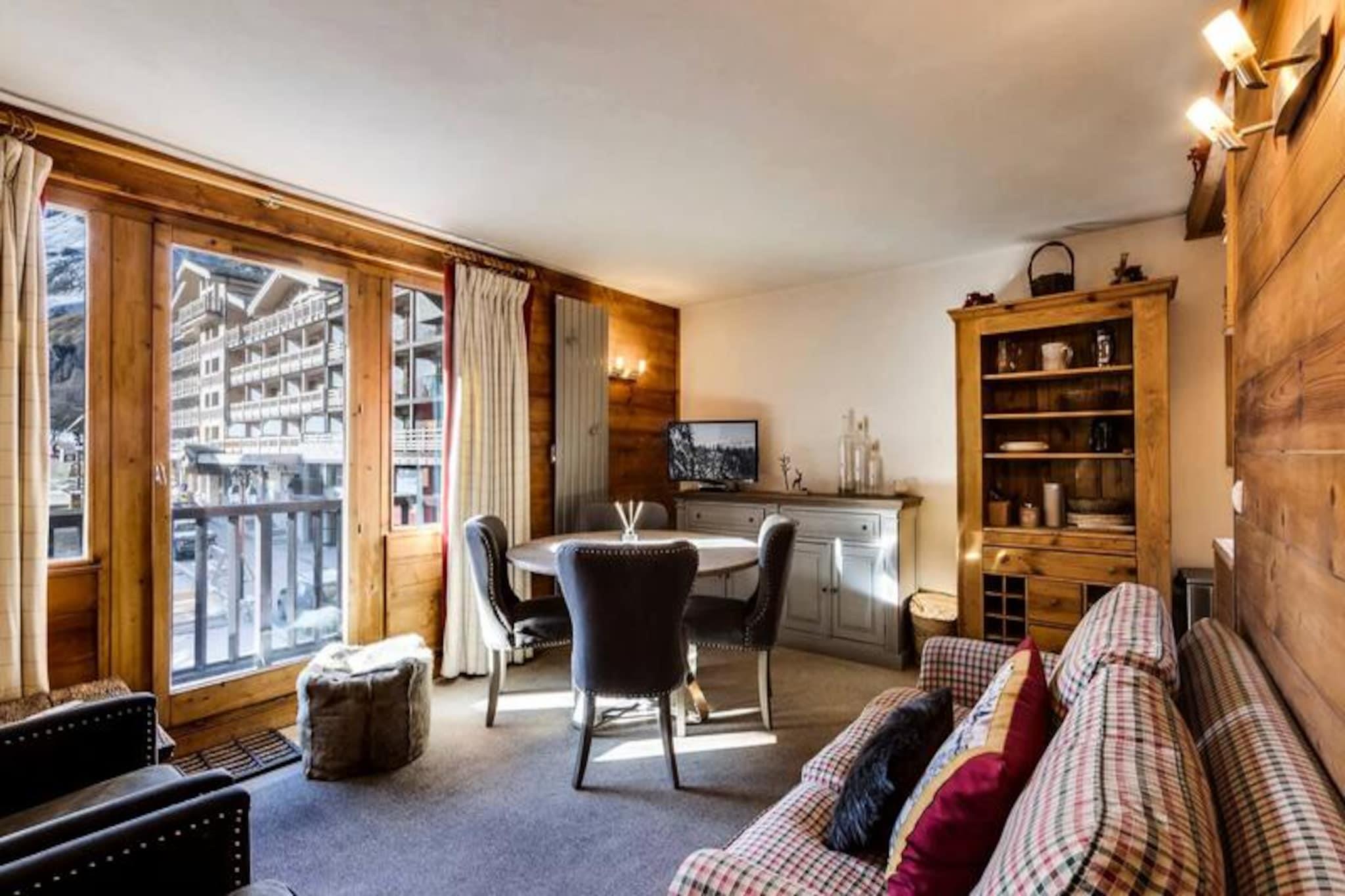 I hjärtat av Val d'Isère Village, där tradition möter alpin elegans, erbjuder denna charmiga lägenhet en oöverträffad tillflyktsort i bergen. Tänk dig att vakna upp till solen som lyser upp de snötäckta backarna, kliva ut på din balkong i söderläge för att andas in den friska bergsluften och veta att skidbackarna bara ligger några meter bort. De pittoreska omgivningarna, tillverkade av sten och trä i autentisk savoyardstil, skapar en varm och inbjudande atmosfär för din semester. \n\nDenna lägenhet på andra våningen i Saturne-residenset är designad för upp till fyra gäster och kombinerar komfort och praktiskhet. Vardagsrummet har en platt-TV, Wi-Fi och en mysig soffa, medan köket är utrustat med moderna apparater inklusive en kombinerad mikrovågsugn/ugn, keramikhäll, diskmaskin och tvättmaskin/torktumlare. Sovrummen inkluderar ett sovrum med dubbelsäng och ett sovrum med våningssängar, vilket garanterar vilsamma nätter efter dagar av äventyr. Ett badrum med badkar och handdukstork, tillsammans med en separat toalett, bidrar till bekvämligheten. Skidförvaringen och den täckta parkeringsplatsen gör din vistelse smidig och stressfri.\n\nVal d'Isère Village har direkt tillgång till backarna, butikerna och restaurangerna, vilket gör det till en idealisk bas för att utforska orten. Njut av afterski på Coin des Amis eller Le Doudoune Club, njut av lokala smaker på La Corniche eller dra nytta av specialpriser i INTERSPORT Front de Neige MATTIS-butiken för skiduthyrning. Den livliga atmosfären och närheten till viktiga faciliteter säkerställer att varje ögonblick är fyllt med spänning och avkoppling.\n\nOavsett om du är här för spännande skiddagar, mysiga kvällar eller bara för att njuta av den alpina charmen, erbjuder denna lägenhet den perfekta blandningen av komfort och läge. Låt magin i Val d'Isère Village skapa oförglömliga minnen för din bergssemester.