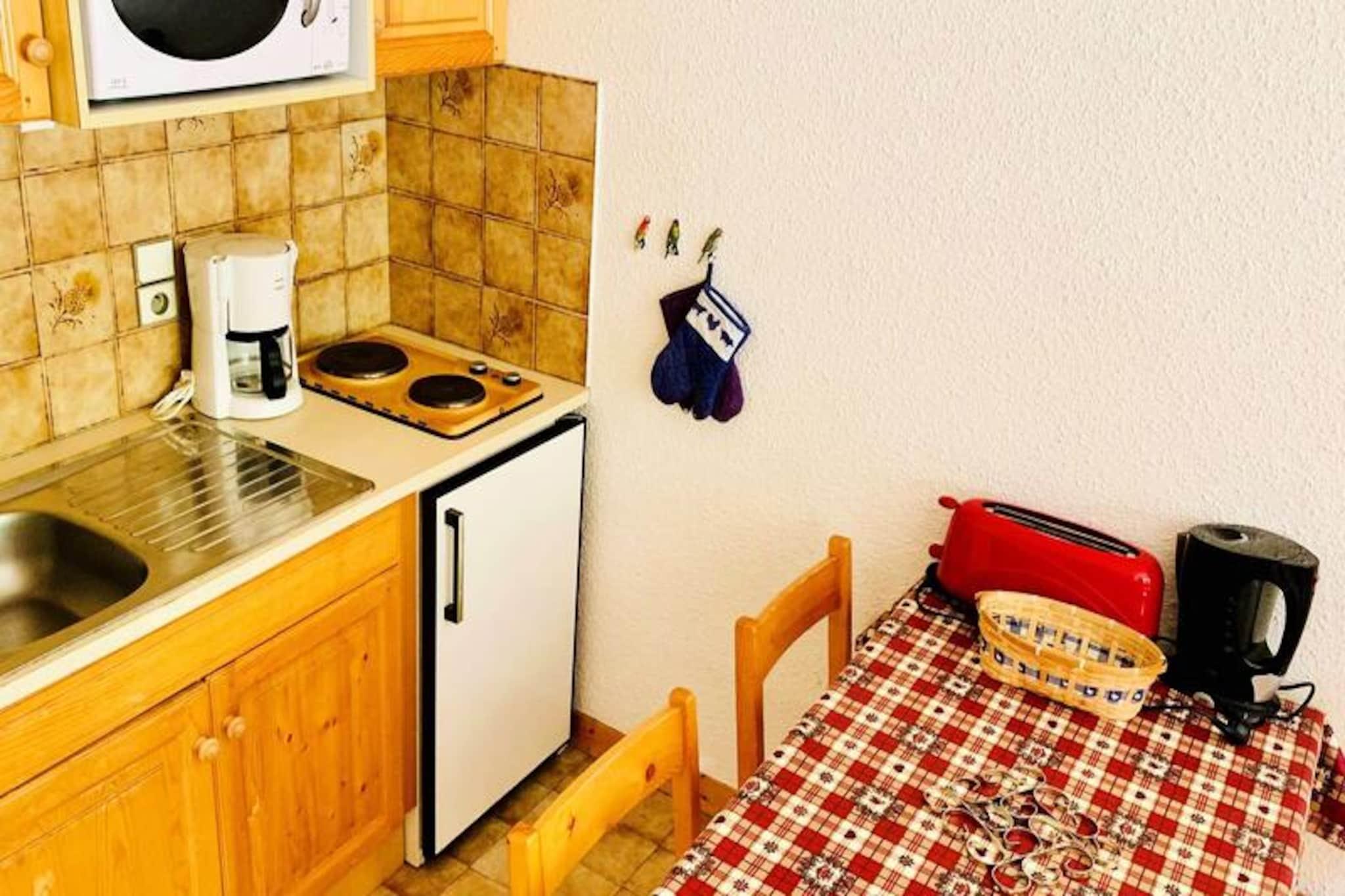 Mitt i den fridfulla charmen i Val d'Isères gamla by erbjuder denna härliga duplexlägenhet en mysig tillflyktsort för ditt nästa alpina äventyr. Med sin söderläge balkong med utsikt över den lugna Solaise-skogen vaknar du upp till en fantastisk utsikt och den friska bergsluften, vilket skapar den perfekta stämningen för en dag fylld av utforskning eller avkoppling. Bostaden, en charmig trevåningsbyggnad med traditionell fasad i trä och sten, ligger inbäddad bakom byns kyrka, vilket garanterar en lugn atmosfär samtidigt som den ligger bekvämt nära allt som händer. Denna 29 m² stora lägenhet är genomtänkt utformad för att rymma upp till fyra gäster, vilket gör den idealisk för par, små familjer eller nära vänner. Vardagsrummet har en enkelsäng och en utdragbar säng, medan det mysiga sovrummet på bottenvåningen, som nås via en spiraltrappa, har en bekväm dubbelsäng. Det fullt utrustade köket har elektriska kokplattor, mikrovågsugn och kylskåp, så att du kan laga rejäla måltider efter en dag i backen. En platt-TV och ett skidförråd bidrar till bekvämligheten och garanterar en bekväm och problemfri vistelse. Lägenheten ligger bara 350 meter från skidliften Le Solaise och 450 meter från den berömda skidskolan ESF, vilket ger enkel tillgång till Val d'Isères skidåkning i världsklass. För familjer ligger dagiset Petit Poucet bara 600 meter bort, tillsammans med en minilivs och en idrottsanläggning. Den närliggande busshållplatsen säkerställer smidiga förbindelser, och det livliga bycentrumet ligger inom gångavstånd och erbjuder en mängd butiker, restauranger och afterski-alternativ. Oavsett om du besöker orten på vintern för de orörda backarna eller på sommaren för att utforska de hisnande vandringslederna och den alpina skönheten, är denna charmiga duplexlägenhet din port till oförglömliga minnen i hjärtat av de franska Alperna.