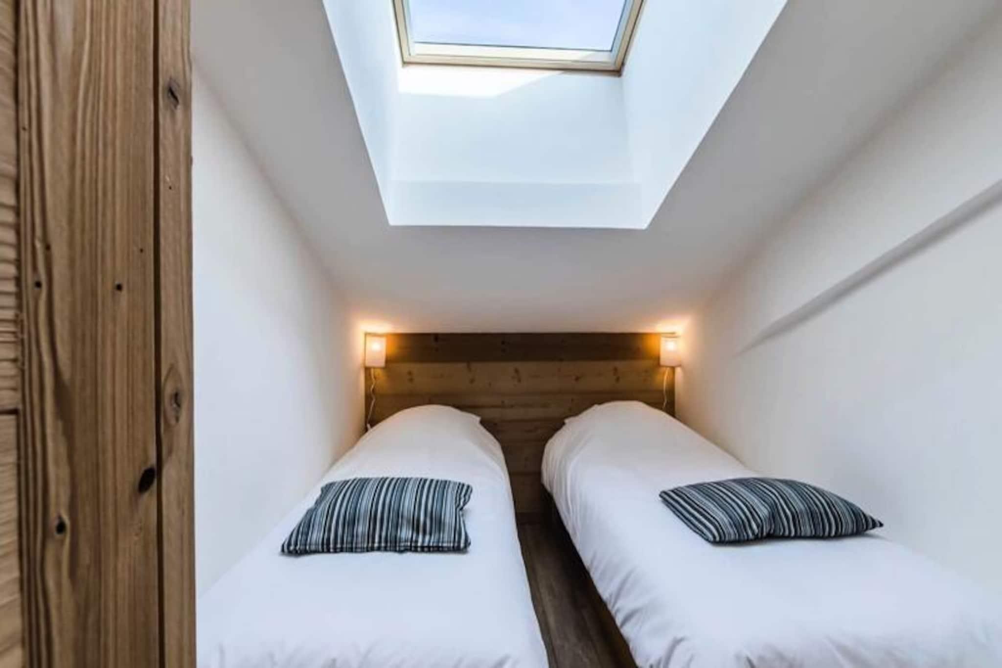 Högt ovanför den förtrollande byn Val d'Isère erbjuder denna lägenhet på översta våningen i La Résidence du Rond-Point des Pistes en lugn alpin tillflyktsort med direkt tillgång till det berömda skidområdet Espace Killy. Tänk dig att vakna upp till det mjuka morgonljuset som strömmar genom takfönster, gå ut på din balkong i sydostläge för att beundra de orörda backarna och åka direkt till Solaise-linbanan bara några steg bort för en dag med spännande äventyr. Oavsett om du är här för att åka skidor, åka snowboard eller bara njuta av de franska Alpernas skönhet, placerar denna bostad dig i hjärtat av allt. \n\nLägenheten totalrenoverades 2016 och kombinerar modern komfort med alpin charm. Den är designad för att rymma upp till fem gäster och har ett mysigt sovrum med dubbelsäng, ett sovrum med två enkelsängar och en charmig stuga med en enkelsäng, allt inklämt under sluttande tak för en mysig och intim känsla. Det rymliga vardagsrummet inbjuder till avkoppling med sin platt-TV och Wi-Fi, medan det fullt utrustade köket gör matlagningen till en barnlek med induktionshäll, ugn, mikrovågsugn och diskmaskin. Efter en dag i backarna kan du varva ner i det eleganta badrummet med handdukstork eller njuta av den lugna atmosfären i detta fridfulla läge på översta våningen.\n\nBortom lägenheten erbjuder Val d'Isère en mängd attraktioner. Familjer kommer att älska barnbyn, medan icke-skidåkare kan njuta av Aquasportif Centre med sin pool och wellnessavdelning. Byns centrum är lättillgängligt via den kostnadsfria Röda tåget-bussen eller en kort promenad över snöfronten. I närheten hittar du mysiga restauranger som Pizzeria Chez Paolo, skiduthyrningsbutiker som erbjuder exklusiva rabatter och ett pulserande nattliv på Le Doudoune Club.\n\nOavsett om du söker spännande dagar i backarna eller lugna kvällar under alpina stjärnor, är denna lägenhet din port till oförglömliga minnen i en av de mest ikoniska skiddestinationerna i världen.