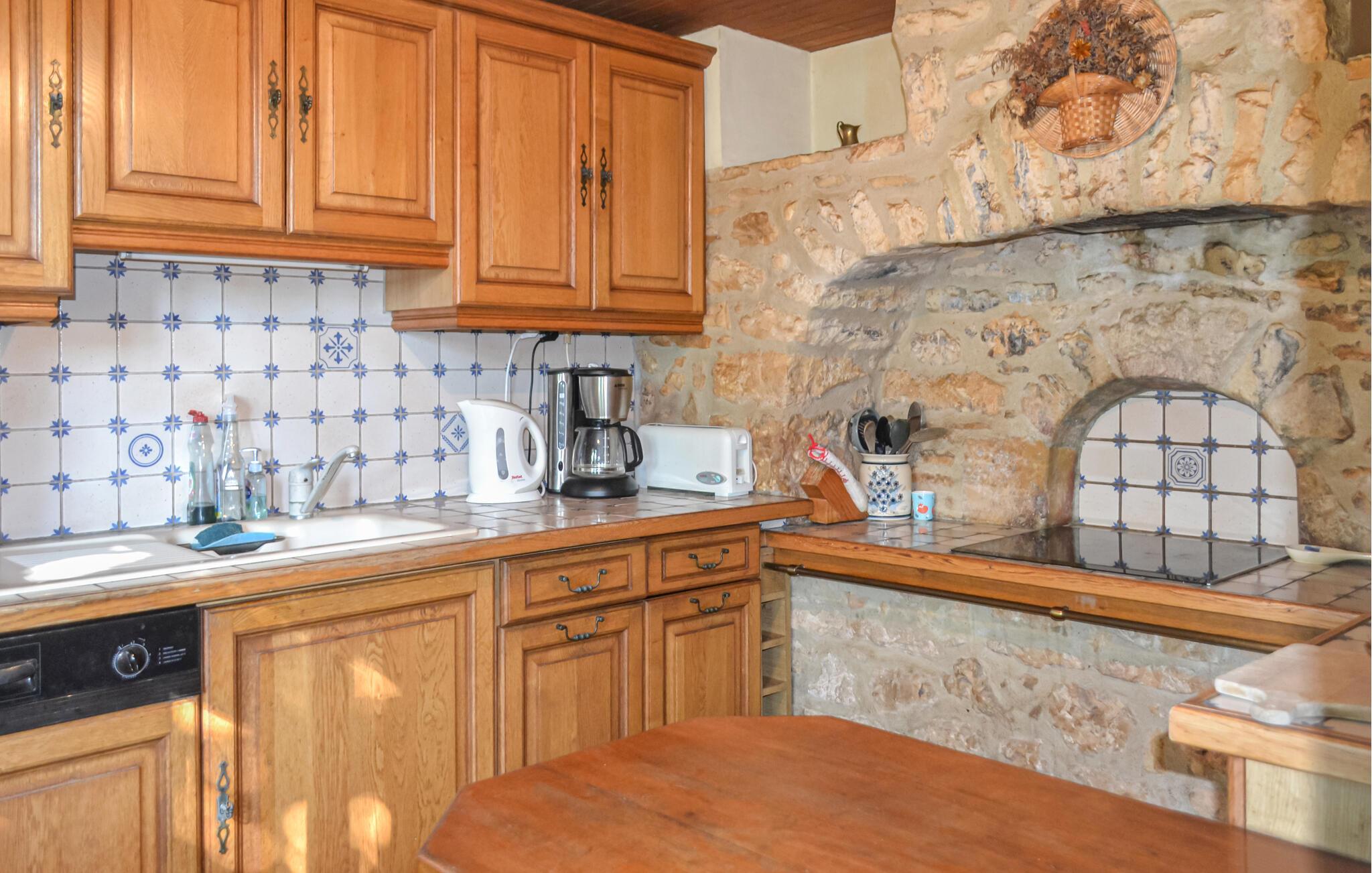 Välkommen till det inbjudande huset, som välkomnar dig i ett vackert läge. Det har sin charm från den rustika mysigheten i interiören, som skapas av autentiska möbler, vackra trätak och delvis exponerat tegelverk, och inbjuder dig att ta en avkopplande paus från vardagen. Koppla av i en mysig miljö efter dina aktiviteter i det omgivande området, gör dig bekväm vid matbordet och ordna en spelkväll eller prata sent på kvällen.