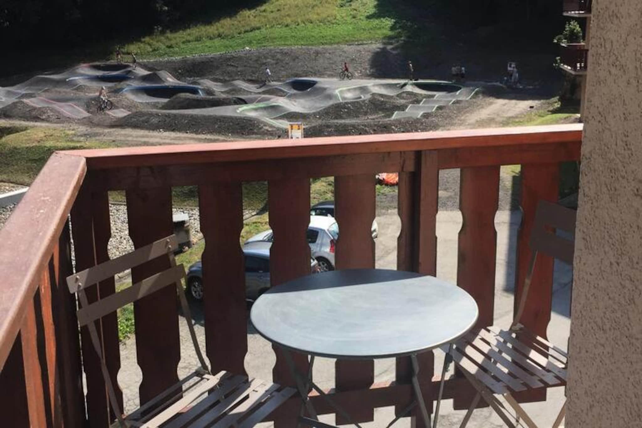 I hjärtat av Valloires charmiga Clos des Etoiles erbjuder denna mysiga lägenhet en härlig tillflyktsort för både vinter- och sommarresor. Med sitt centrala läge befinner du dig bara 300 meter från Crêt de la Brives linbana och skidskolans mötesplats under snösäsongen, medan sommaren tar dig inom 160 meter från fritidscentret med pool, isbana och wellnessavdelning. Oavsett om du jagar puder eller njuter av alpsolen, placerar denna bostad dig i centrum av allt. \n\nLägenheten är designad för upp till fyra gäster och har en kompakt men inbjudande planlösning. Sovrummet är utrustat med våningssängar, medan vardagsrummet erbjuder en bekväm bäddsoffa, vilket garanterar vilsamma nätter efter dagar av äventyr. Pentryt är fullt utrustat med moderna apparater inklusive ugn, mikrovågsugn, induktionshäll, kylskåp, diskmaskin och tvättmaskin, vilket gör det enkelt att laga mat och snacks. Vardagsrummet har en TV och Wi-Fi, perfekt för att varva ner efter att ha utforskat backarna eller lederna. En hörnbalkong med trädgårdsmöbler erbjuder en härlig plats att njuta av den friska bergsluften och den fantastiska utsikten.\n\nValloires centrala läge innebär att du aldrig är långt från det pulserande bylivet. Promenera till närliggande butiker, njut av lokal mat på charmiga restauranger eller utforska de omgivande lederna och topparna. På vintern säkerställer skidförvaringen att din utrustning är redo för action, medan sommaren inbjuder dig att upptäcka regionens frodiga landskap och utomhusaktiviteter.\n\nOavsett om du söker spännande nedfarter, lugna vandringar eller helt enkelt en fridfull alpin semester, erbjuder denna lägenhet den perfekta basen för att skapa oförglömliga minnen i de franska Alperna.