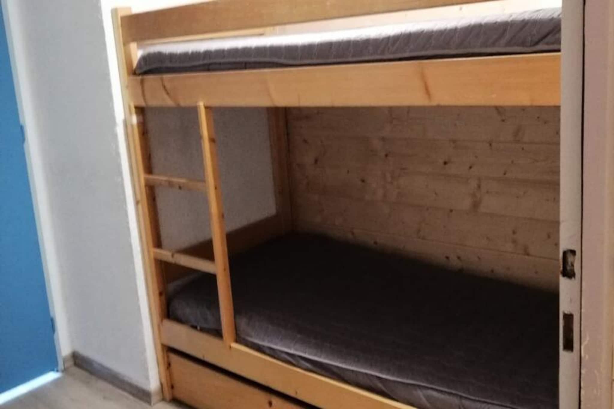 I hjärtat av den charmiga alpbyn Valloire erbjuder denna mysiga lägenhet en härlig tillflyktsort för både vinter- och sommaräventyr. Bara några steg från det pulserande Clos des Etoiles-området, kommer du att befinna dig i den livliga atmosfären i de franska Alperna, omgiven av fantastisk utsikt över bergen och ett välkomnande samhälle. Oavsett om du är här för att vandra genom orörda sluttningar eller njuta av sommarsolen, är denna fastighet perfekt placerad för att få ut det mesta av din vistelse. \n\nLägenheten rymmer bekvämt upp till fyra gäster, med genomtänkta sovarrangemang inklusive en bäddsoffa i vardagsrummet och våningssängar i entrén. Pentryt är utrustat med moderna bekvämligheter som ugn, mikrovågsugn, elektrisk spis, diskmaskin och kylskåp, vilket gör det enkelt att laga rejäla måltider efter en dag av utforskande. Koppla av i den mysiga loungen med TV eller varva ner i badrummet med badkar och hårtork. Terrassen i västerläge erbjuder en lugn plats att njuta av den alpina atmosfären, medan gemensam parkering och ett skidförvaring gör din vistelse bekvämare. \n\nVinterbesökare kommer att älska närheten till Crêt de la Brive-linbanan, bara 280 meter bort, och skidskolans mötesplats, vilket garanterar smidig tillgång till backarna. På sommaren ligger fritidscentret med pool, isbana och hälsoavdelning bara 220 meter bort, medan lekplatsen ligger en kort 400 meter lång promenad bort. De närliggande butikerna, bara 130 meter från boendet, erbjuder allt du behöver för en bekväm och trevlig semester. \n\nMed sitt utmärkta läge och inbjudande inredning är denna lägenhet ett perfekt val för familjer, par eller vänner som söker en minnesvärd alpin semester. Upplev Valloires magi och skapa bestående minnen i denna charmiga oas.