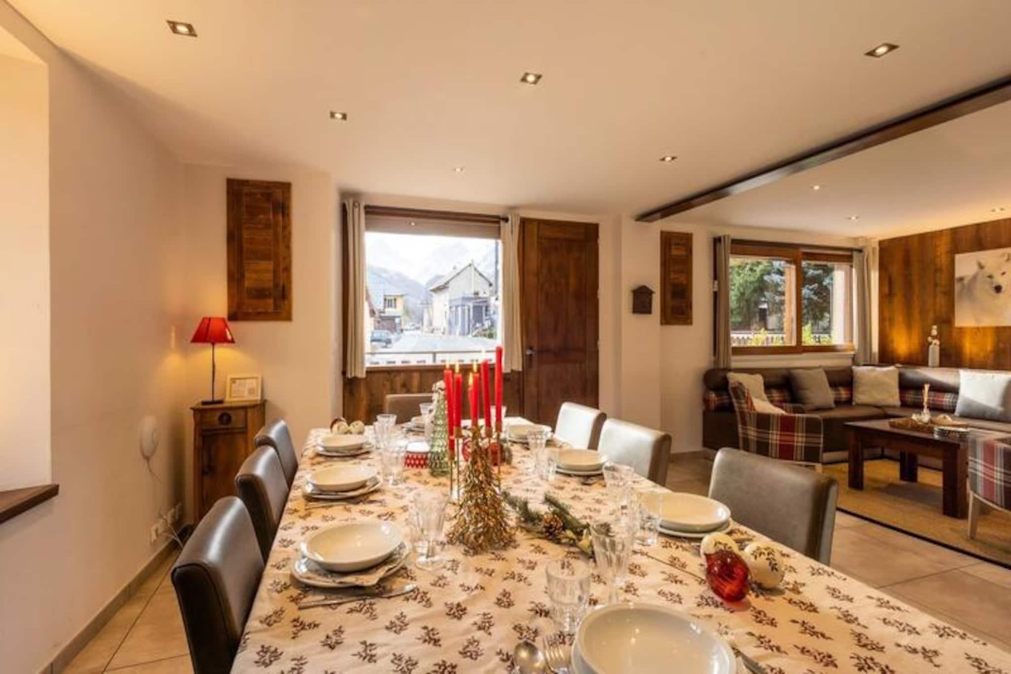 Mitt i Les Verneys lugna charm, bara 2 km från hjärtat av Valloire, erbjuder denna rymliga duplexlägenhet en perfekt blandning av traditionell alpin atmosfär och moderna bekvämligheter. Tänk dig att vakna upp till den friska bergsluften och gå ut på din privata terrass i söderläge, där solen lyser upp den hisnande utsikten över de omgivande topparna. Oavsett om du besöker oss på vintern eller sommaren, inbjuder denna fastighet dig att fördjupa dig i de franska Alpernas skönhet. \n\nLägenheten är designad för att rymma upp till 13 gäster och ståtar med fem omsorgsfullt inredda sovrum fördelade på två våningar, vilket erbjuder både avskildhet och flexibilitet för familjer eller grupper av vänner. Bottenvåningen har ett mysigt vardagsrum med TV och Wi-Fi, samt ett fullt utrustat pentry med moderna apparater inklusive diskmaskin, ugn och kyl/frys. Tre badrum, varav ett med badkar och ett annat med dusch, garanterar bekvämlighet för alla. Ytterligare bekvämligheter som tvättmaskin, torktumlare och skidförvaring med pjäxtork förbättrar din vistelse. \n\nPå vintern ligger Verneys stolslift och ESF:s skidskolas mötesplats bara 400 meter bort, vilket gör det enkelt att nå backarna. En gratis nybörjarlift i närheten är perfekt för dig som är nybörjare på skidåkning, medan längdskidspår och skidbutiker finns inom gångavstånd. Sommaren förvandlar området till en fristad för friluftsentusiaster, med en golfbana, tennisbanor och en lekplats bara en kort promenad bort. Lokala bagerier och tidningskiosker ger din alpina resa en touch av bekvämlighet. \n\nMed tillgång till gym, bastu, ångbad och jacuzzi erbjuder denna fastighet avkoppling efter en dag av äventyr. Oavsett om du söker spännande skidbackar eller lugna bergsvandringar, lovar denna duplexlägenhet i Les Verneys en oförglömlig tillflyktsort i hjärtat av Alperna.