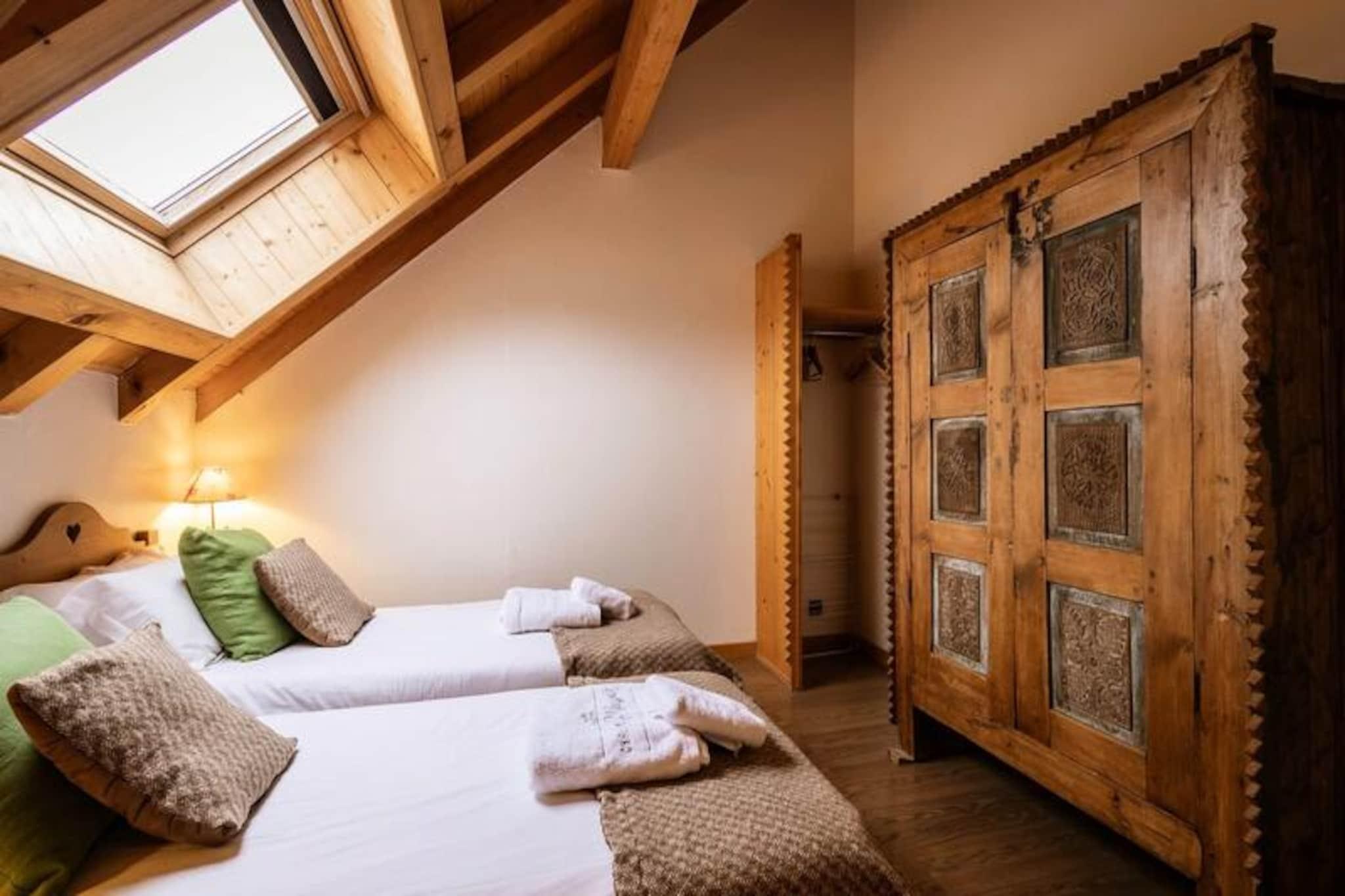 I den charmiga byn Les Verneys, bara 2 km från hjärtat av Valloire, erbjuder denna traditionella alpina oas en perfekt blandning av rustik charm och modern komfort. Omgiven av hisnande bergslandskap är det en idealisk oas för familjer, vänner och naturentusiaster som söker en minnesvärd semester i varje säsong. Oavsett om du är här för vinterns snötäckta sluttningar eller sommarens soliga stigar, lovar denna fastighet en oförglömlig upplevelse. Huset har en varm och inbjudande planlösning, med två mysiga sovrum och ett rymligt vardagsrum med bäddsoffa, som bekvämt rymmer upp till sex gäster. Köket med öppen planlösning är fullt utrustat med moderna apparater, vilket gör det enkelt att laga rejäla måltider efter en dag av äventyr. Koppla av vid den öppna spisen i vardagsrummet i söderläge, eller gå ut på balkongen i västerläge för att njuta av den fridfulla alpina utsikten. Med två badrum, tvättmaskin, torktumlare och genomtänkta detaljer som bäddade sängar och handdukar, har varje detalj tänkts igenom för din bekvämlighet.\n\nVinterbesökare kommer att uppskatta närheten till Verneys-liften, bara 400 meter bort, och ESF:s skidskolas mötesplats, vilket gör det enkelt att ta sig ut i backarna. Längdskidspår ligger en kort promenad på 550 meter, medan en gratis nybörjarlift garanterar nöje för alla nivåer. På sommaren ligger fastigheten bara 750 meter från golfbanan och tennisbanorna, med en lekplats i närheten för yngre gäster. Lokala bekvämligheter, inklusive ett bageri och en tidningskiosk, finns inom 350 meter, och en regelbunden buss till Valloires centrum stannar bara 60 meter från din dörr.\n\nMed tillgång till en gemensam trädgård, grill och hälsofaciliteter som bastu, ångbastu och jacuzzi, erbjuder detta hem avkoppling och rekreation i lika stor utsträckning. Oavsett om du söker spännande utomhusäventyr eller fridfulla stunder i bergen, är denna fastighet din port till det bästa av Valloire.