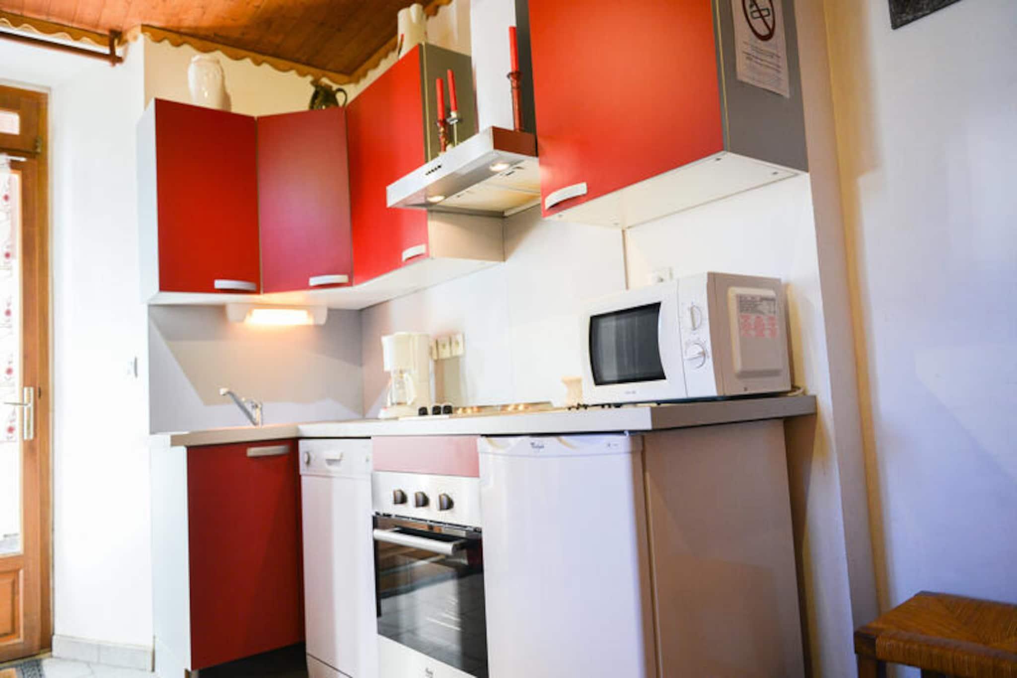 I hjärtat av den charmiga alpbyn Valloire inbjuder denna mysiga oas dig till den perfekta bergssemestern. Omgiven av de majestätiska topparna i de franska Alperna erbjuder denna anläggning en blandning av komfort och bekvämlighet, vilket gör den till ett idealiskt val för både vinter- och sommarresor. Oavsett om du är här för att vandra genom orörda sluttningar eller njuta av den pulserande sommaratmosfären, placerar detta boende dig i centrum av allt. \n\nInuti är fastigheten noggrant utformad för att tillgodose dina behov. Vardagsrummet, badande i naturligt ljus, har en bekväm bäddsoffa för två, en TV, DVD-spelare och Wi-Fi för att hålla dig uppkopplad. En separat hall med våningssängar garanterar avskildhet och flexibilitet för familjer eller små grupper. Pentryt är fullt utrustat med ugn, mikrovågsugn, diskmaskin och kylskåp, så att du enkelt kan laga mat. Badrummet har dusch och hårtork, medan en separat toalett ger extra bekvämlighet. För extra komfort erbjuder den gemensamma trädgården med möbler en lugn plats att koppla av på efter en dag av äventyr.\n\nPå vintern ligger Crêt de la Brive-linbanan och skidskolans mötesplats bara 230 meter bort, vilket ger smidig tillgång till backarna. På sommaren ligger fritidscentret med pool, isbana och hälsoavdelning bara 500 meter från din dörr. Närliggande butiker och nöjesställen säkerställer att allt du behöver finns inom räckhåll.\n\nMed sitt utmärkta läge, moderna bekvämligheter och Valloires förtrollande bakgrund lovar denna fastighet en oförglömlig alpin upplevelse. Oavsett om du söker spännande utomhusaktiviteter eller fridfulla stunder i naturen, är denna oas din port till det bästa av de franska Alperna.