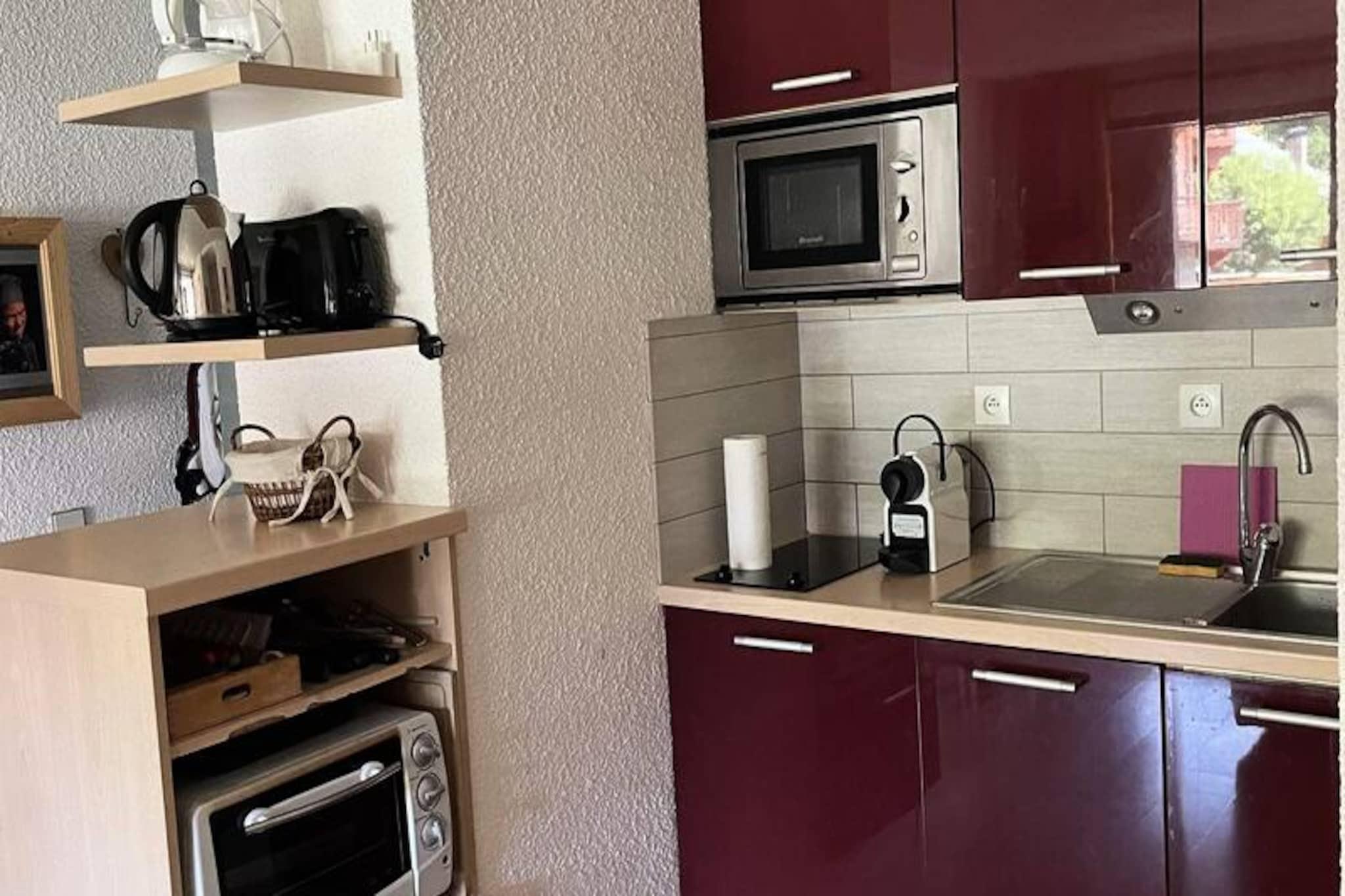 Mitt i den fridfulla charmen i byn La Grand Vy erbjuder denna förtjusande bostad en mysig tillflyktsort för upp till fyra gäster, och kombinerar perfekt alpin lugn och ro med bekväm tillgång till Valloires pulserande centrum, bara 1,3 km bort. Oavsett om du besöker oss på vintern eller sommaren, garanterar boendets läge att du aldrig är långt ifrån äventyr eller avkoppling. Föreställ dig att du varvar ner på balkongen i söderläge, njuter av den friska bergsluften och den hisnande utsikten, medan du planerar nästa dags aktiviteter. Detta är en plats där komfort möter de franska Alpernas lockelse. \n\nInuti är bostaden noggrant utformad för en bekväm vistelse. Sovrummet har en dubbelsäng och en enkelsäng, medan vardagsrummet har en bäddsoffa, vilket erbjuder flexibla sovarrangemang. Pentryt är utrustat med moderna bekvämligheter som miniugn, mikrovågsugn, diskmaskin och keramikhäll, vilket gör matlagningen till en barnlek. Efter en dag av utforskande kan du koppla av i loungen med en TV eller njuta av ett avkopplande dopp i badrummets badkar. Fastigheten har också ett skidförvaringsskåp och ett slutet garage, vilket garanterar bekvämlighet för alla dina behov. På vintern ligger Moulin Benjamins liftar och ESF:s skidskolas mötesplats bara 500 meter bort, och skidbacken "Moulin" passerar bara 70 meter från boendet. En skidbutik med säker förvaring ligger 450 meter bort, och en regelbunden skytteltrafik garanterar enkel åtkomst till backarna. Sommaren har sina egna nöjen, med ett ridcenter bara 100 meter bort och ett fritidscenter med pool, ishall och hälsoavdelning bara 1,9 km från boendet. Den närliggande byn Les Verneys erbjuder butiker, restauranger, en golfbana och tennisbanor, allt inom 1,2 km. Oavsett om du söker spännande skidäventyr, fridfulla naturpromenader eller bara en lugn tillflyktsort i bergen, är detta charmiga boende i La Grand Vy din port till oförglömliga alpina upplevelser.