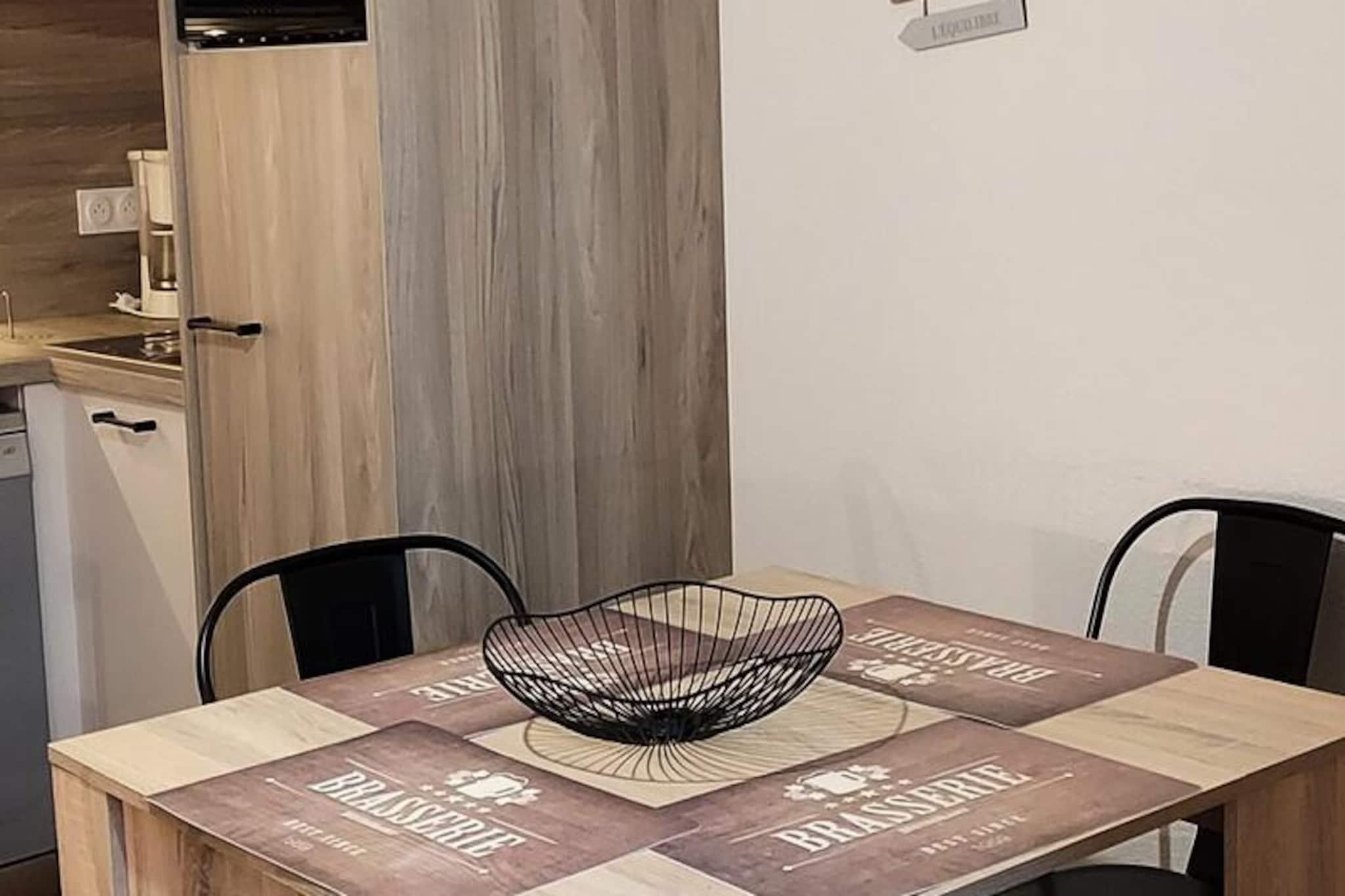 I den charmiga byn Les Charbonnières, bara en kort promenad från hjärtat av Valloire, erbjuder denna mysiga lägenhet en idealisk tillflyktsort för din alpina semester. Med den pittoreska blå pisten Piste des Lutins i närheten och gondolbanan Crêt de la Brive bara 450 meter bort, kommer vintersportsentusiaster att befinna sig perfekt positionerade för att utforska backarna. På sommaren ligger det livliga fritidscentret med pool, ishall och wellnessavdelning bara 750 meter bort, vilket lovar oändliga aktiviteter för alla åldrar. Balkongen i söderläge inbjuder dig att njuta av bergssolen medan du njuter av fridfull utsikt över de omgivande topparna. Inuti rymmer lägenheten bekvämt upp till fem gäster. Sovrummet har en dubbelsäng och en våningssäng för en person, medan vardagsrummet erbjuder en bäddsoffa för extra sovplats. Pentryt är fullt utrustat med moderna apparater, inklusive mikrovågsugn, ugn, kylskåp och diskmaskin, vilket gör det enkelt att laga mat efter en dag av äventyr. Vardagsrummet med TV erbjuder en mysig plats att varva ner, och badrummet har badkar och hårtork för extra bekvämlighet. Residenset är omsorgsfullt utformat med bekvämligheter som skidförvaring och hiss, vilket garanterar en problemfri vistelse. Även om det inte finns någon privat parkering, finns allmän parkering bekvämt belägen bara 60 meter bort. Under sommarmånaderna kan gästerna njuta av tillgång till den närliggande poolen i Chardon-byggnaden, bara 50 meter bort, även om tillgängligheten kan variera på grund av administrativa beslut. Oavsett om du är här för att karva dig genom orörd snö på vintern eller vandra och koppla av i sommarsolen, erbjuder denna lägenhet en välkomnande bas för att skapa bestående minnen i de franska Alperna. Med sin närhet till Valloires butiker, restauranger och aktiviteter är det det perfekta valet för familjer, par eller små grupper som söker både äventyr och lugn.