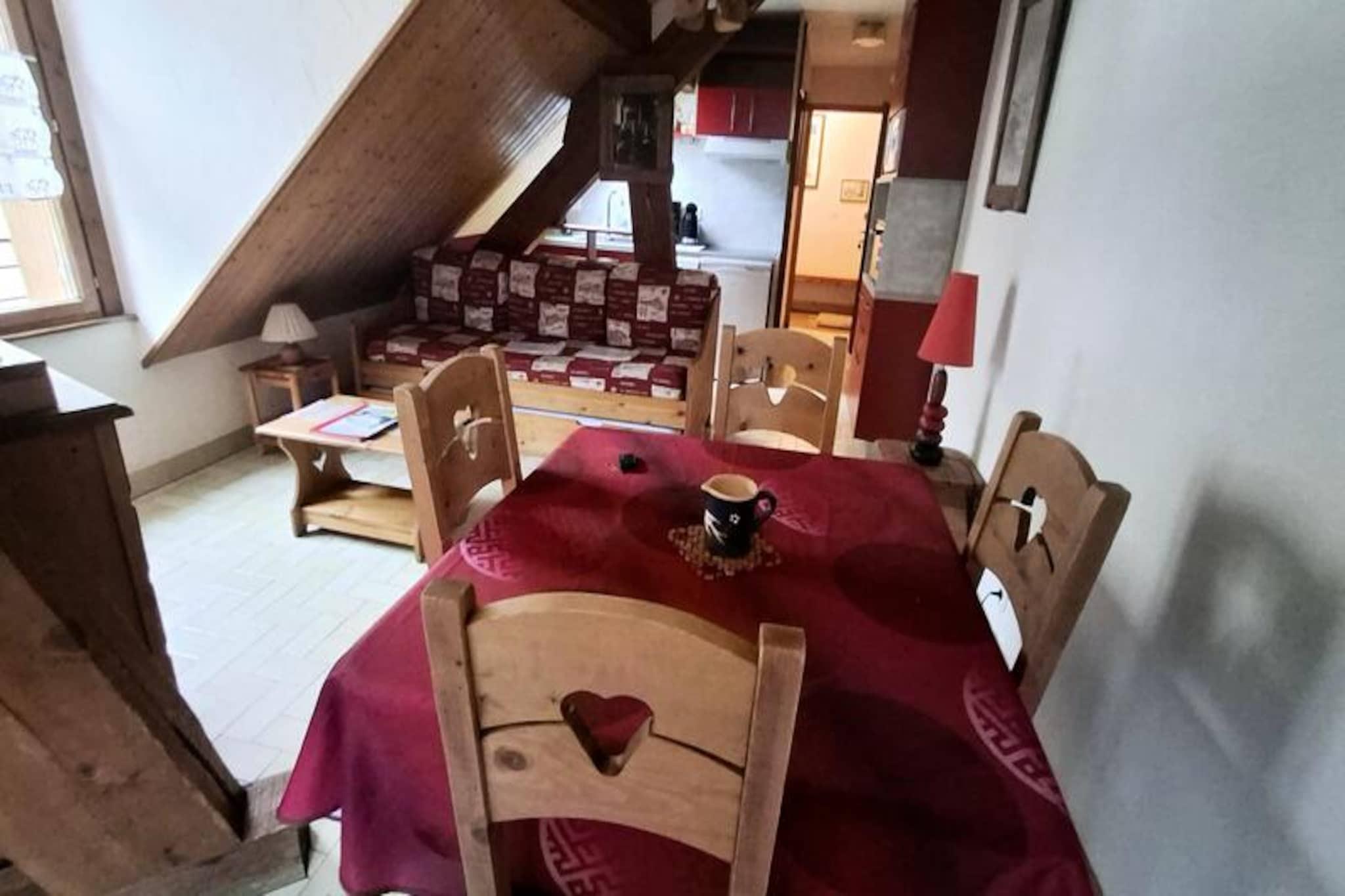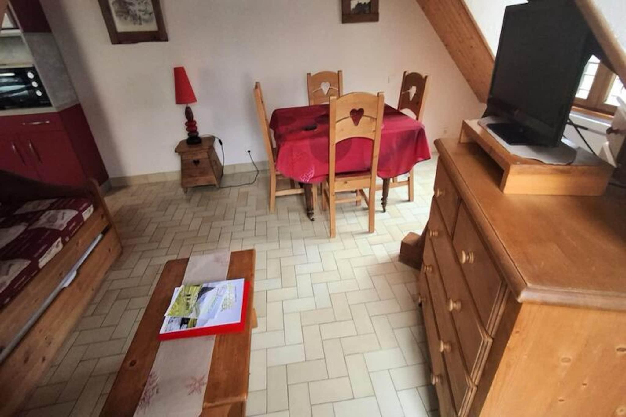 I Valloires charmiga hjärta erbjuder detta mysiga boende en inbjudande tillflyktsort för både vinter- och sommarresor. Bara 150 meter från Crêt de la Brives linbana och skidskolans mötesplats är det en fristad för skidentusiaster som söker bekvämlighet och komfort. På sommaren är boendet lika tilltalande, bara 280 meter från fritidscentret med pool, isbana och hälsoavdelning. Oavsett om du är här för snöiga backar eller soliga alpina äventyr, placerar detta boende dig i centrum av allt. \n\nLägenheten är omsorgsfullt utformad för att maximera komforten inom sin kompakta planlösning. Vardagsrummet har en utdragbar bäddsoffa, medan ett mysigt hyttområde erbjuder våningssängar, vilket gör det idealiskt för familjer eller små grupper. Köket är utrustat med moderna bekvämligheter, inklusive keramikhäll, kylskåp, miniugn, mikrovågsugn och diskmaskin, vilket säkerställer att du har allt du behöver för att laga mat efter en dag med aktiviteter. Koppla av i vardagsrummet med TV, DVD-spelare och Wi-Fi, eller varva ner i det välutrustade badrummet med dusch och hårtork. \n\nStig ut och utforska den pulserande byn Valloire, där butiker, restauranger och lokal charm väntar. En anlagd trädgård med sittplatser och lekutrustning ligger bara 300 meter bort, vilket ger en perfekt plats för sommaravkoppling. Allmän parkering finns bekvämt i närheten, och fastigheten inkluderar gemensam skidförvaring för vinterutrustning. \n\nOavsett om du dras av spänningen med skidåkning, lugnet under alpina somrar eller den välkomnande atmosfären i Valloire, erbjuder detta boende en härlig bas för din bergssemester. Skapa bestående minnen i denna pittoreska franska by omgiven av hisnande toppar och oändliga möjligheter till äventyr.