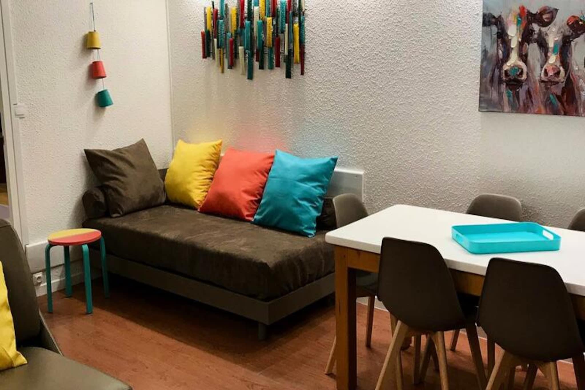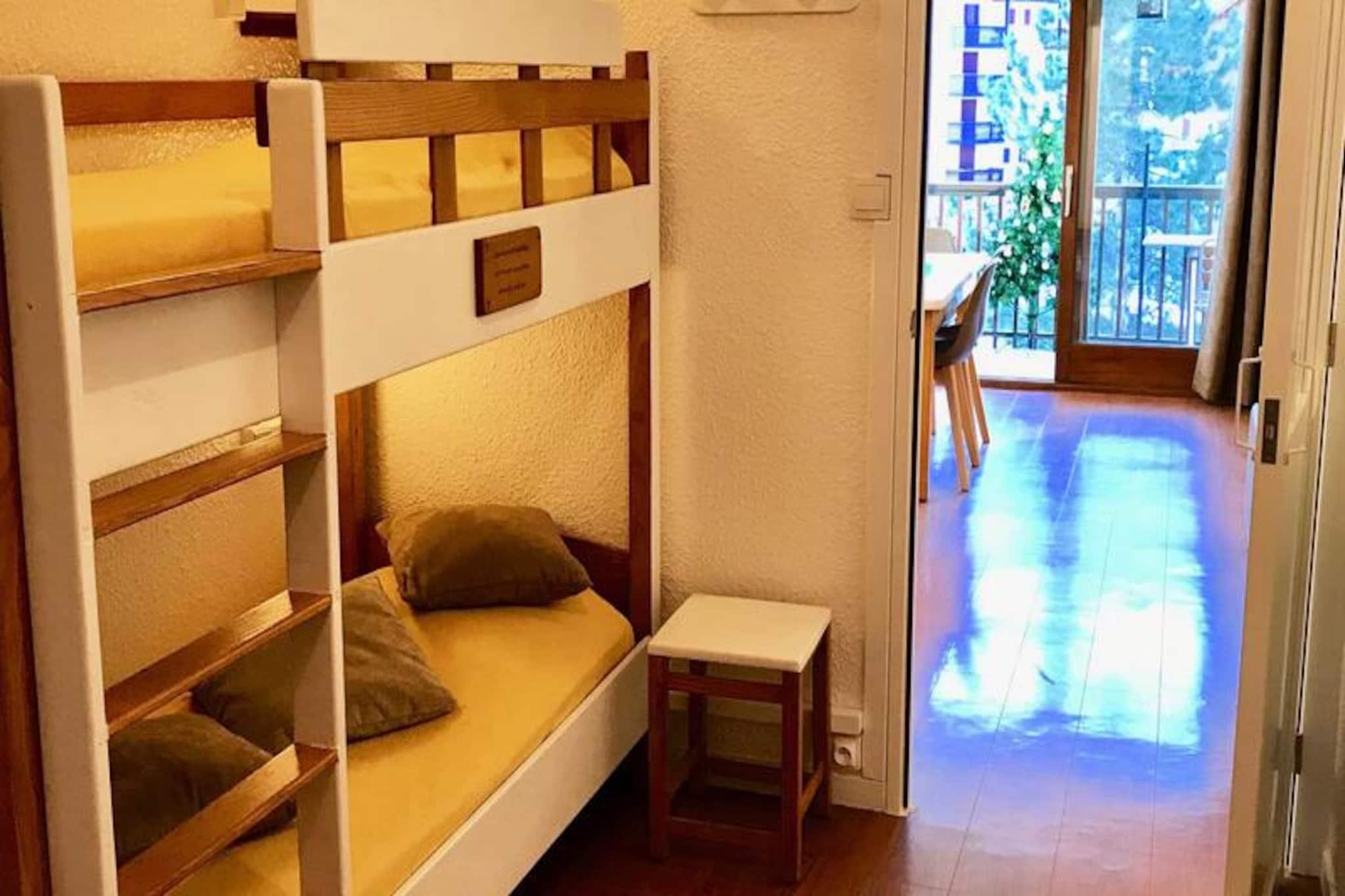 I hjärtat av den charmiga alpbyn Valloire erbjuder detta mysiga boende en perfekt blandning av komfort och bekvämlighet för din nästa bergssemester. Med sitt centrala läge befinner du dig bara 220 meter från Crêt de la Brive-linbanan och skidskolans mötesplats, vilket gör det till ett idealiskt val för vintersportsentusiaster. På sommaren ligger fritidscentret, med pool, ishall och wellnessavdelning, bara 500 meters promenad bort, vilket garanterar aktiviteter året runt för alla åldrar. De omgivande gatorna i byn är kantade av butiker som inbjuder dig att utforska lokala delikatesser och hantverksskatter. \n\nDenna lägenhet i söderläge är omsorgsfullt utformad för att rymma upp till fyra gäster. Entrén har en mysig sovplats med våningssängar, medan vardagsrummet erbjuder ytterligare sovmöjligheter med en bäddsoffa och en enkelsäng. Pentryt är fullt utrustat med moderna apparater, inklusive ugn, diskmaskin, mikrovågsugn och keramikhäll, vilket gör det enkelt att laga mat efter en dag av äventyr. Koppla av i loungen med platt-TV och Wi-Fi, eller gå ut på den soliga balkongen för att njuta av utsikten över bergen från ditt privata utomhusutrymme, komplett med bord, stolar och solstolar.\n\nFör extra bekvämlighet inkluderar residenset skidförvaring, hiss och både privat underjordisk parkering och gemensam utomhusparkering (i mån av tillgång). Oavsett om du besöker Valloire på vintern för att vandra i de orörda backarna eller på sommaren för att vandra på de hisnande lederna, erbjuder det en oförglömlig alpin upplevelse. Med sin välkomnande atmosfär, fantastiska omgivningar och närhet till viktiga bekvämligheter är detta 3-stjärniga boende den perfekta basen för att skapa bestående minnen i de franska Alperna.