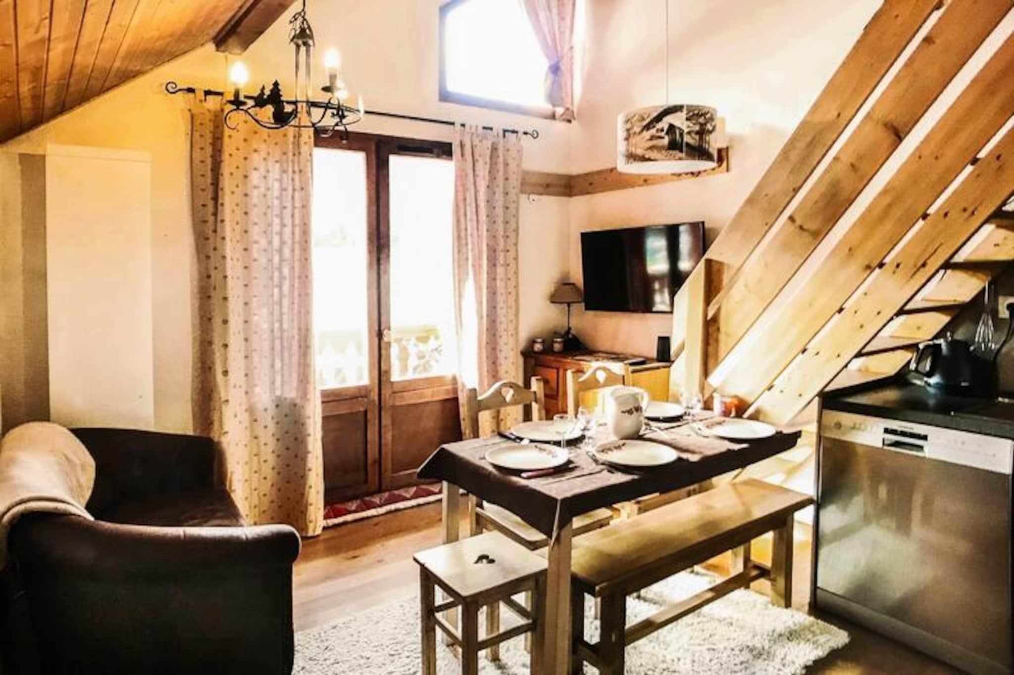 I hjärtat av den charmiga alpbyn Valloire erbjuder denna mysiga studiolägenhet en inbjudande tillflyktsort för par eller små familjer som söker en fjällsemester. Med sitt utmärkta läge bara 100 meter från Crêt de la Brive-linbanan och skidskolans mötesplats, finns vinteräventyr precis utanför dörren. På sommaren ligger residenset bara en kort 350 meters promenad från fritidscentret, med pool, isbana och hälsoavdelning, vilket gör det till en idealisk destination året runt. \n\nStudiolägenheten på 20 m² är omsorgsfullt utformad för att maximera komfort och funktionalitet. Sovrummen inkluderar en mysig stuga med en dubbelsäng och en liten mezzanin med ytterligare en dubbelsäng, perfekt för vilsamma nätter efter en dag av utforskande. Vardagsrummet i västerläge badar i naturligt ljus och har ett välutrustat pentry med moderna apparater, en bekväm lounge med TV och en balkong med utsikt över bergen – en perfekt plats att varva ner med en varm dryck. Badrummet har dusch, handfat, hårtork och tvättmaskin, med en separat toalett för extra bekvämlighet.\n\nValloires pulserande bycentrum ligger nära till hands, med charmiga butiker, lokala restauranger och afterski-möjligheter för att förbättra din vistelse. Oavsett om du åker skidor nerför orörda backar på vintern eller njuter av fritidscentret och de natursköna vandringslederna på sommaren, garanterar detta läge enkel tillgång till allt som regionen har att erbjuda.\n\nMed sin blandning av komfort, bekvämlighet och alpin charm är denna studiolägenhet en härlig bas för att skapa oförglömliga minnen i de franska Alperna.