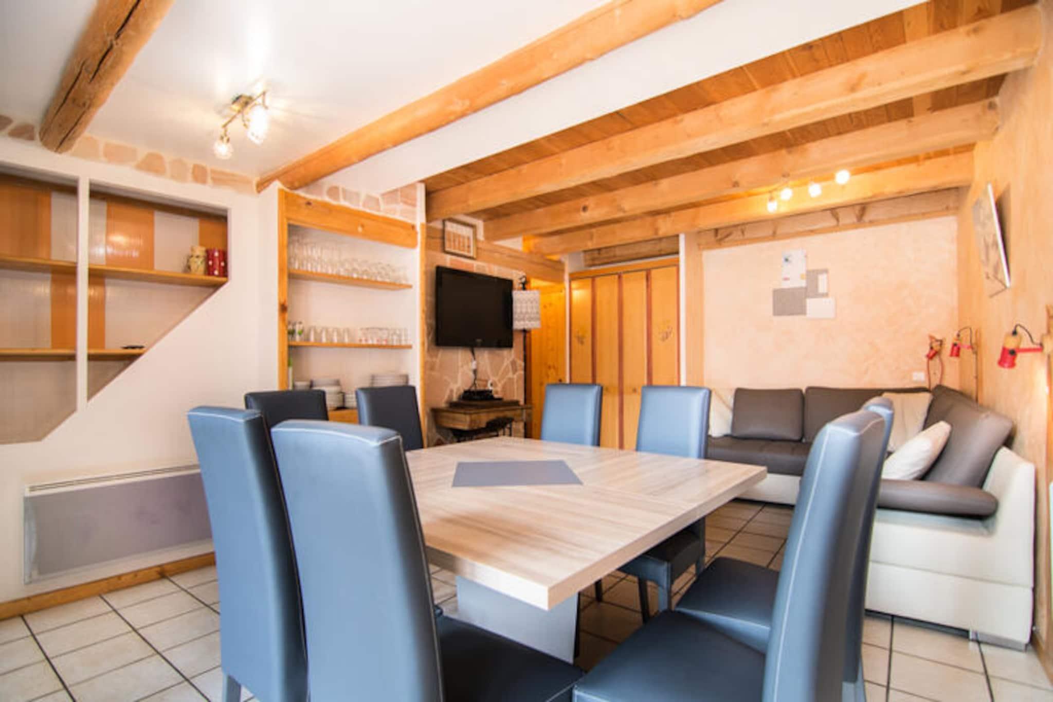 Mitt i Bonnenuits fridfulla alpina charm erbjuder detta vackert renoverade bondgård en lugn tillflyktsort bara 6 km från Valloires livliga centrum. Omgivet av hisnande bergsvyer är denna fastighet en fristad för både vintersportsentusiaster och sommaräventyrare. Oavsett om du söker spänningen i backarna eller lugnet på naturstigarna, erbjuder detta bondgård den perfekta basen för din alpina flykt. Den närliggande Verneys-liften och ESF-skidskolan, bara 4 km bort, garanterar enkel tillgång till de berömda skidområdena, medan den avgiftsbelagda bussen bekvämt avgår bara 20 meter från fastigheten under högsäsong. Inuti blandar bondgården rustik charm med moderna bekvämligheter. Det rymliga vardagsrummet, badande i naturligt ljus, inbjuder dig att koppla av med sina mysiga sittplatser, TV och Wi-Fi. Det fullt utrustade köket gör matlagningen till en barnlek, medan matplatsen är perfekt för att dela berättelser om dagens äventyr. Med tre noggrant utformade sovplatser, inklusive två sovrum i österläge med eget badrum med duschar och en öppen hytt med våningssängar, rymmer detta hem bekvämt familjer eller grupper på upp till nio gäster. Ytterligare bekvämligheter som tvättstuga, skidförvaring och privat parkering garanterar en stressfri vistelse. Bortom bondgården erbjuder byn Bonnenuit en lugn atmosfär med bekväm tillgång till lokala läckerheter som restaurangen La Poutre och butiker i närliggande Verneys. På sommaren lockar vandringslederna med fantastisk utsikt över de omgivande topparna och dalarna. Oavsett om du utforskar backarna på vintern eller upptäcker alpin flora på sommaren, är denna bondgård din port till oförglömliga stunder i de franska Alperna. Välj denna charmiga tillflyktsort för dess blandning av komfort, bekvämlighet och autentisk bergsatmosfär – en plats där minnen skapas och naturens skönhet omger dig.