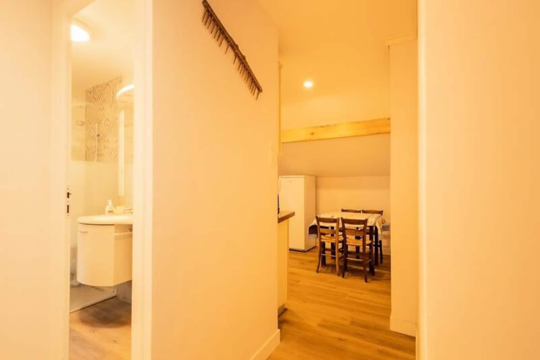 I den charmiga byn La Borgé, bara en kort 250 meters promenad från hjärtat av Valloire, erbjuder denna mysiga chaletlägenhet en härlig tillflyktsort för din alpina semester. Oavsett om du besöker oss i vinterns snöiga omfamning eller i den soliga sommarvärmen, gör den lugna omgivningen och det bekväma läget det till ett idealiskt val för par eller små familjer som söker både avkoppling och äventyr. Från balkongen i söderläge kan du njuta av den fridfulla utsikten över de omgivande bergen medan du njuter av ditt morgonkaffe eller ett kvällsglas vin. Inuti är lägenheten noggrant utformad för komfort och funktionalitet. Det rymliga sovrummet har två enkelsängar som kan skjutas ihop, medan vardagsrummet erbjuder en bekväm bäddsoffa, perfekt för ytterligare gäster. Det fullt utrustade köket har moderna apparater som mikrovågsugn, ugn, diskmaskin och tvättmaskin/torktumlare, vilket garanterar en problemfri vistelse. Efter en dag av utforskande kan du varva ner i det mysiga vardagsrummet med Wi-Fi och platt-TV, eller svalka dig i det eleganta badrummet med duschkabin och separat toalett. Vintergäster kommer att uppskatta närheten till Crêt de la Brives linbana och skidskolans mötesplatser, bara 700 meter bort, med en bekväm avgiftsbelagd buss som stannar bara 80 meter från stugan. På sommaren ligger det närliggande fritidscentret, med pool, ishall och hälsoavdelning, bara 800 meter bort. Den gemensamma trädgården med grill, pingisbord och solstolar bidrar till charmen och erbjuder en perfekt plats för soliga eftermiddagar. Med en privat parkeringsplats i garage, ett skidförvaring och slutstädning ingår i denna stuglägenhet, vilket garanterar en smidig och minnesvärd vistelse. Oavsett om du åker genom färsk pudersnö eller vandrar på natursköna leder, är denna fridfulla oas i La Borgé din port till det bästa av Valloire.