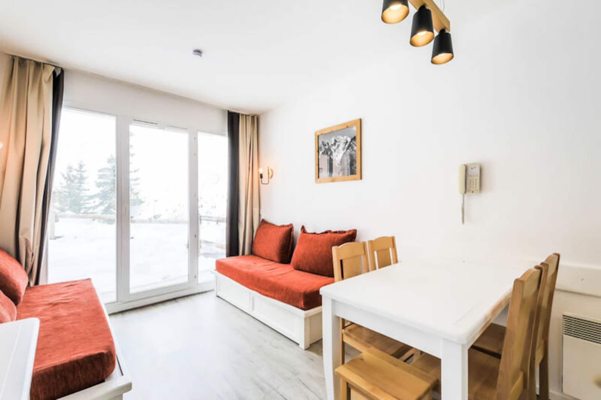 Högt ovanför den pittoreska Mauriennedalen erbjuder detta charmiga residens i Valmeinier 1800 en oförglömlig alpin flykt. Omgivet av de majestätiska Thabor-bergen är Le Thabor-residenset en fristad för både familjer och äventyrare. Dess unika träklädda arkitektur smälter harmoniskt in i regionens naturliga skönhet, medan panoramautsikten från din privata balkong ger en daglig dos av inspiration. Oavsett om du är här för spänningen med skidåkning eller lugnet i bergslivet, lovar denna destination en perfekt balans mellan aktivitet och avkoppling. Inuti är den mysiga lägenheten på 28 m² omsorgsfullt utformad för att rymma upp till fem gäster. Vardagsrummet har två bäddsoffor, varav en med utdragbar bäddsoffa, och sovrummet har en bekväm dubbelsäng. Köket och matplatsen i öppen planlösning är perfekta för att laga och njuta av måltider tillsammans, medan badrummet med badkar garanterar en lugnande tillflyktsort efter en dag i backarna. Moderna bekvämligheter som Wi-Fi (tillgängligt i receptionen) och en TV bidrar till din vistelses komfort. För husdjursälskare välkomnar residenset dina lurviga följeslagare mot en extra avgift. Kliv ut och befinn dig direkt på backarna i det vidsträckta skidområdet Galibier-Thabor, som sträcker sig från 1430 till 2600 meter. På sommaren förvandlas regionen till ett paradis för vandrare och naturentusiaster, med leder som visar upp det fantastiska alpina landskapet. Residenset erbjuder också fri tillgång till en uppvärmd utomhuspool (säsongsöppen), vilket ger en touch av lyx till din bergssemester. I närheten hittar du charmiga lokala restauranger, butiker och afterski-alternativ som väcker skidorten till liv. Oavsett om du söker äventyr eller lugn är Le Thabor-residenset i Valmeinier 1800 den perfekta basen för att skapa värdefulla minnen i hjärtat av de franska Alperna. Boka din vistelse idag och upplev magin i denna förtrollande destination.