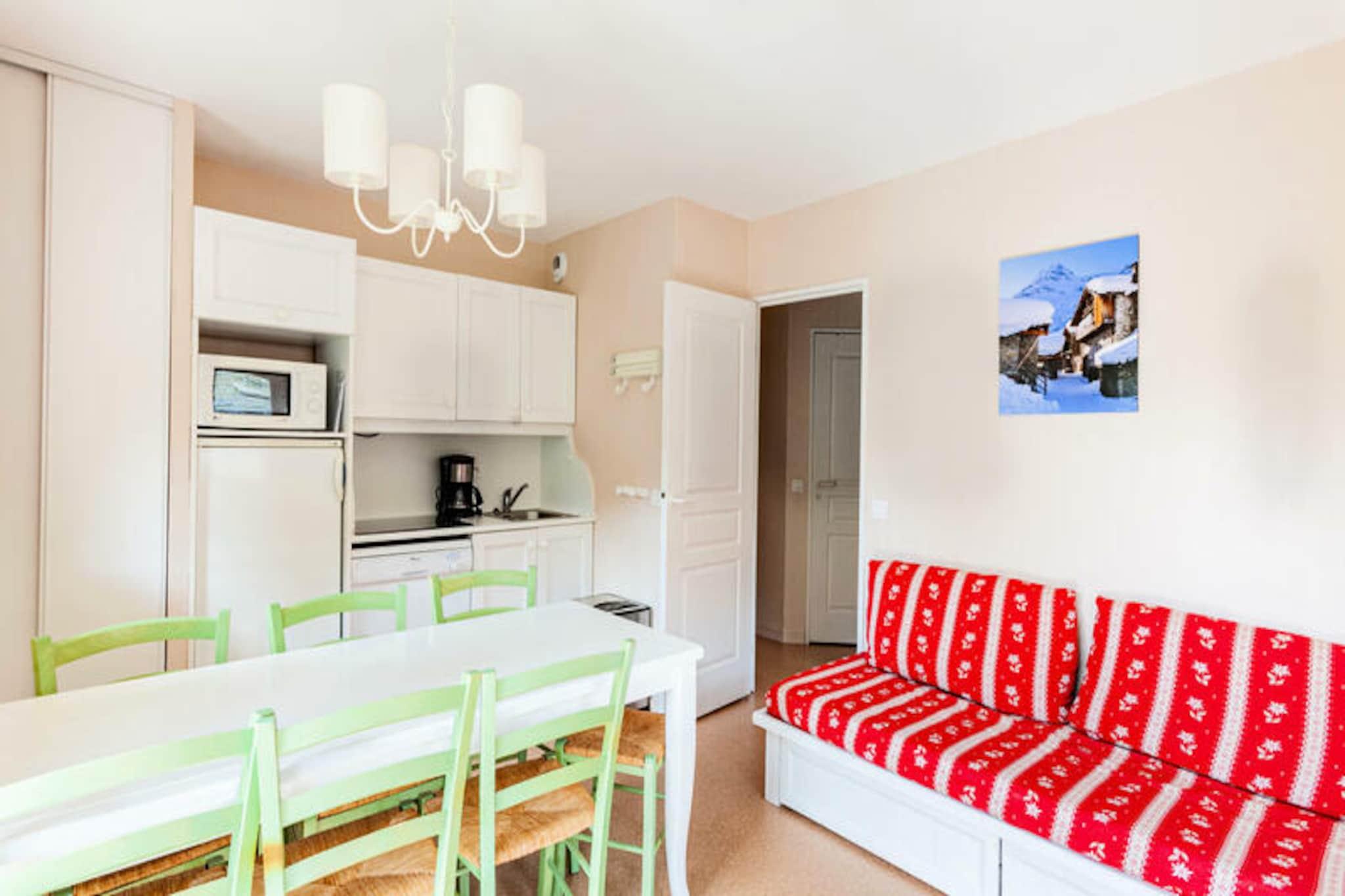 Högt ovanför den charmiga byn Valmeinier 1800 erbjuder denna förtjusande alpina oas en perfekt blandning av komfort och äventyr. Med sin träklädda arkitektur och hisnande panoramautsikt över Thaborbergen inbjuder Le Thabor-residenset dig att fördjupa dig i Mauriennedalens skönhet. Oavsett om du söker spännande dagar i backarna eller lugna kvällar under den stjärnklara alpina himlen, lovar denna fastighet en oförglömlig bergsflykt. Lägenheten har en ljus och inbjudande interiör, med ett rymligt vardagsrum med bäddsoffa, ett fullt utrustat kök i amerikansk stil och en matplats perfekt för att dela måltider med nära och kära. Med två mysiga sovrum – ett med dubbelsäng och det andra med våningssängar – och två moderna badrum, rymmer detta 38 m² stora utrymme bekvämt familjer eller små grupper. Gå ut på balkongen i österläge för att njuta av ditt morgonkaffe medan du njuter av den fantastiska utsikten över bergen. Ytterligare bekvämligheter inkluderar Wi-Fi, TV och en bekväm utomhusparkeringsplats. Beläget vid foten av backarna erbjuder residenset direkt tillgång till det vidsträckta skidområdet Galibier-Thabor, som sträcker sig från 1430 till 2600 meter. Inom gångavstånd hittar du butiker, restauranger och aktiviteter för att förhöja din vistelse. På sommaren förvandlas regionen till en fristad för vandrare och naturentusiaster, med stigar som slingrar sig genom den pittoreska Mauriennedalen. Efter en dag av äventyr kan du varva ner i residensens uppvärmda utomhuspool, som är öppen säsongsvis, eller utforska den pulserande lokala kulturen. Oavsett om du besöker residenset för vintersport eller sommaravkoppling, erbjuder detta boende den perfekta basen för att skapa värdefulla minnen i hjärtat av de franska Alperna.