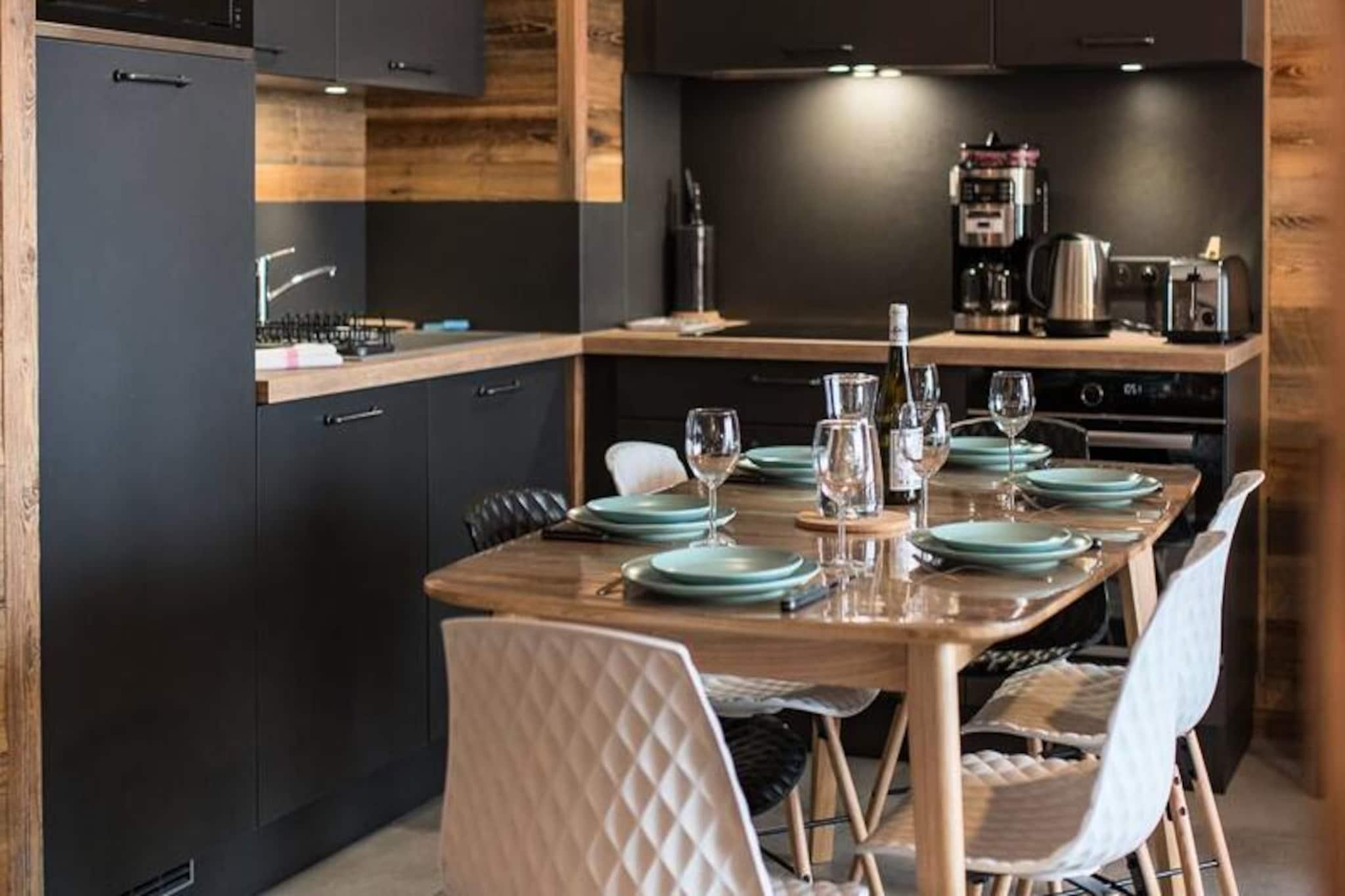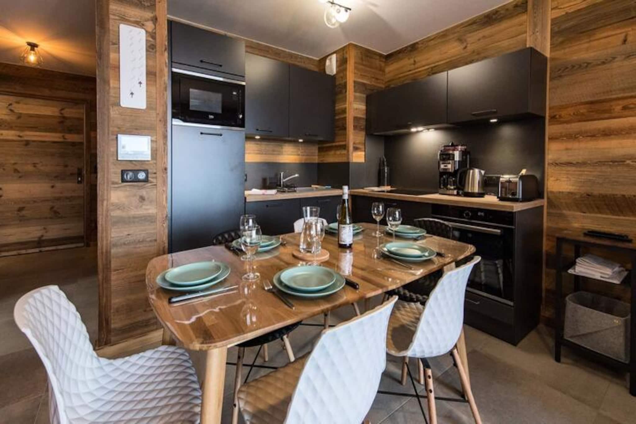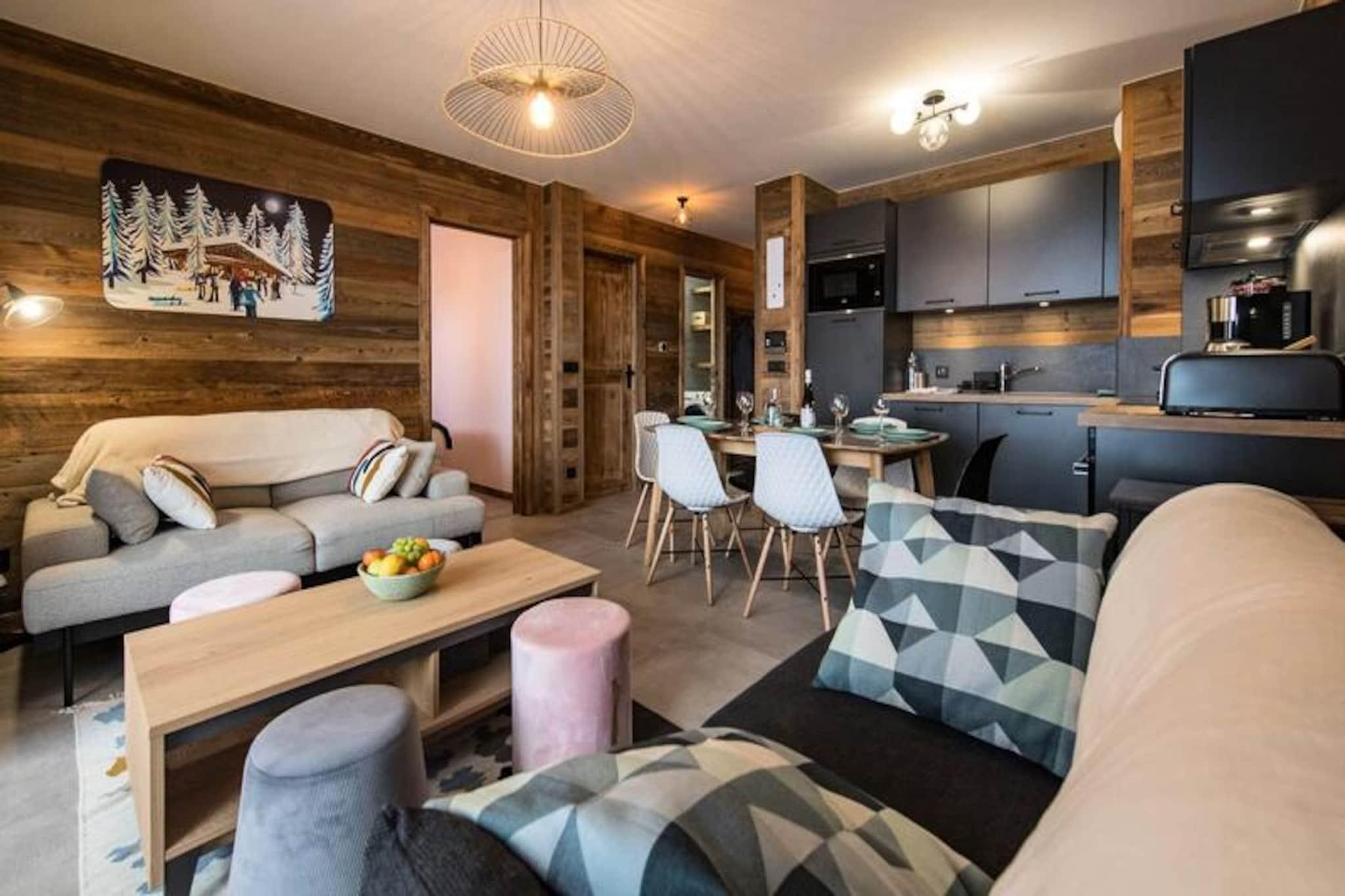 På en imponerande höjd av 1950 meter erbjuder denna eleganta lägenhet i L'Olvera-residenset en sömlös blandning av modern komfort och alpin charm. Perfekt beläget vid foten av backarna i Upper Valmeinier, lovar den en oförglömlig bergsresa med enkel tillgång till butiker, restauranger och skidanläggningar. Tänk dig att vakna upp till hisnande utsikt från din västvända balkong, kliva in i den friska bergsluften och ge dig direkt in i en dag av äventyr i de franska Alperna. Oavsett om du är här för att åka skidor, vandra eller bara koppla av, är denna residens utformad för att förhöja din semesterupplevelse. \n\nLägenhetens interiör är både elegant och praktisk, med ett rymligt vardagsrum med en mysig sittgrupp och en 55\