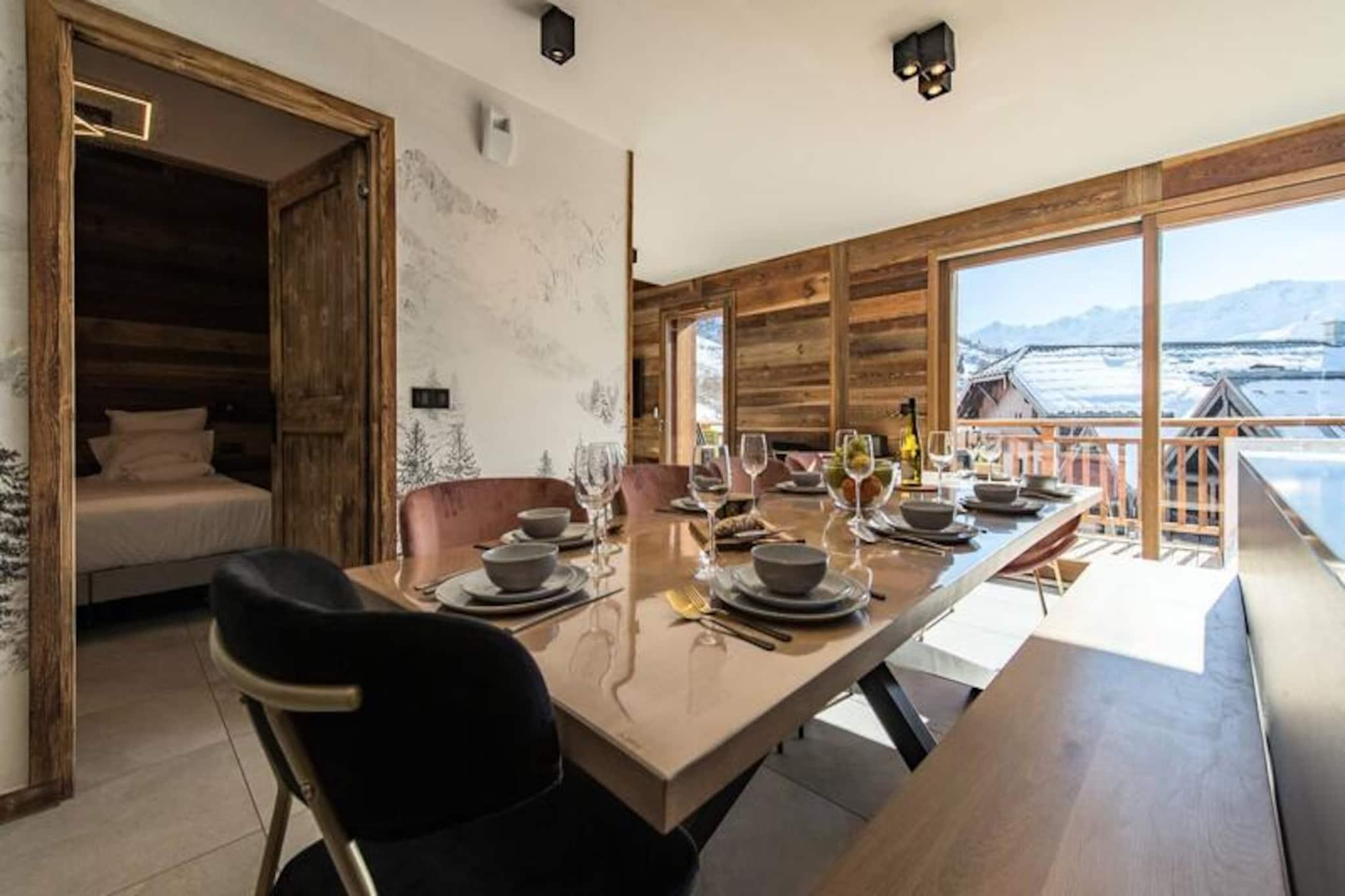 Högt ovanför den pittoreska byn Valmeinier, på en höjd av 1950 meter, erbjuder denna lyxiga duplexlägenhet en perfekt blandning av alpin charm och modern komfort. Med sitt utmärkta läge vid foten av backarna kliver du ut ur bostaden och direkt ut på de orörda backarna i denna berömda skiddestination. Oavsett om du är här för spänningen med skidåkning eller lugnet med utsikt över bergen, lovar denna fastighet en oförglömlig tillflyktsort i de franska Alperna. Lägenhetens rymliga design rymmer upp till 10 gäster, vilket gör den idealisk för familjer eller grupper av vänner. På bottenvåningen hittar du ett välkomnande vardagsrum med ett mysigt vardagsrum och matplats, kompletterat av ett fullt utrustat kök med moderna apparater som induktionshäll, ugn och mikrovågsugn. Den söderläge balkongen inbjuder dig att njuta av solen och beundra den hisnande alpina utsikten. Sovrummen inkluderar två eleganta master-sviter med queen size-sängar och eget badrum, ett ljust sovrum med två enkelsängar och takfönster och en charmig sovsal med fyra enkelsängar, perfekt för barn eller extra gäster. Ytterligare bekvämligheter som tvättstuga, skidförvaring med pjäxtork och privat parkering med laddningsstation för elbilar garanterar en problemfri vistelse. Utöver lägenhetens bekvämligheter erbjuder Valmeinier en livlig alpin upplevelse. Utforska de lokala butikerna, njut av utsökta måltider på närliggande restauranger eller njut av afterski-underhållning bara några steg bort. På sommaren förvandlar vandringsleder och den kommunala simbassängen området till en fristad för friluftsentusiaster. Med liftkort och uthyrning av utrustning som enkelt arrangeras via Altitude 1750 blir din semesterplanering sömlös. Oavsett om du snubblar genom puderiga backar på vintern eller vandrar genom frodiga bergsleder på sommaren, är detta boende din port till alpin lycka. Boka nu och skapa värdefulla minnen i denna fantastiska bergsresort.