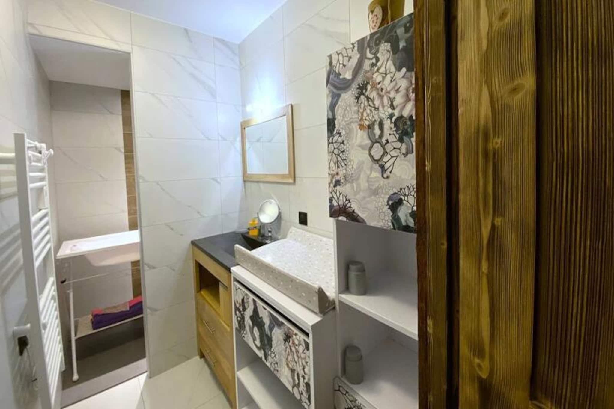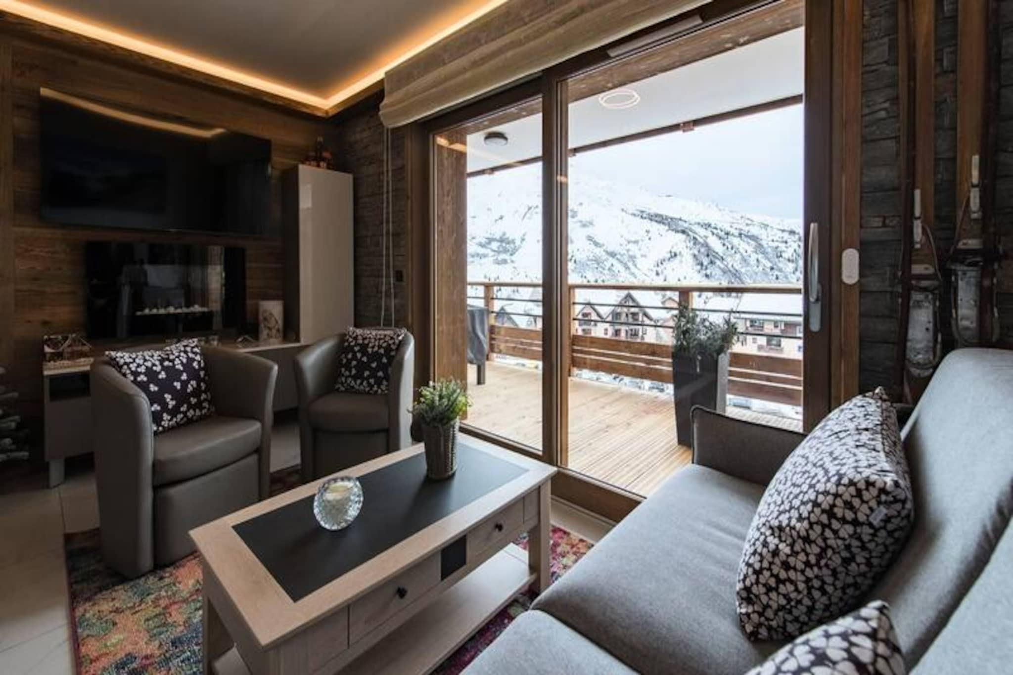 Högt ovanför Valmeiniers pittoreska sluttningar ligger denna eleganta alpina oas på 1950 meters höjd och inbjuder dig att uppleva den perfekta blandningen av lyx och bergscharm. Med sitt utmärkta läge vid foten av backarna erbjuder L'Olvera-residenset oöverträffad bekvämlighet för både skidentusiaster och naturälskare. Tänk dig att vakna upp till hisnande utsikter, kliva ut på din rymliga balkong i västerläge och omfamna den friska bergsluften före en dag av äventyr eller avkoppling. Inuti utstrålar lägenheten värme och sofistikering, med ett modernt vardagsrum med en mysig sittgrupp, en matplats och ett fullt utrustat kök med toppmoderna apparater inklusive induktionshäll, ugn, mikrovågsugn, diskmaskin och tvättmaskin/torktumlare. Den noggrant utformade planlösningen inkluderar ett lugnt dubbelrum med gott om förvaring, två extra sovplatser med bekväma sängar och ett elegant badrum med separat toalett. Familjer kommer att uppskatta de barnvänliga bekvämligheterna, medan grupper på upp till sex personer kan njuta av den rymliga men ändå intima atmosfären. Bekvämlighet finns nära till hands med ett skidskåp och pjäxtork på bottenvåningen, en säker parkeringsplats med laddningsstation för elbilar och närhet till butiker, restauranger och busslinjer. På sommaren erbjuder vandringsleder och en kommunal simbassäng oändliga möjligheter till utomhusaktiviteter. Dessutom, med liftkort och lektionskort levererade direkt till boendet, blir din semesterplanering enkel. Oavsett om du söker spännande skidäventyr eller lugna bergsresor, lovar denna lägenhet oförglömliga stunder med nära och kära. Boka nu och låt Valmeiniers magi fängsla dig.