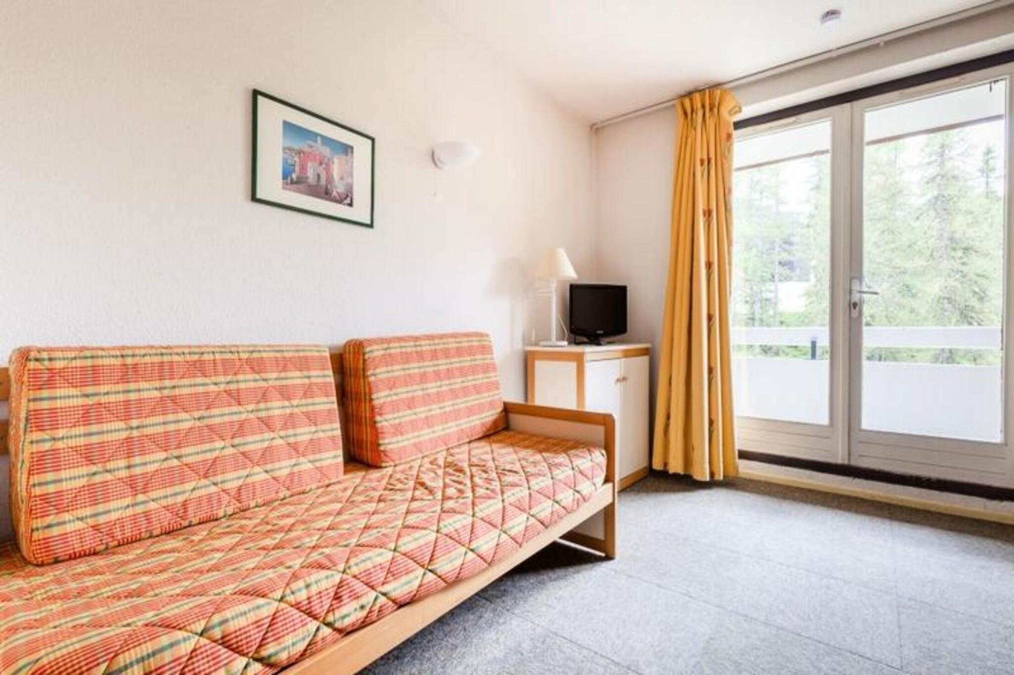 Fastigheten, tillsammans med sin praktiska och kompakta layout, rymmer bekvämt upp till 5 personer. Vardagsrummet har 2 enkla bäddsoffor, varav den ena har en utdragbar säng lämplig för barn, och det finns en kabindel med en våningssäng. Lägenheten har även en matplats med bord, stolar och en bänk. En möblerad balkong bidrar till charmen och ger en avkopplande uteplats med trädkantad utsikt. Residenset är husdjursvänligt (beroende på villkor) och erbjuder skidskåp för gästerna. Ytterligare tjänster som Wi-Fi, sängkläder och handdukar samt städning är tillgängliga mot en extra kostnad. Slutstädning är obligatorisk. Residenset är idealiskt beläget bara 500 meter från resortens centrum, vilket gör det bekvämt för gästerna att utforska lokala attraktioner. Det är också bara 100 meter från ett shoppingområde, vilket ger enkel tillgång till viktiga butiker. Det omgivande området erbjuder olika aktiviteter, särskilt under sommarsäsongen, vilket garanterar en minnesvärd vistelse. Fastighetens läge ger också enkel tillgång till transportförbindelser, såsom bussar och tågstationer, vilket säkerställer smidiga anslutningar till andra delar av regionen. Residenset smälter harmoniskt samman med resortens arkitektur och erbjuder en fridfull och central oas. Lägenhetens köksdel är öppen mot vardagsrummet, utrustad med grundläggande apparater för att laga mat, vilket förbättrar lägenhetens funktionalitet. Badrummet är utrustat med badkar och toalett. För bekvämlighets skull finns ytterligare förvaringsutrymmen i hela lägenheten. En liten TV finns för underhållning. Gästerna kommer att njuta av den trädkantade utsikten från balkongen, vilket ger en lugn touch till vistelsen.
